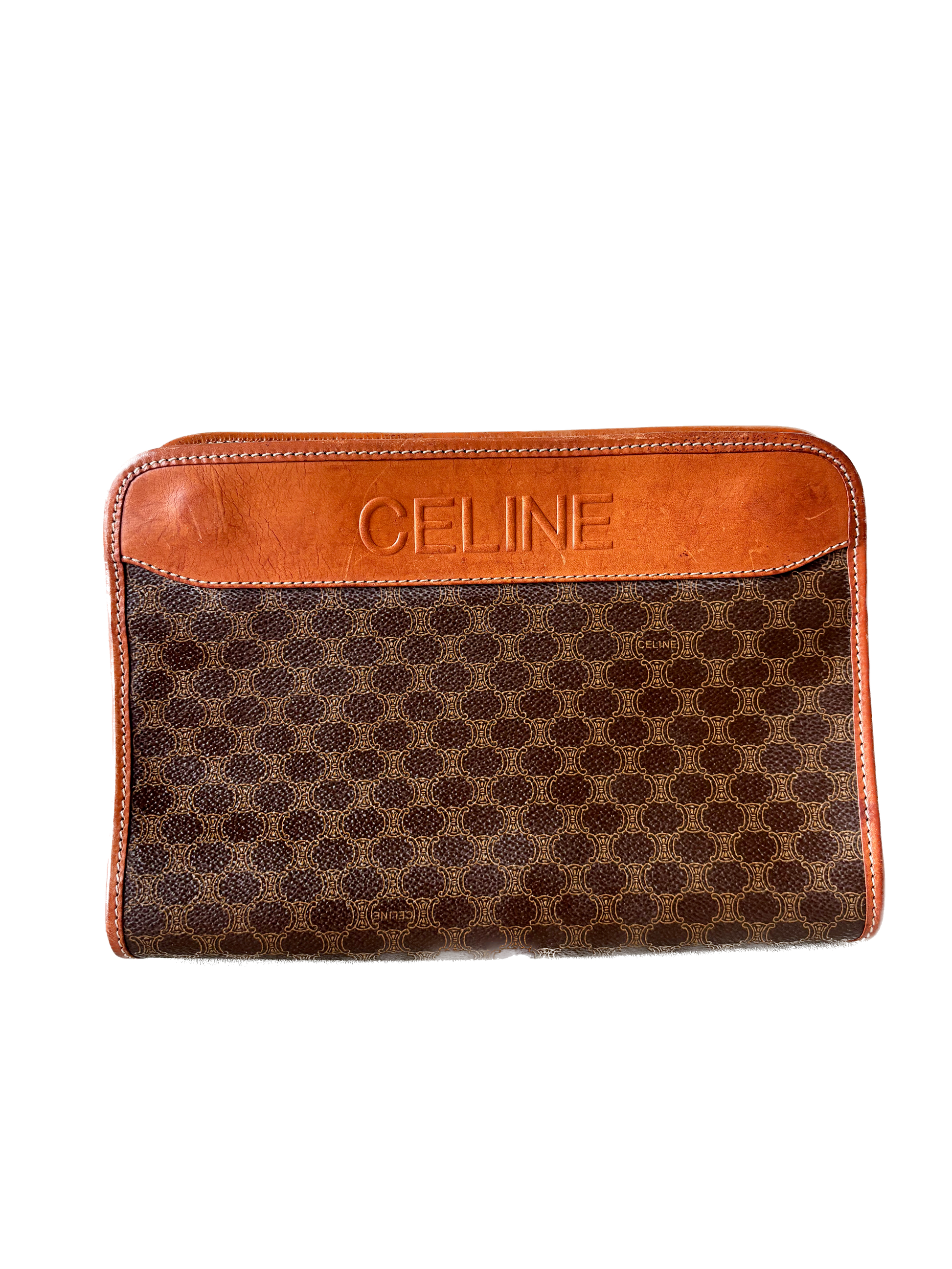 * Pochette CÉLINE vintage en cuir camel et toile triomphe