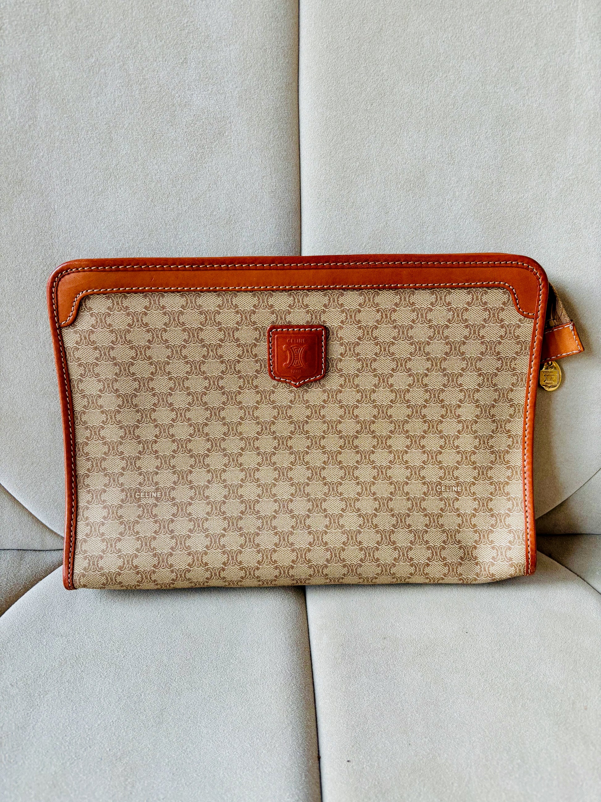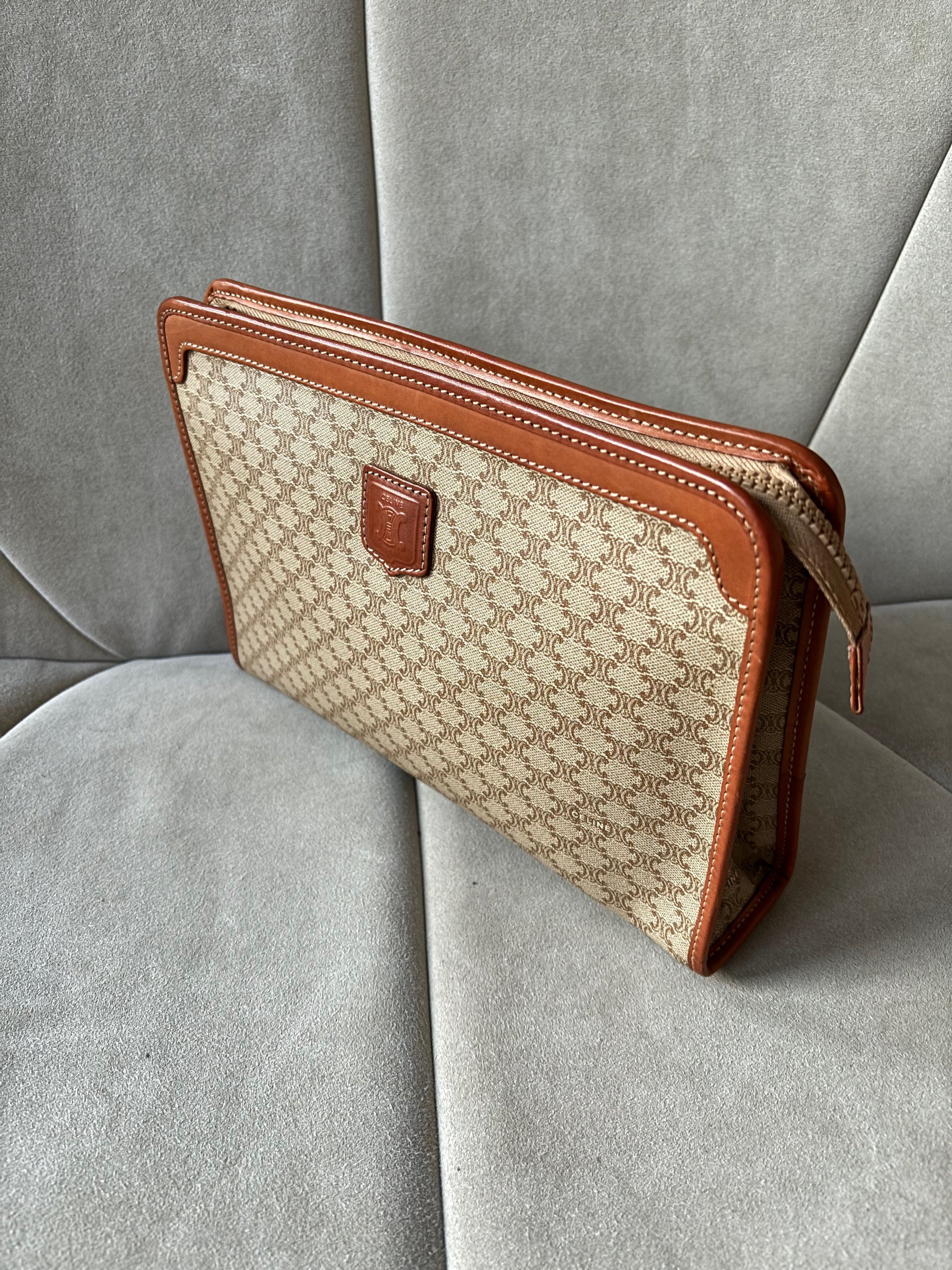 * Pochette CÉLINE vintage en toile Triomphe Macadam beige