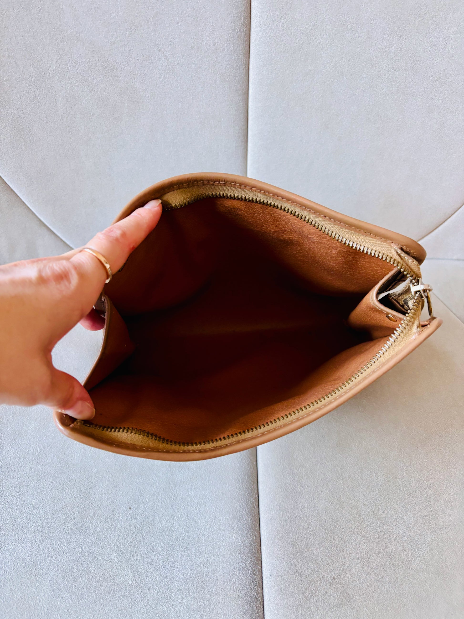 * Bordures et emblème Triomphe siglé CÉLINE PARIS en cuir camel
