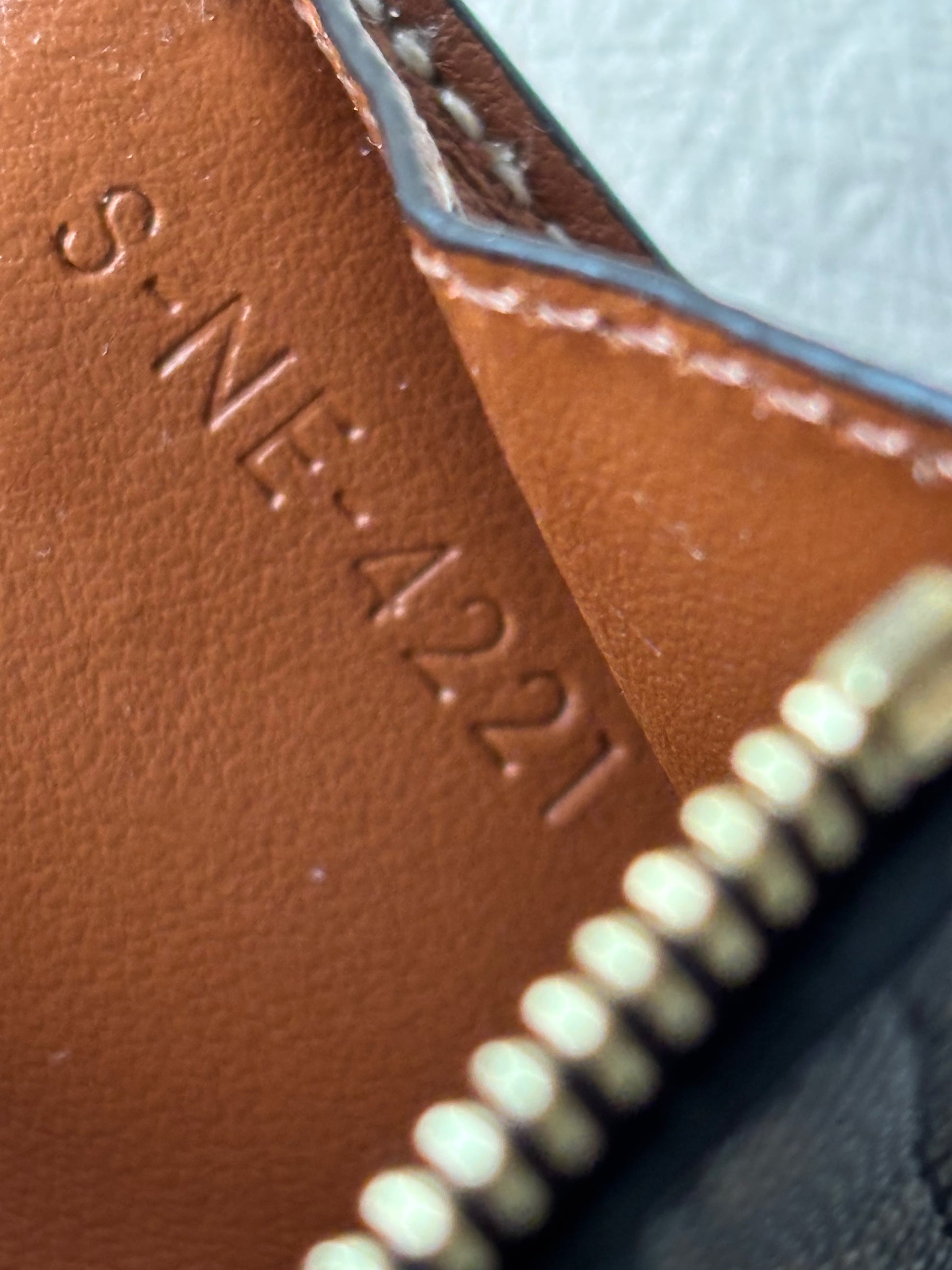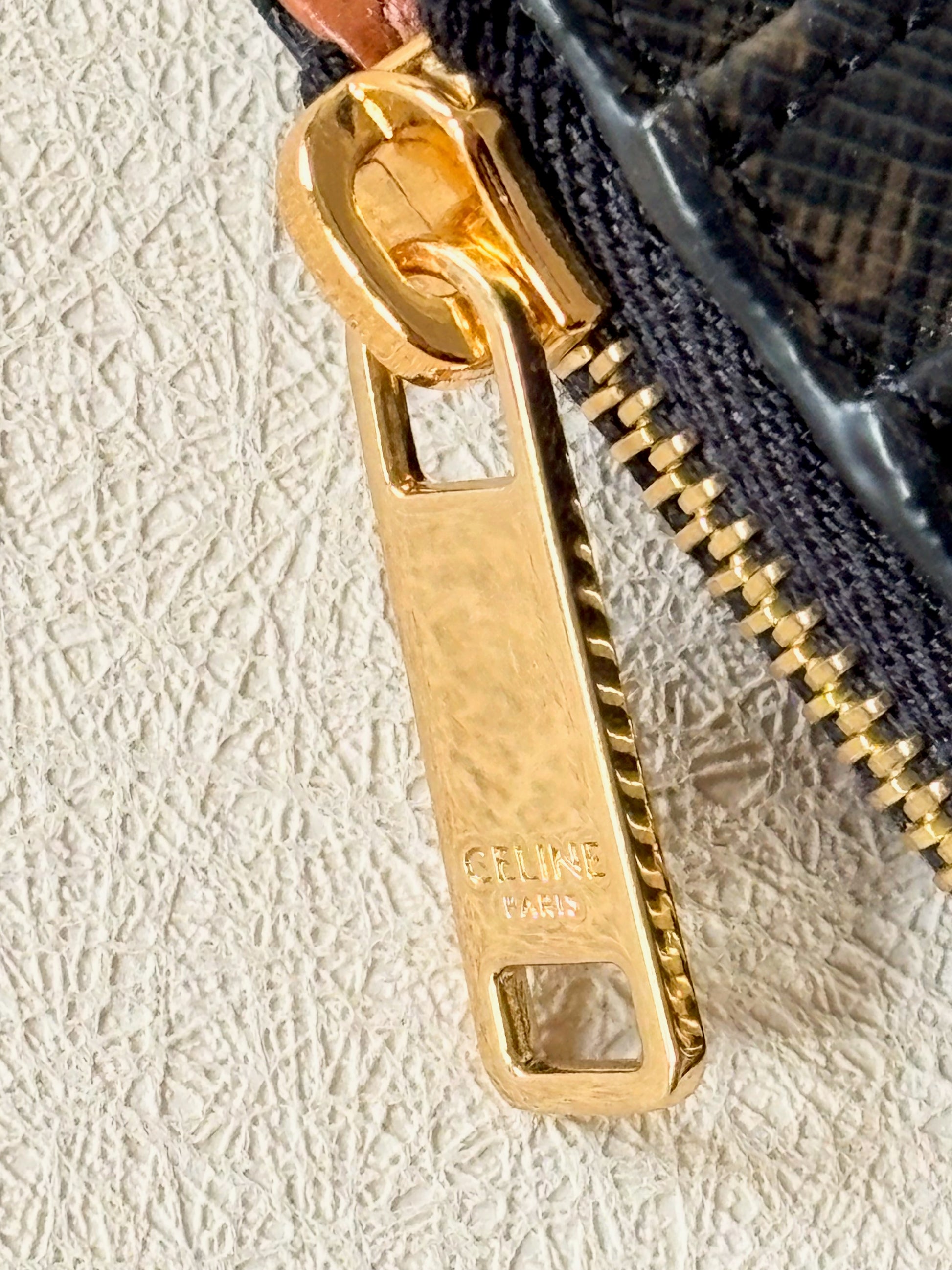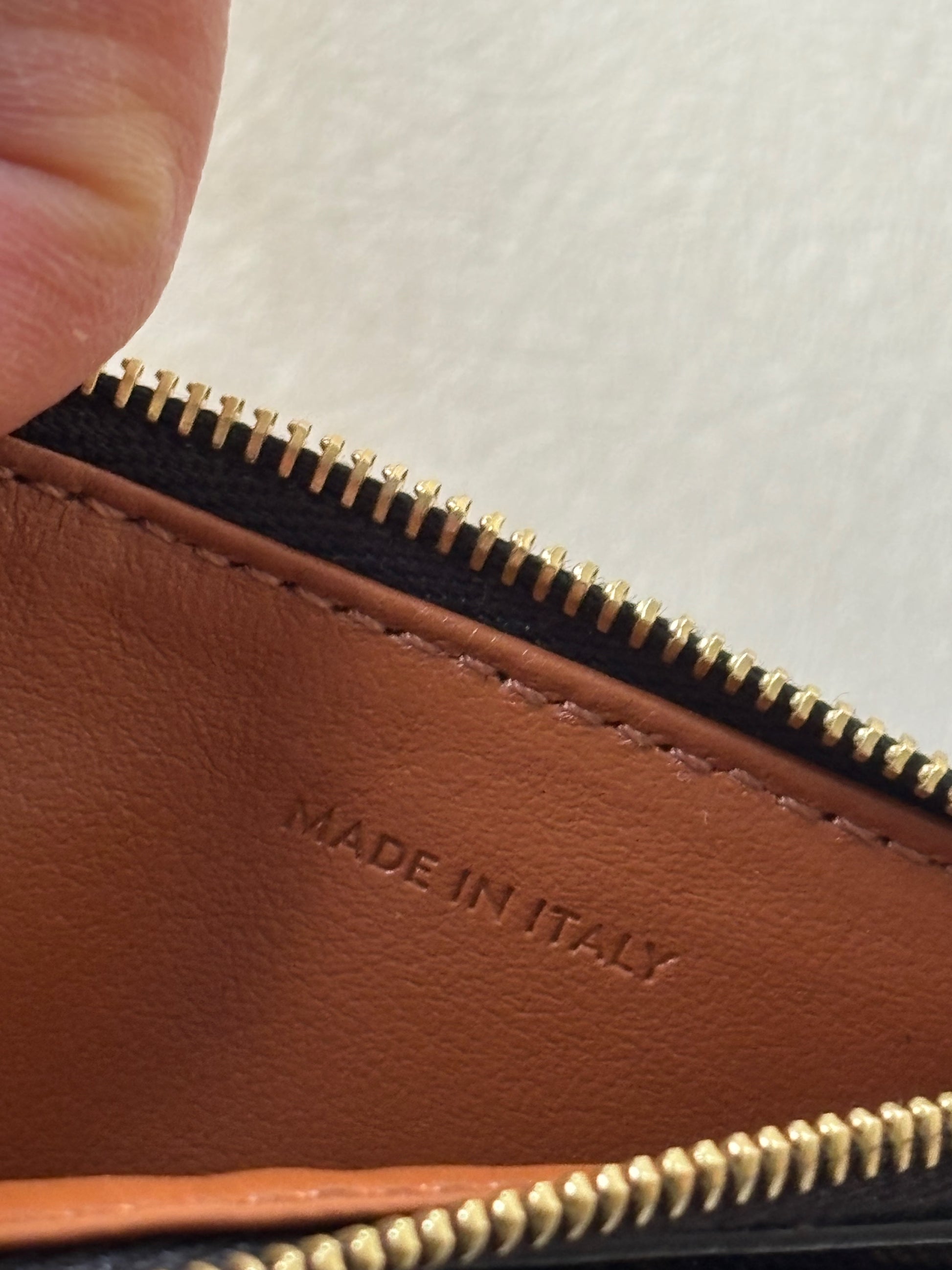 * Doublure en cuir d'agneau, finition dorée, fermeture à glissière