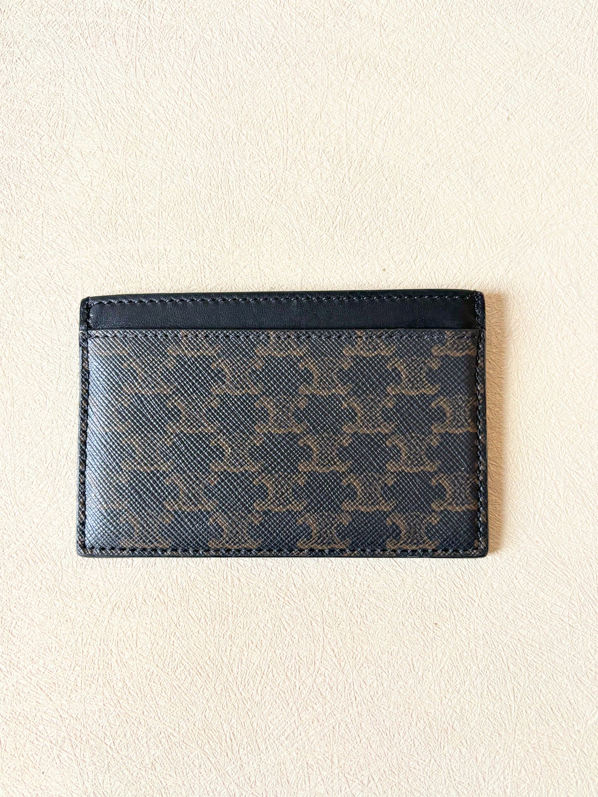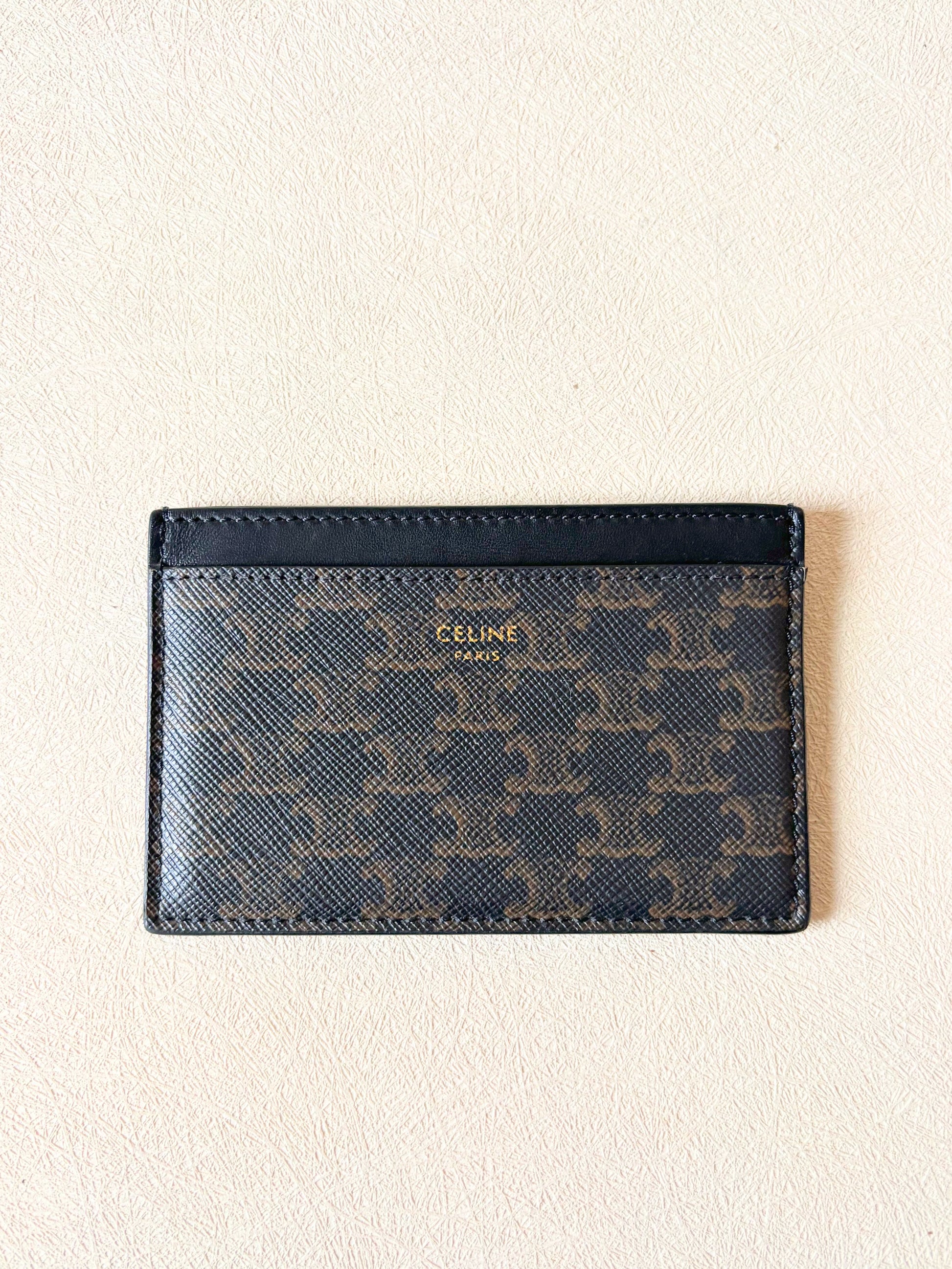 * Porte-cartes CÉLINE en cuir et toile Triomphe noire