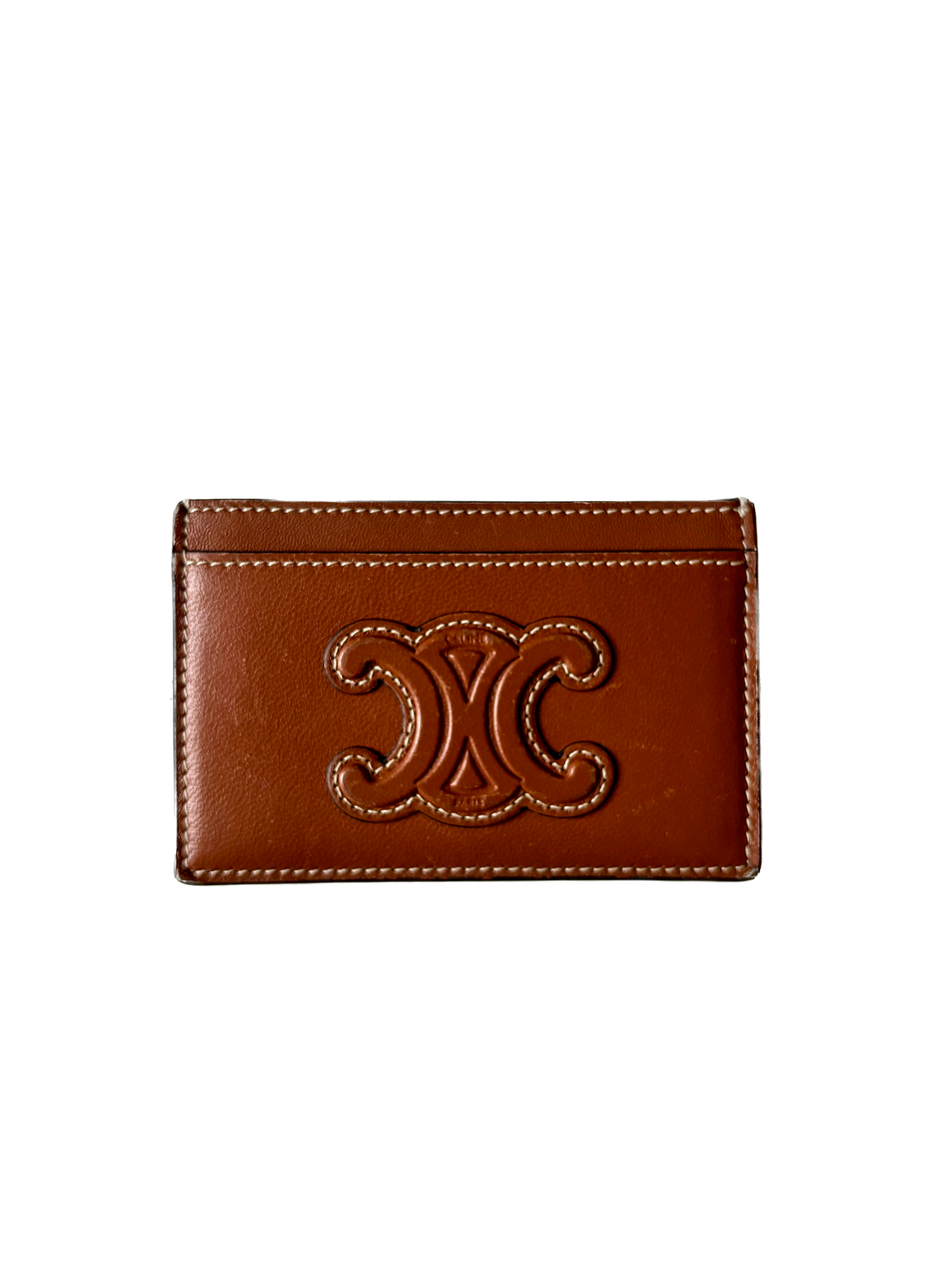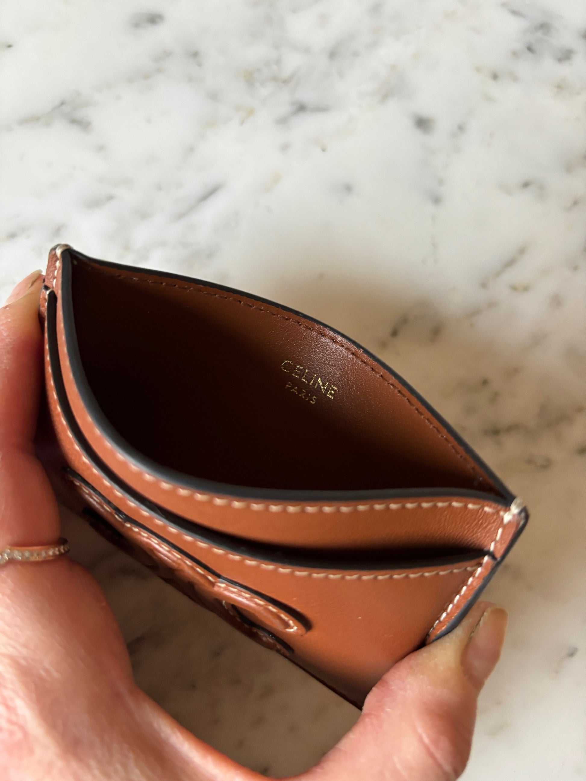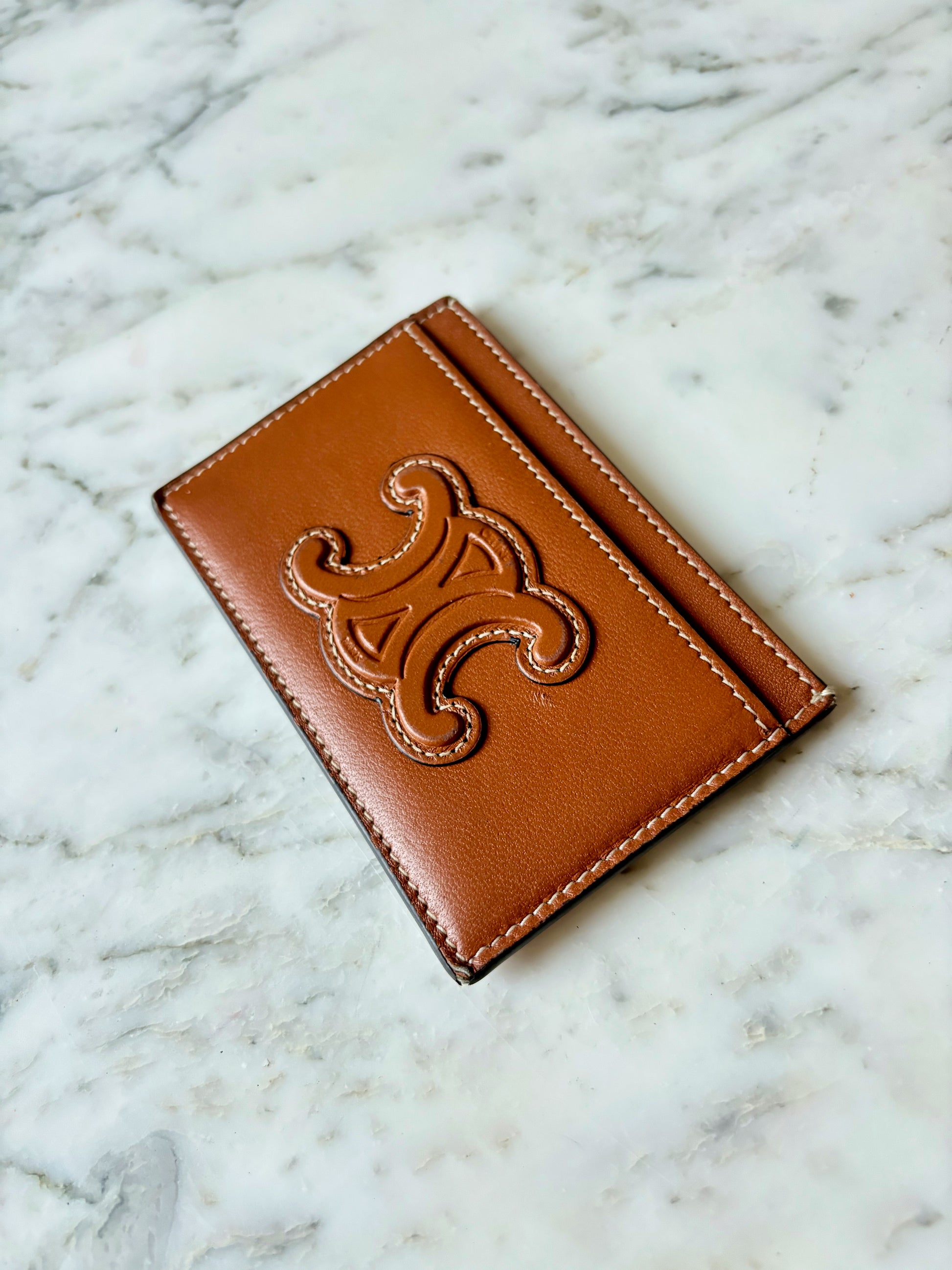 * Cuir d'agneau, surpiqué coton écru, doublure veau, au célèbre motif Triomphe de la marque