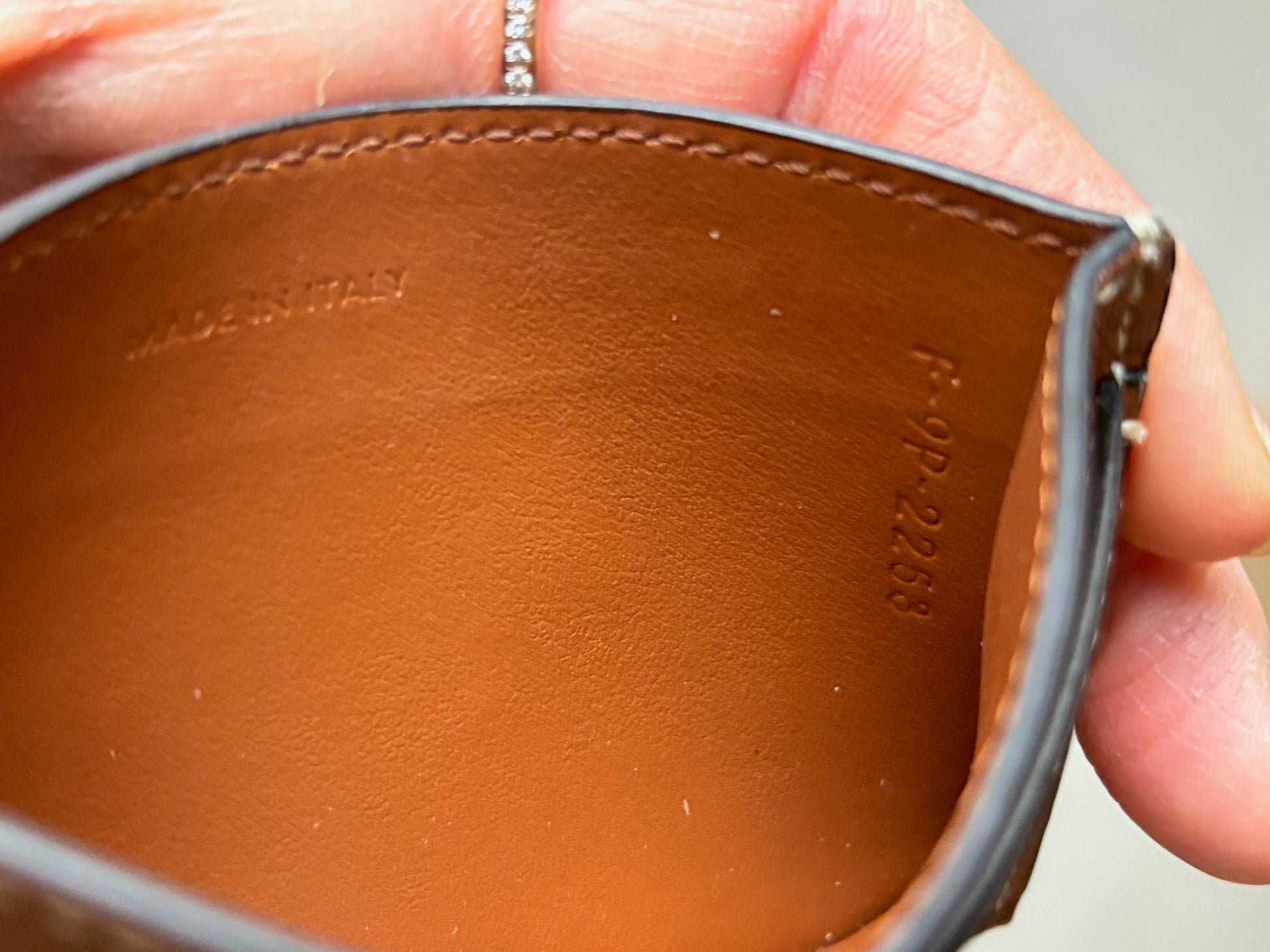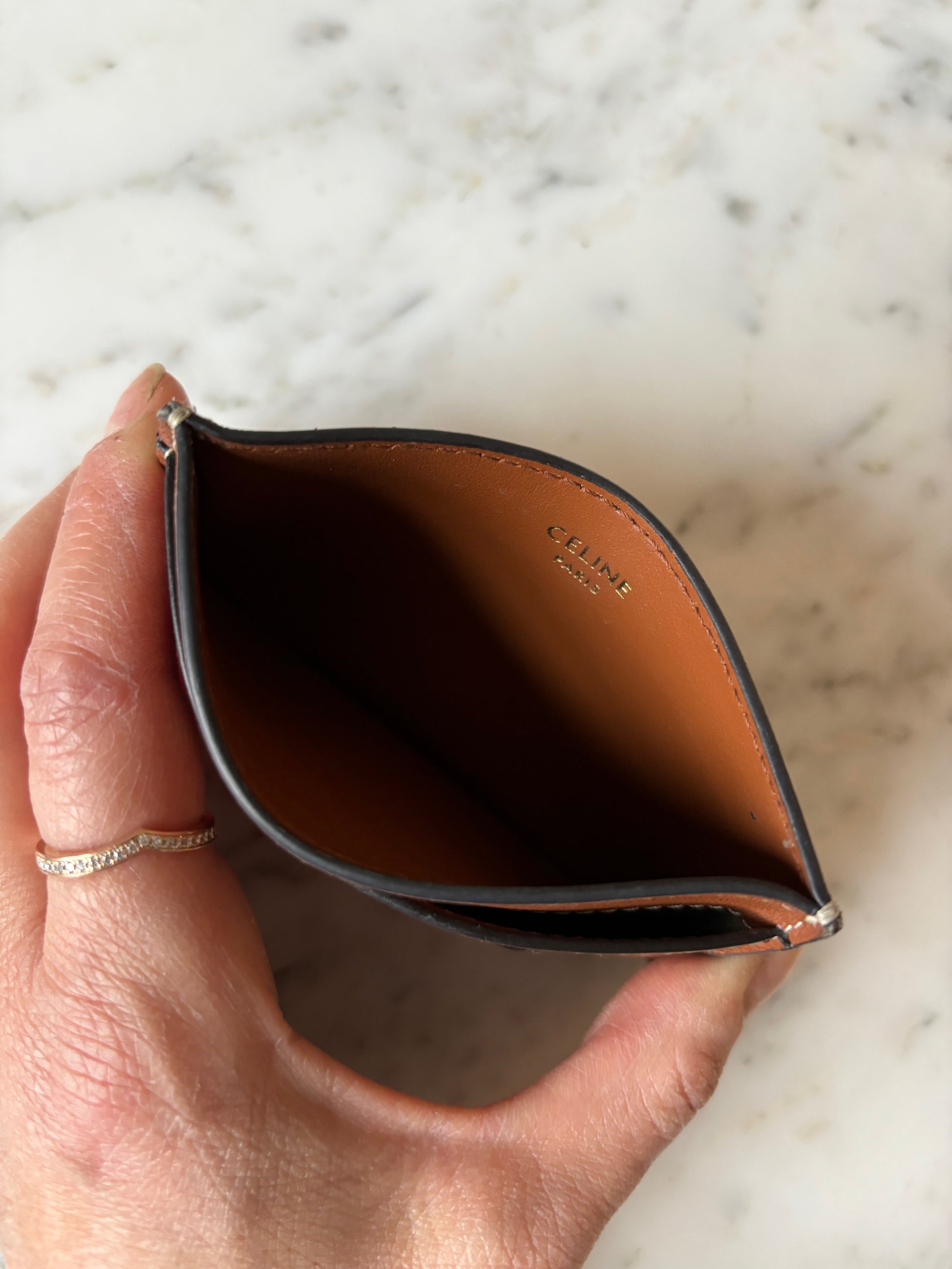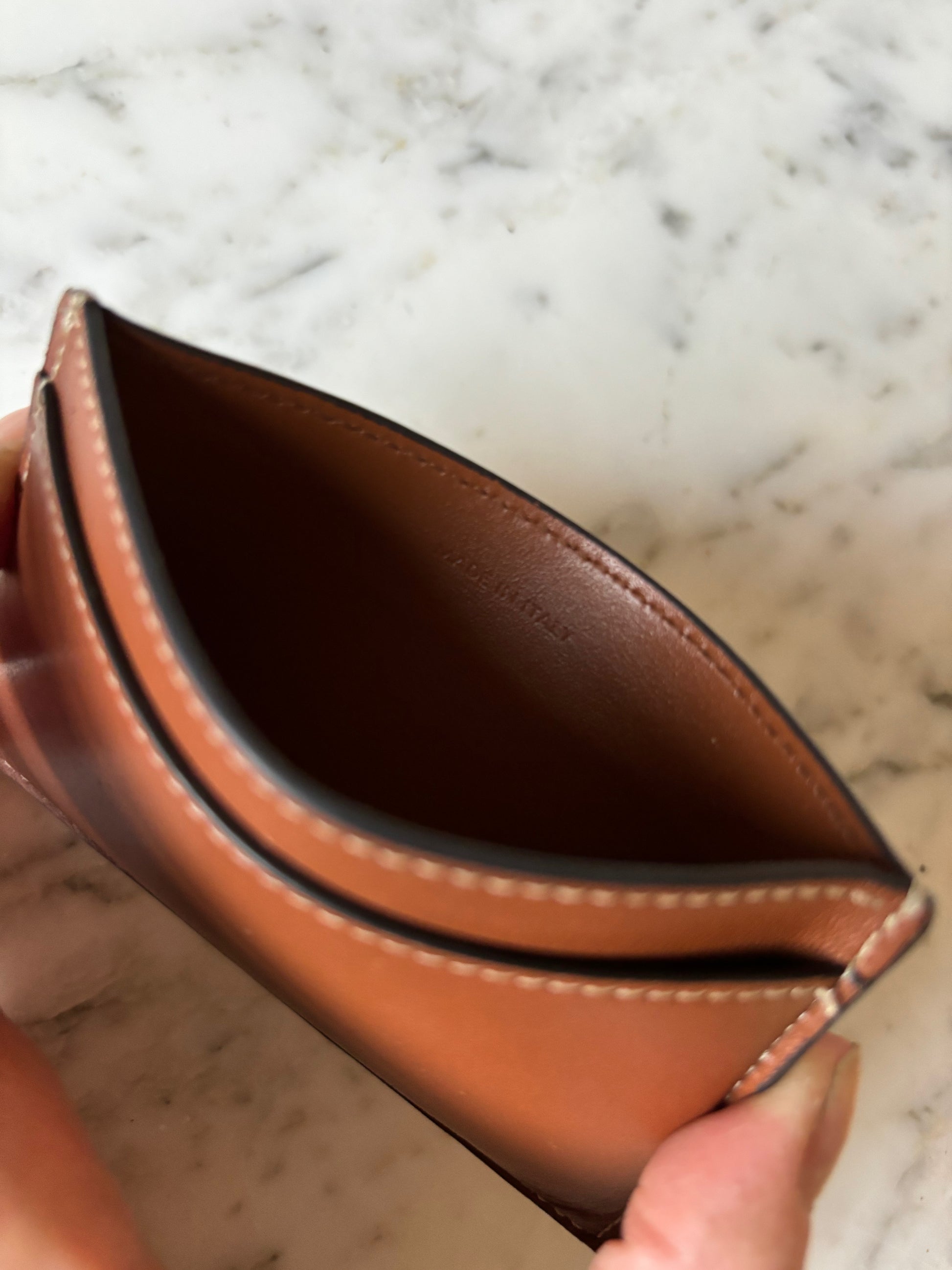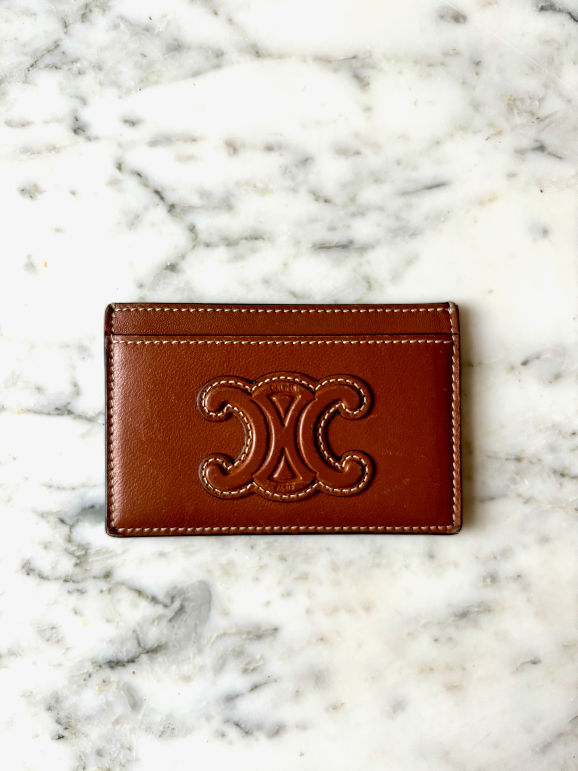 * Cuir d'agneau, surpiqué coton écru, doublure veau, au célèbre motif Triomphe de la marque