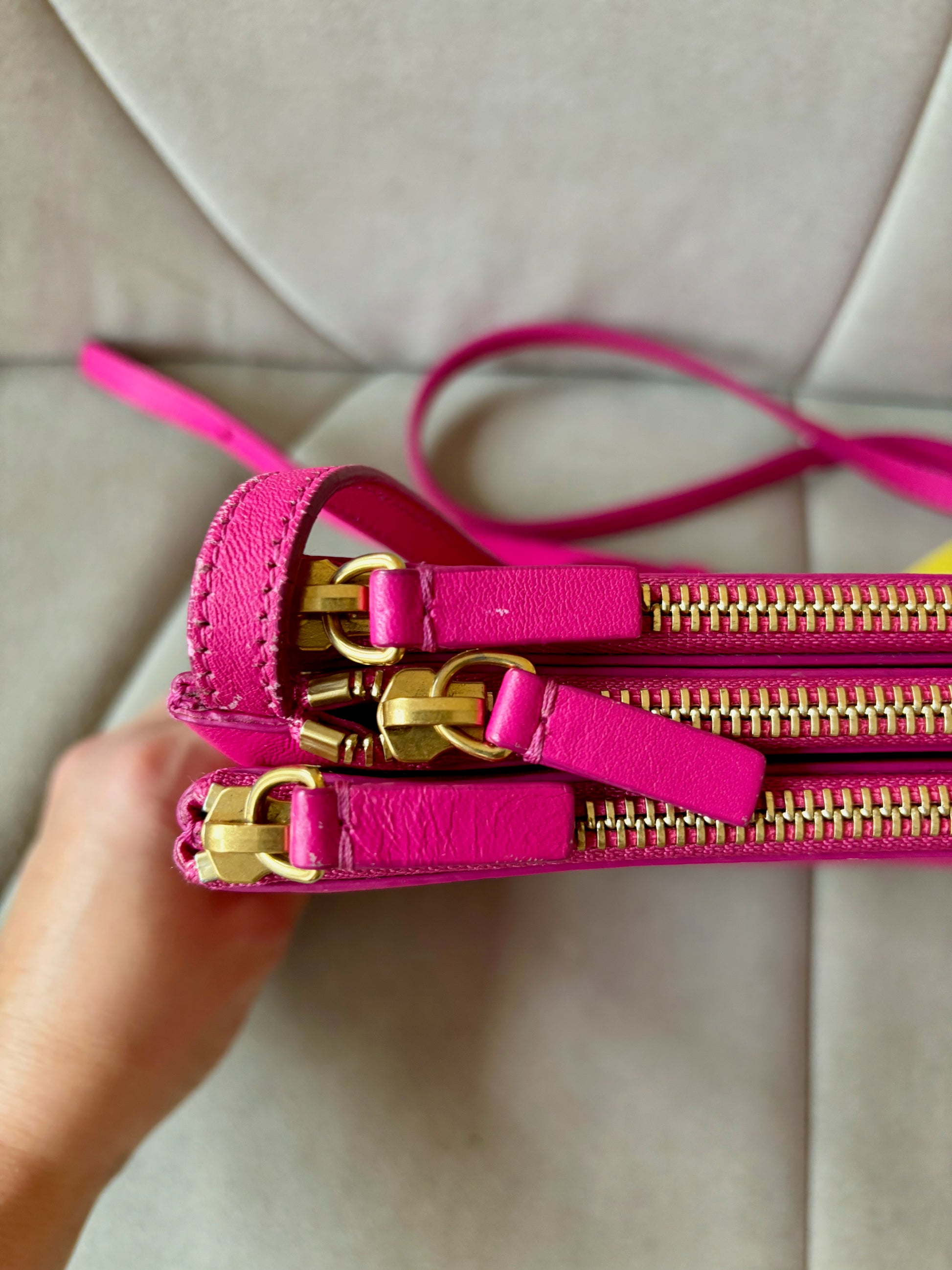 * Doublure en jersey gris avec trois compartiments intérieurs, chacun doté d'une fermeture à glissière dorée