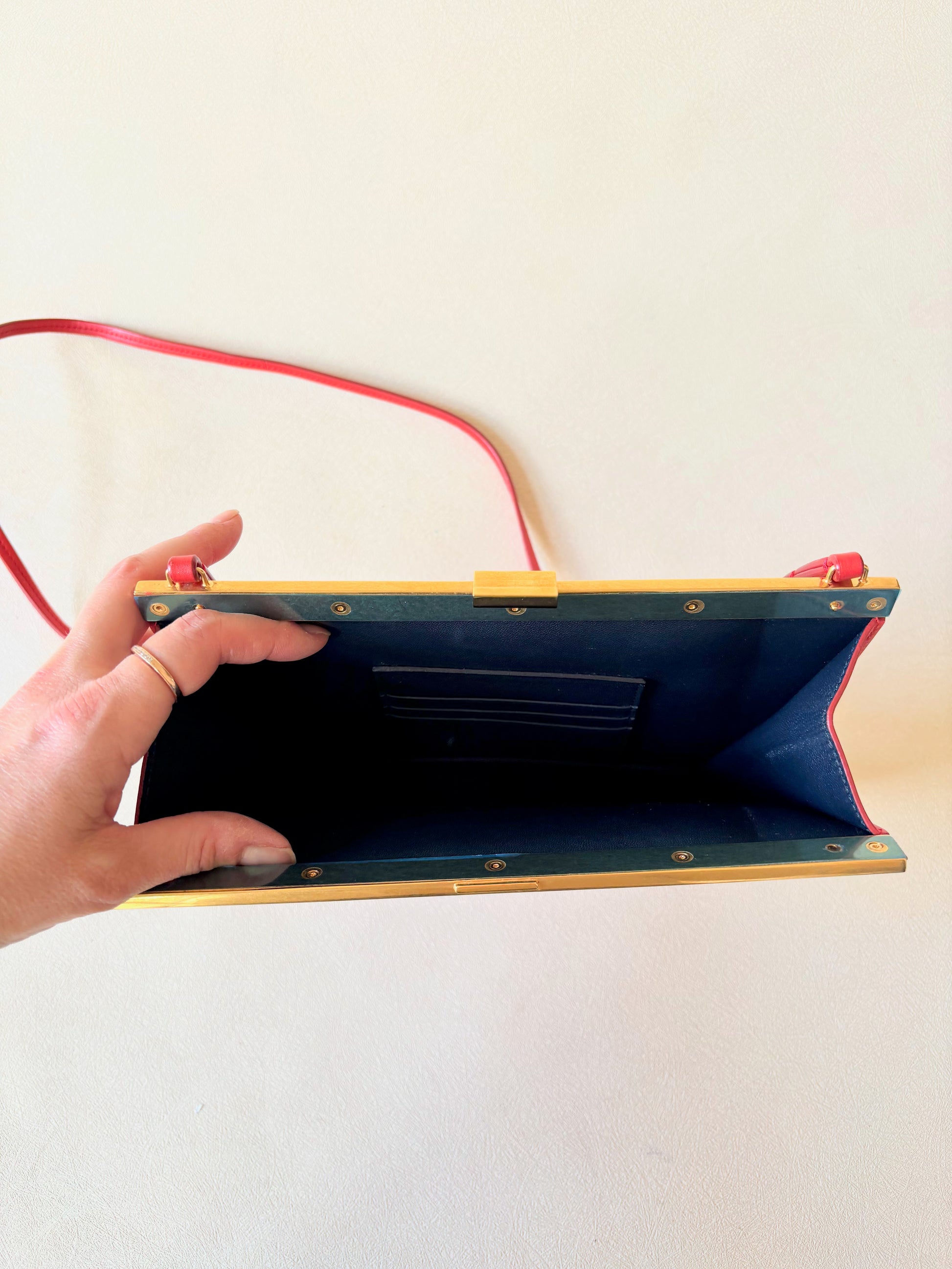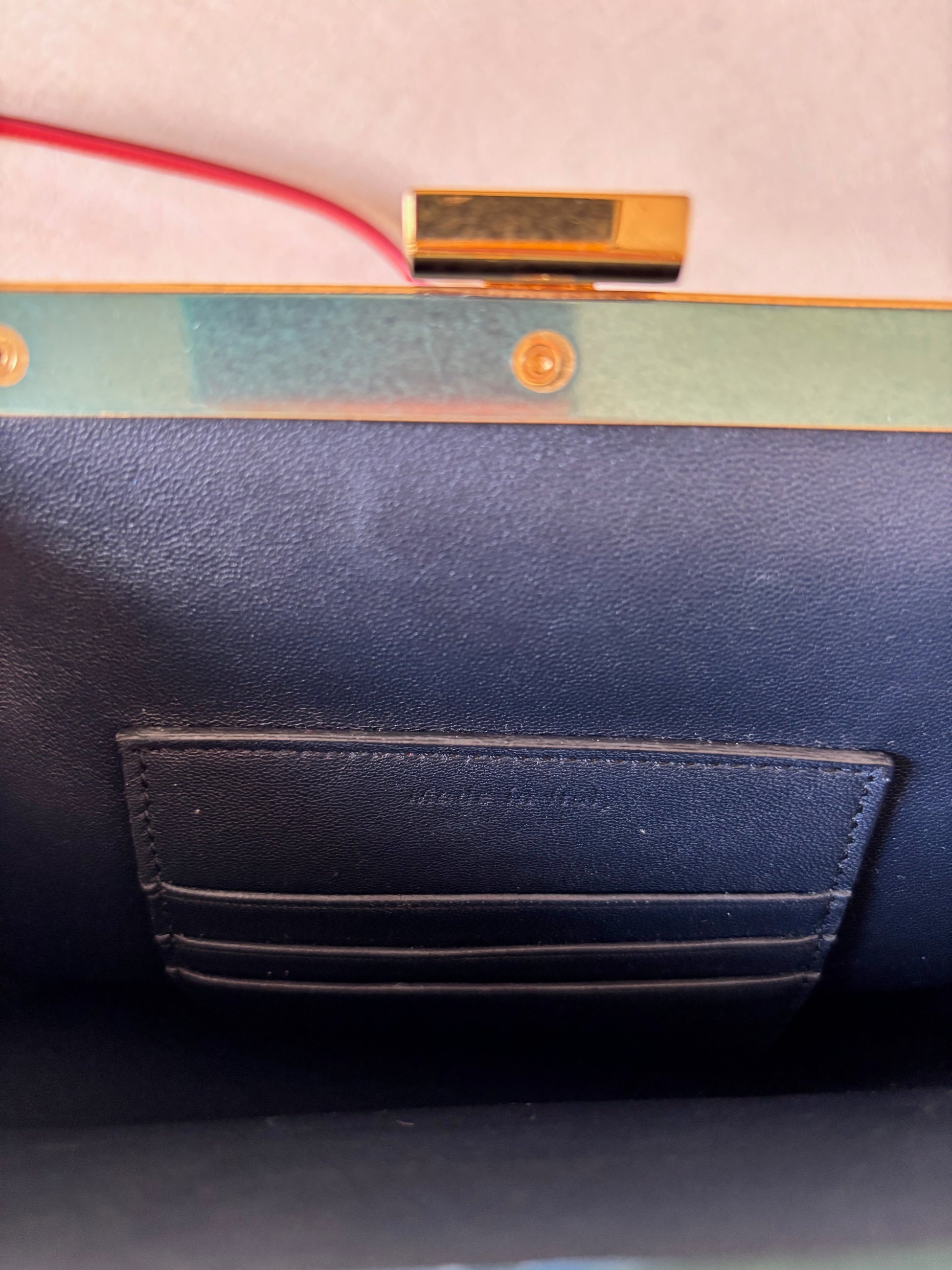 * Doublure en cuir bleu marine avec trois compartiments à cartes