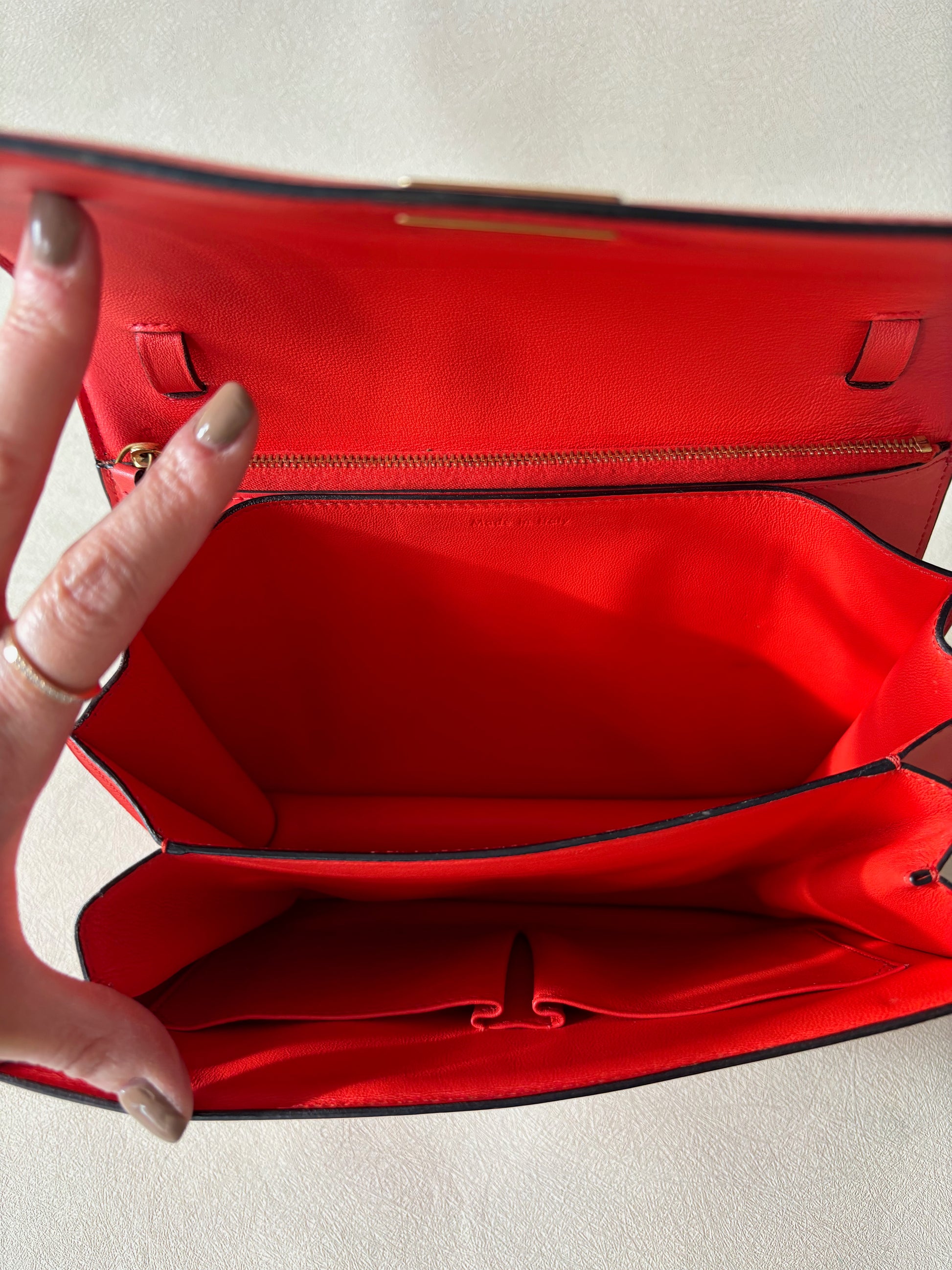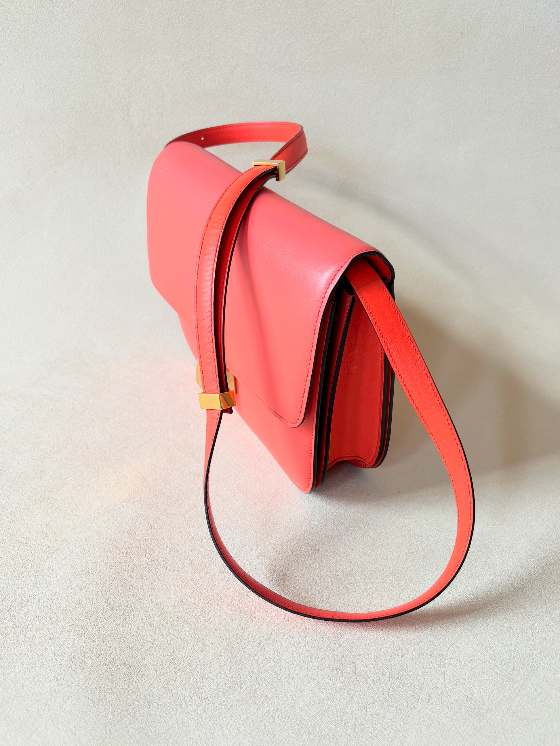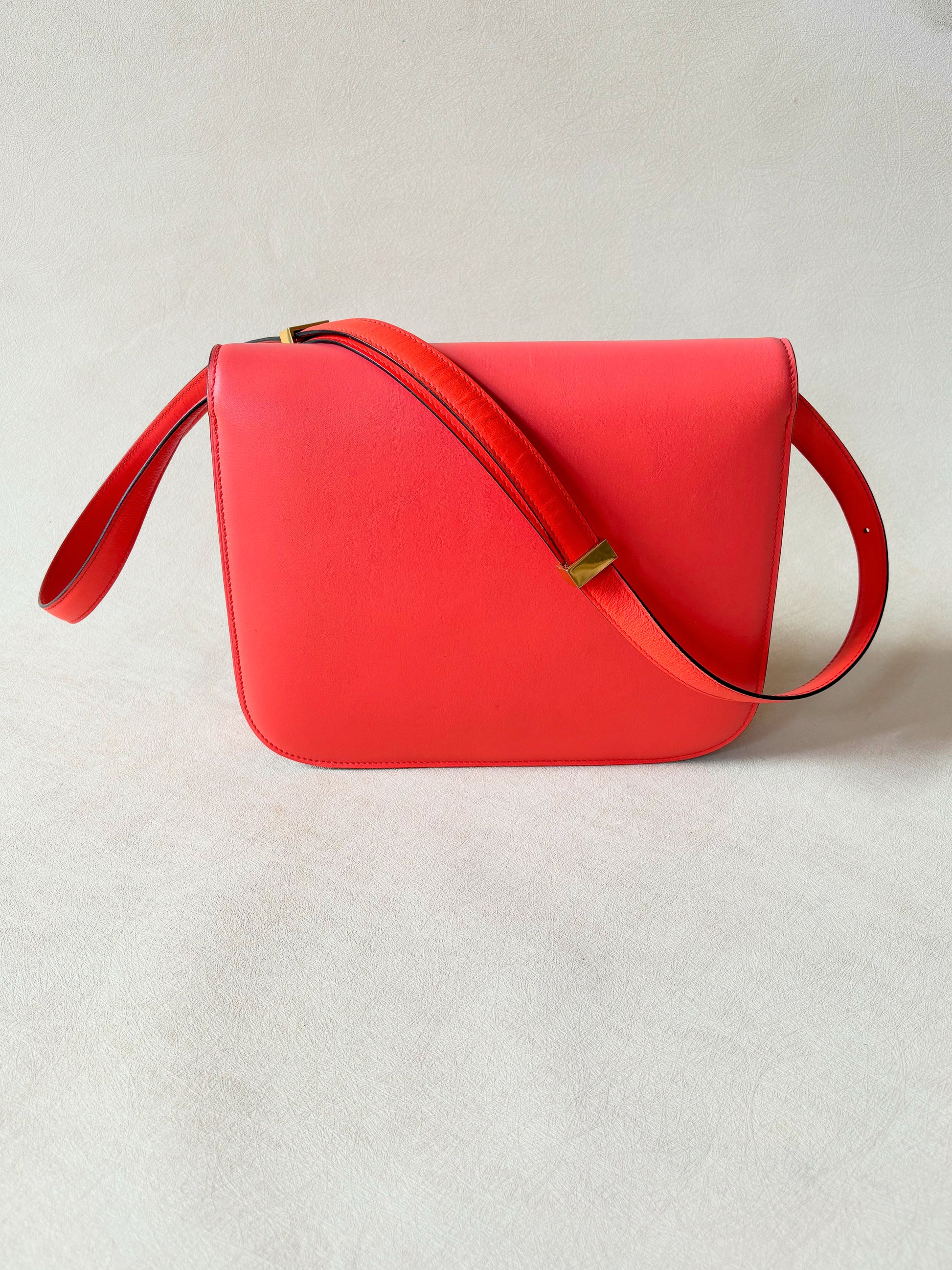 * En cuir de veau lisse orange corail