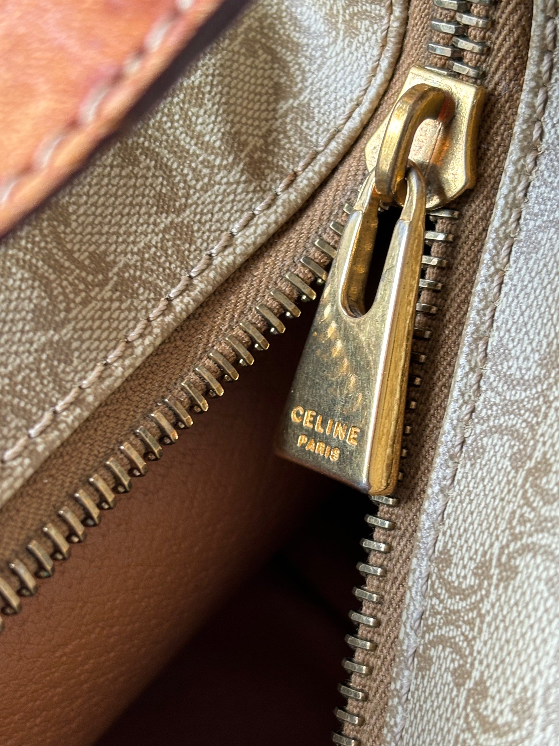 * En toile triomphe et cuir beige, camel, avec rabats sur les bords
