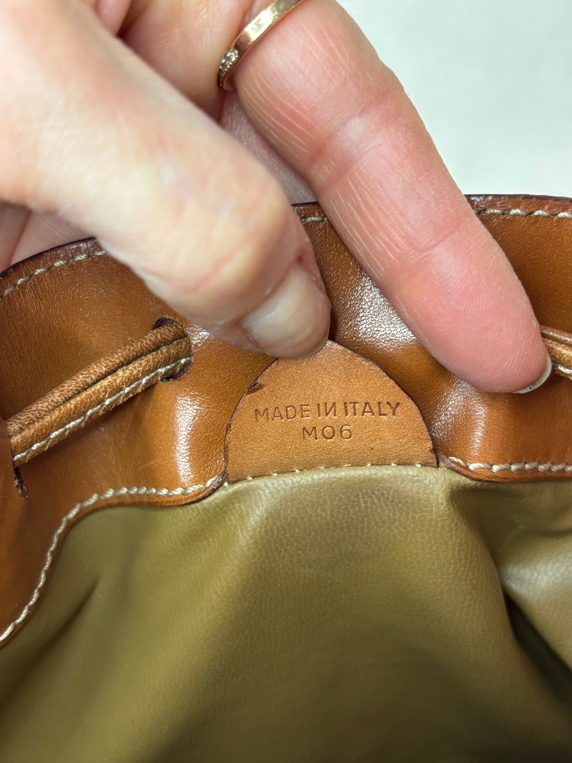 * Toile imprimée Triomphe et cuir camel, bijouterie dorée
