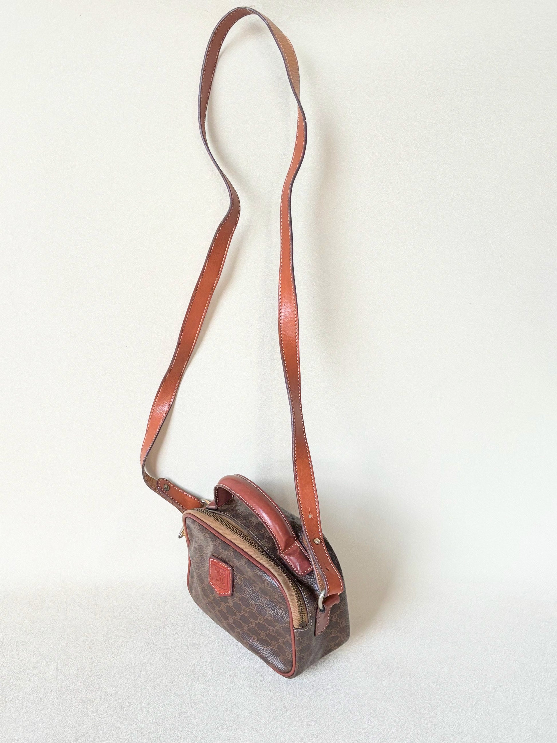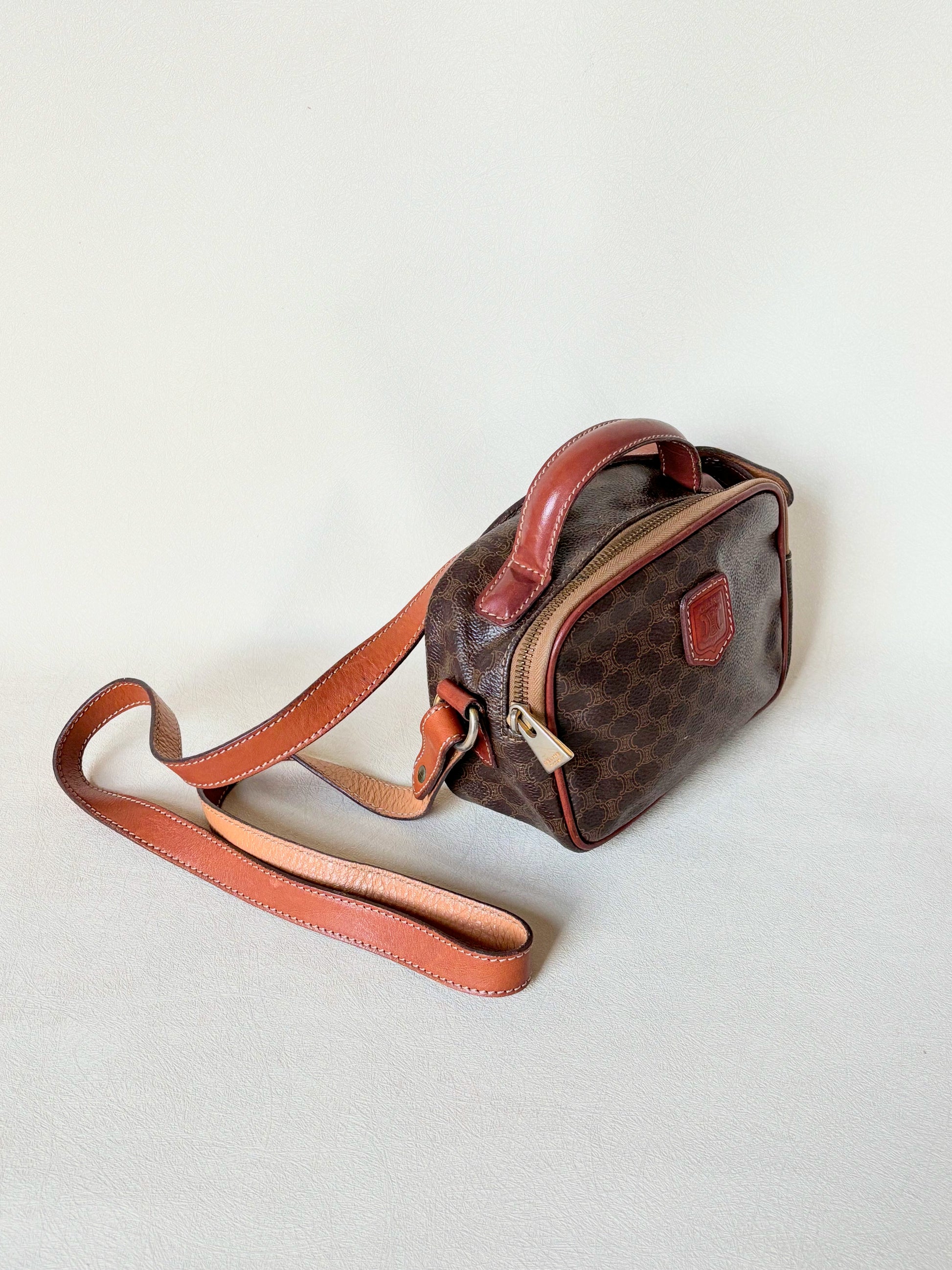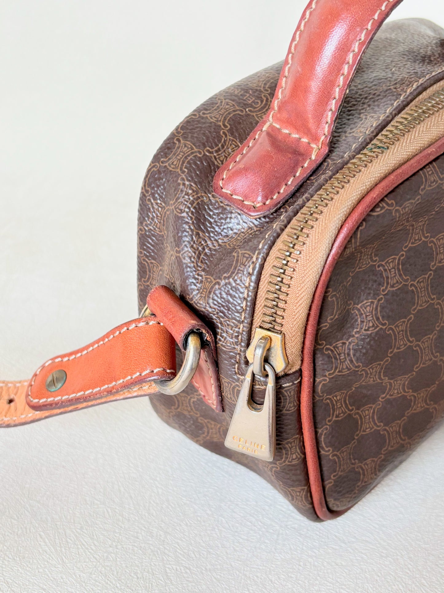 * Toile imprimée Triomphe et cuir camel surpiqué de fil beige