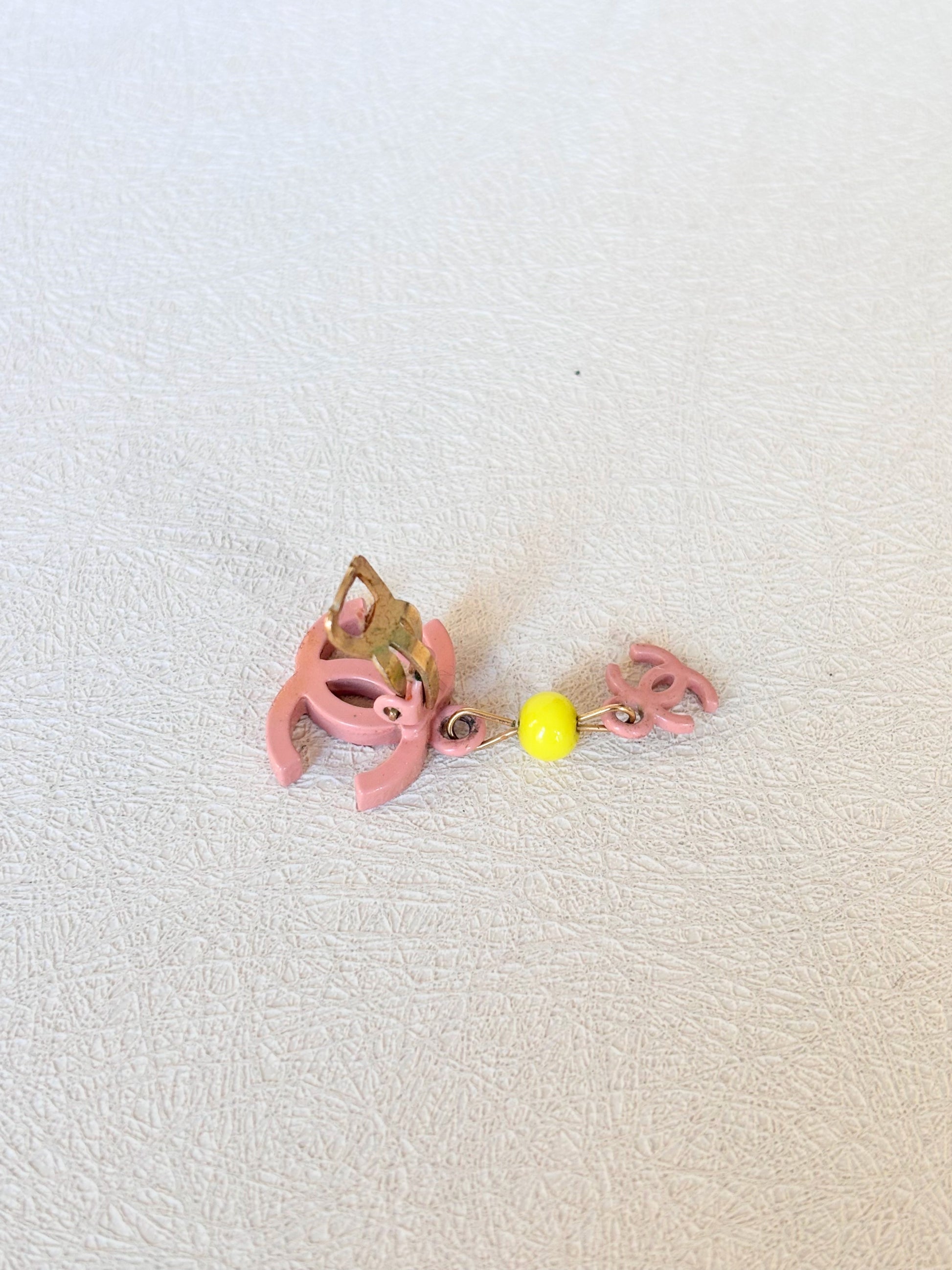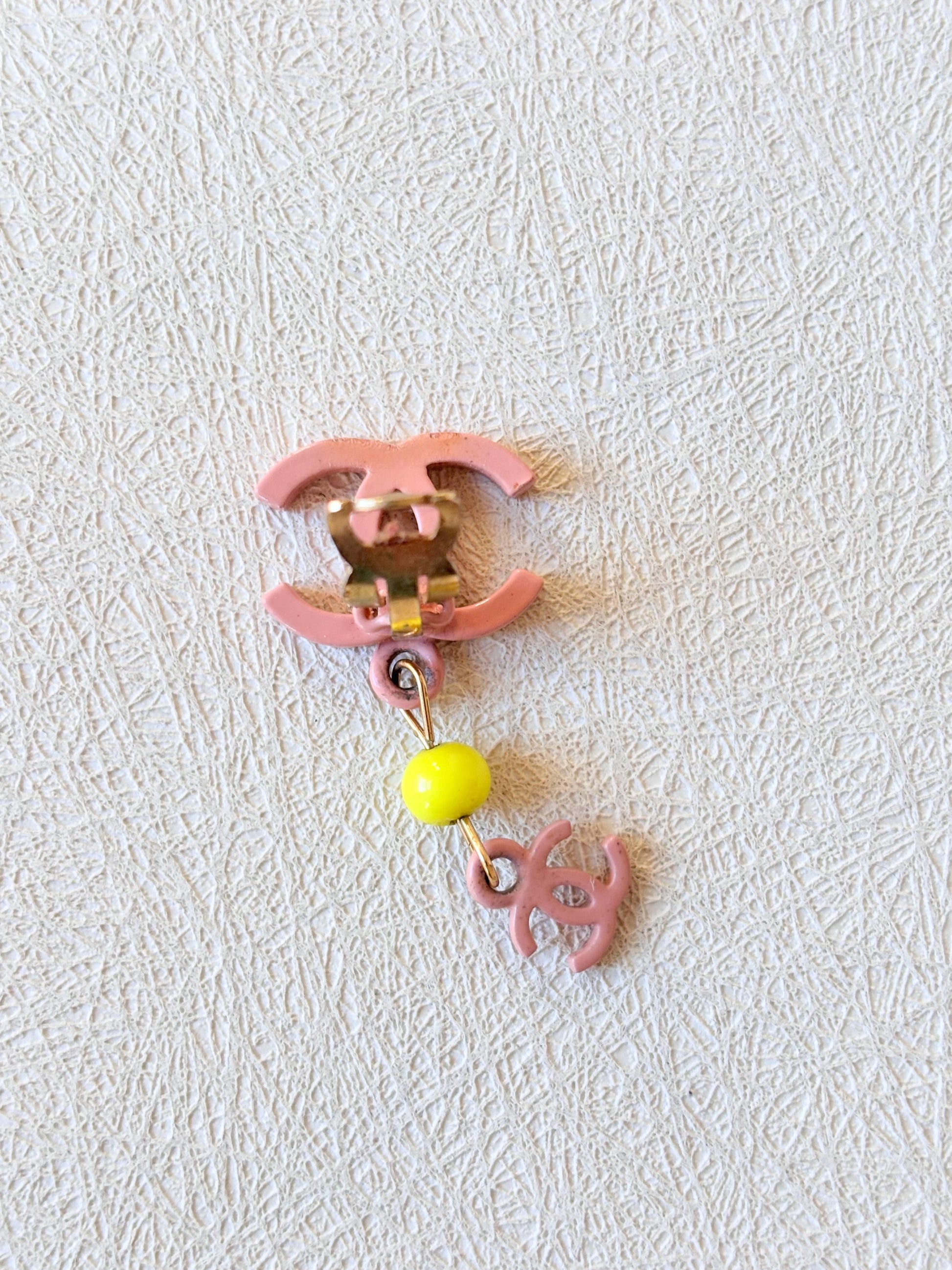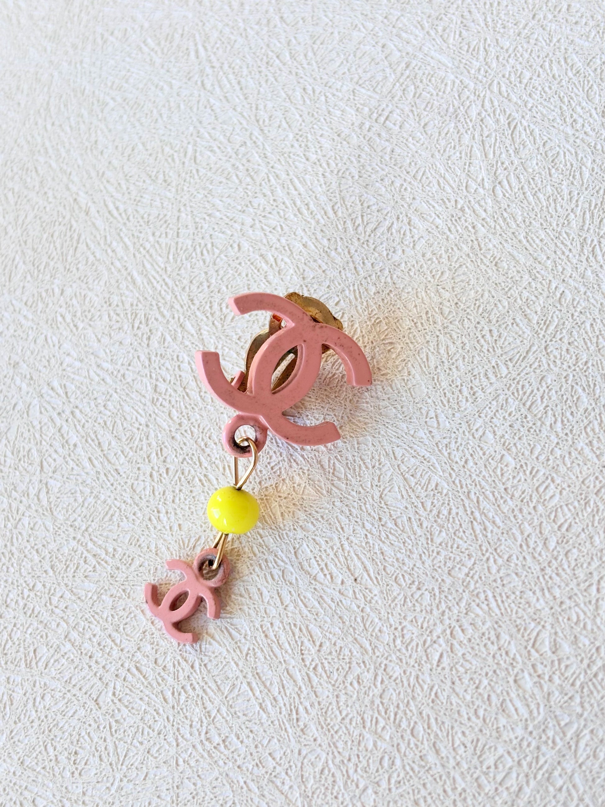 * Logo CC en métal rose et perle jaune