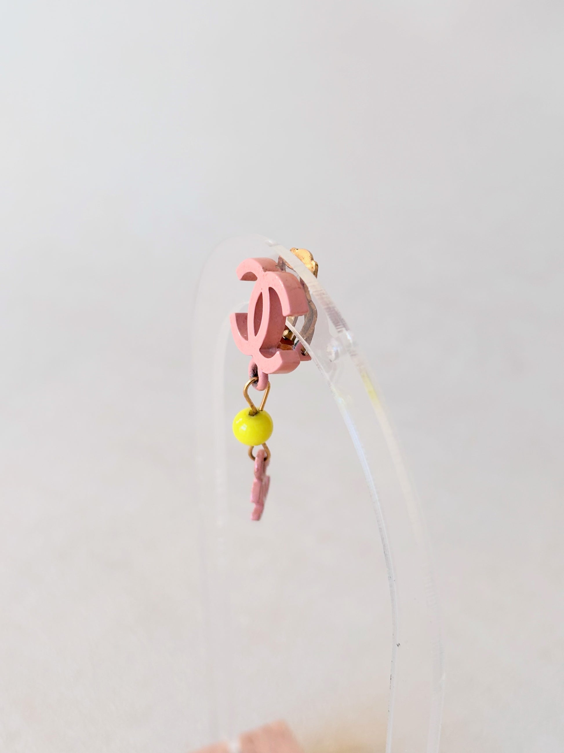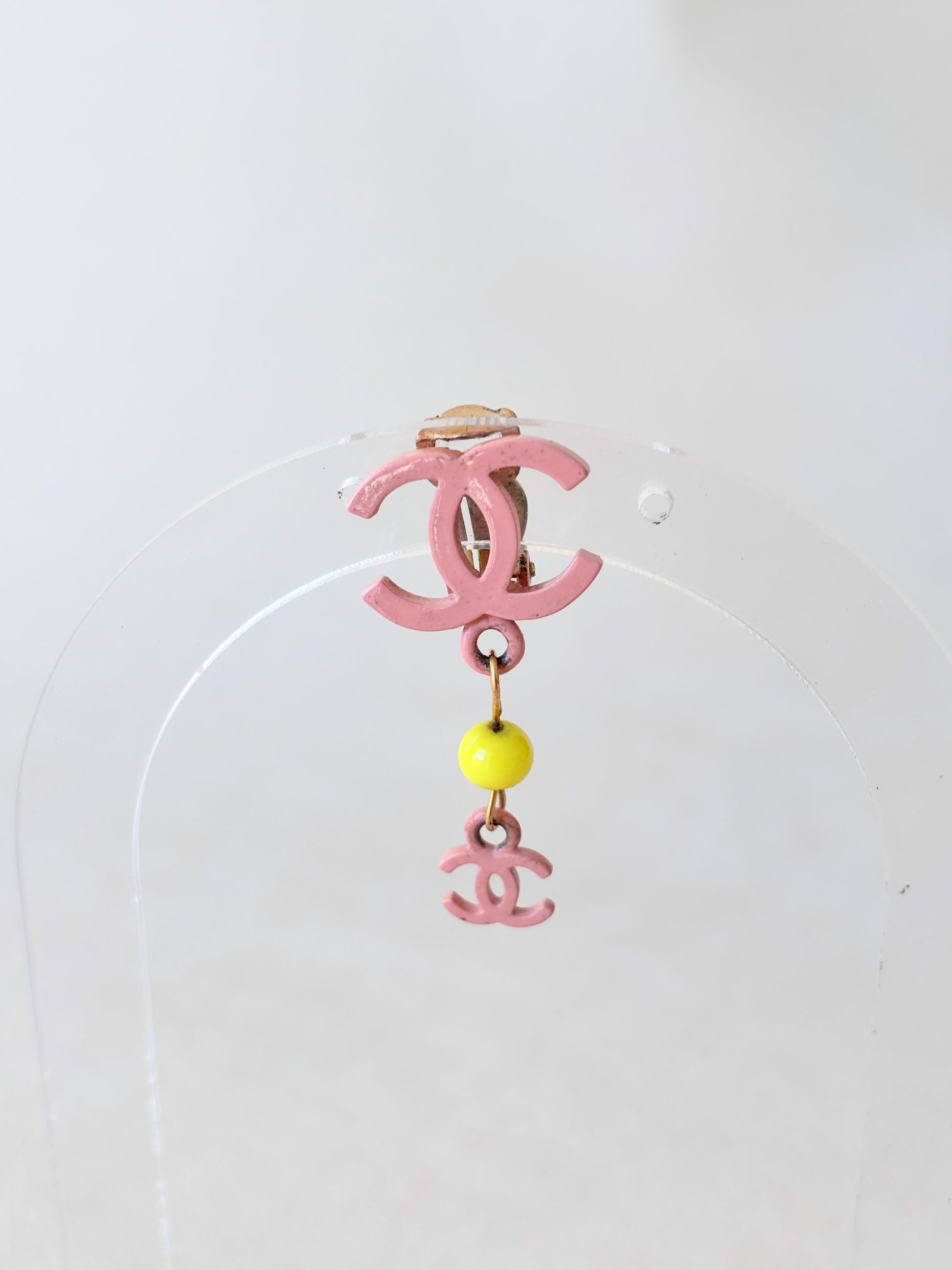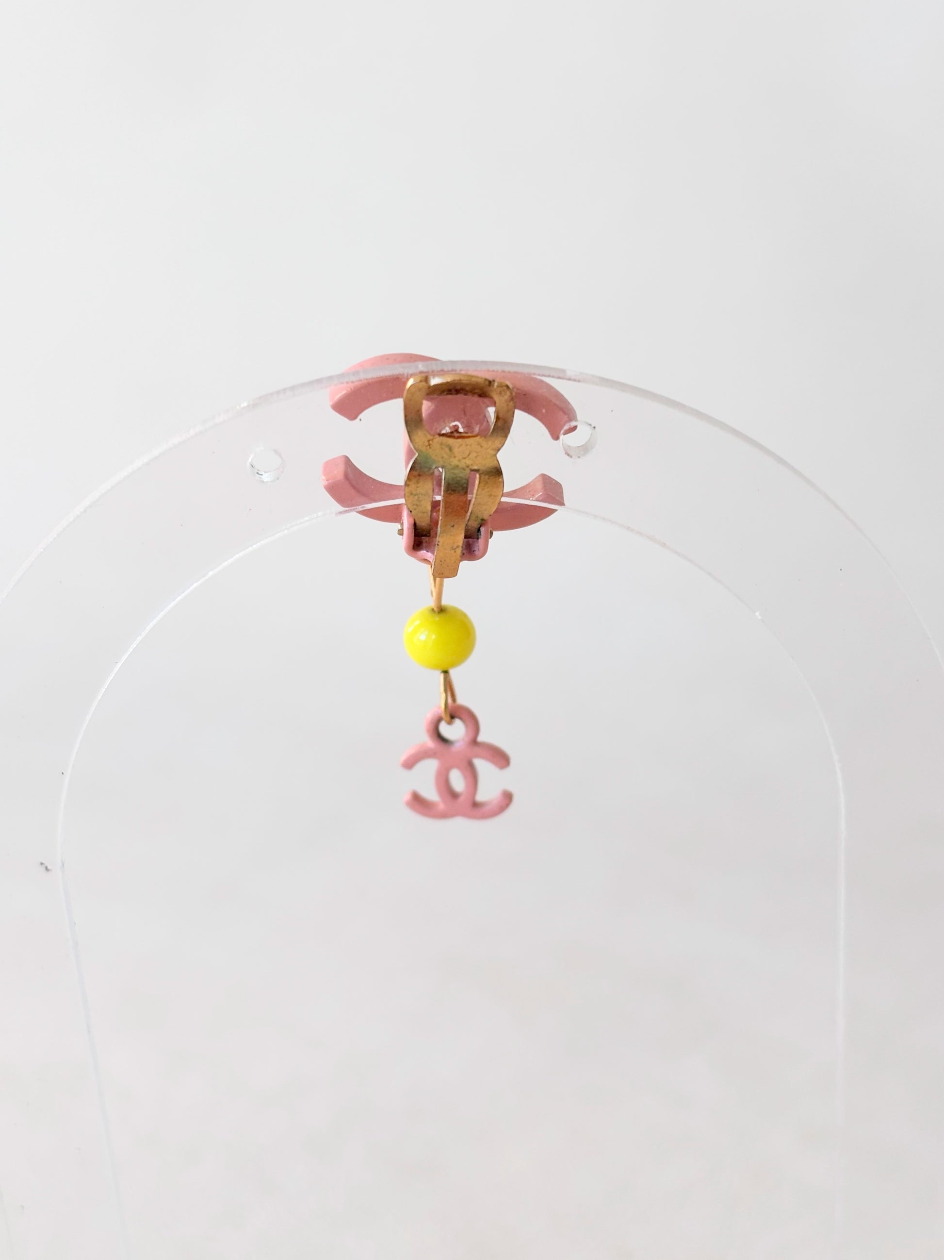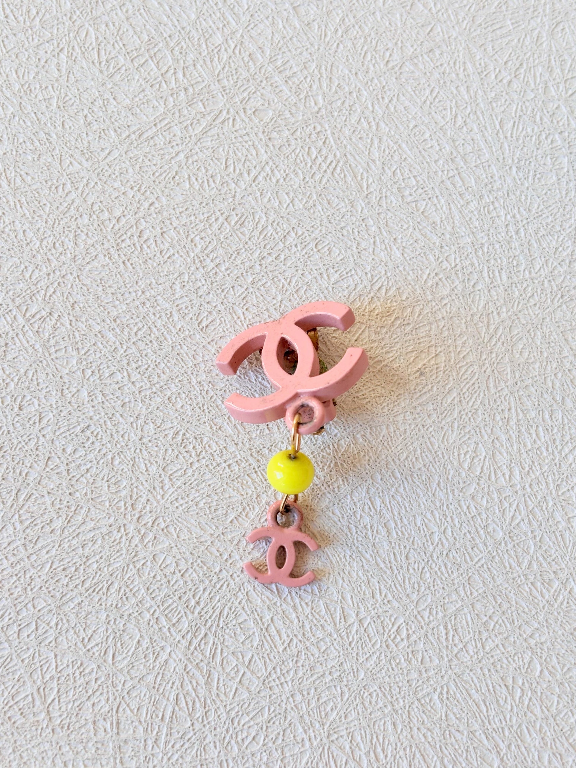 * Logo CC en métal rose et perle jaune