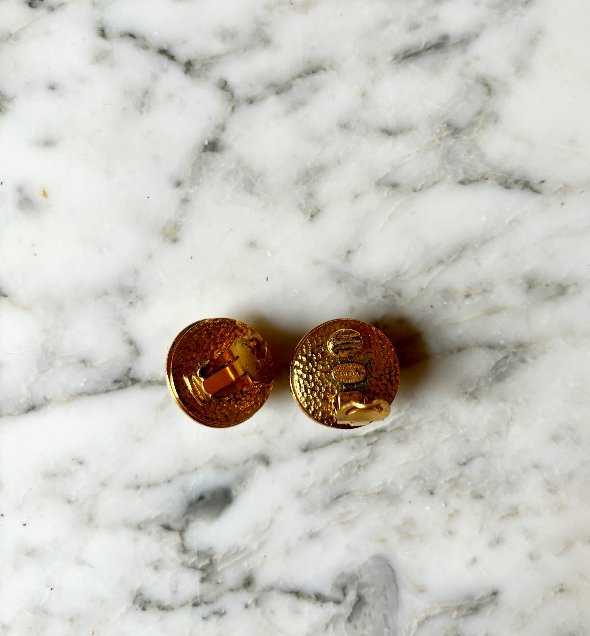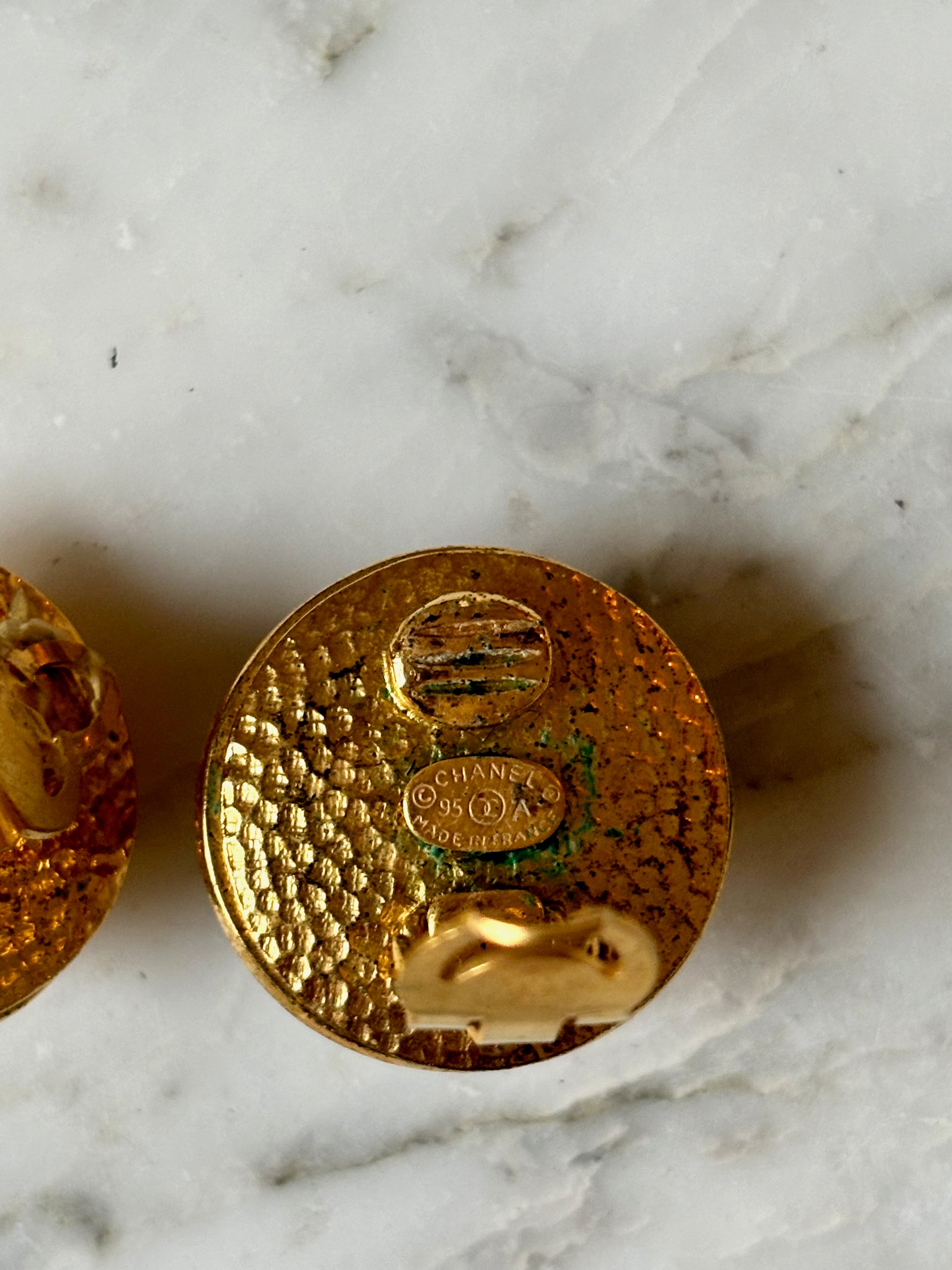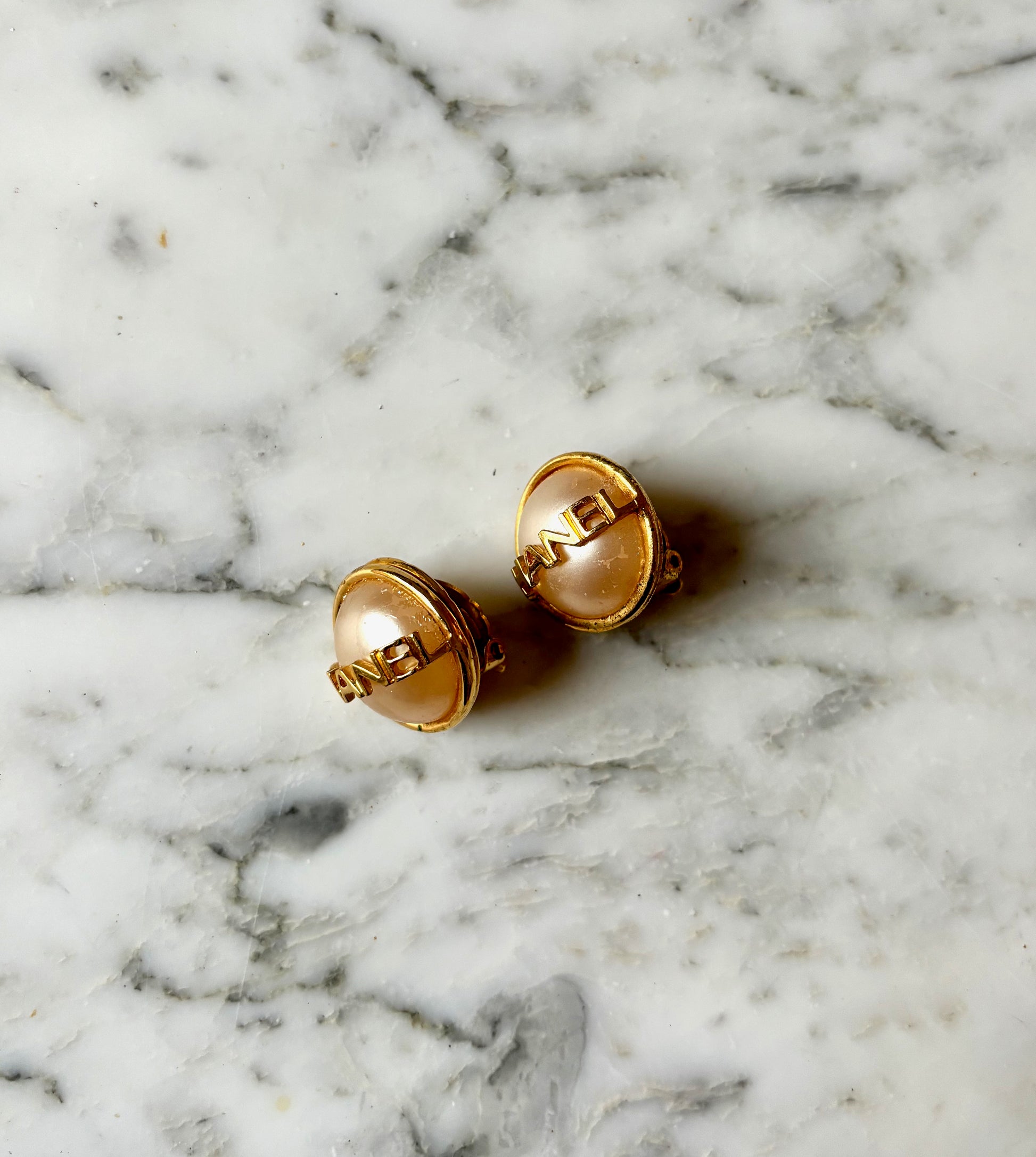 * En métal doré et perles nacrées, CHANEL en lettres dorées incrustées sur la perle