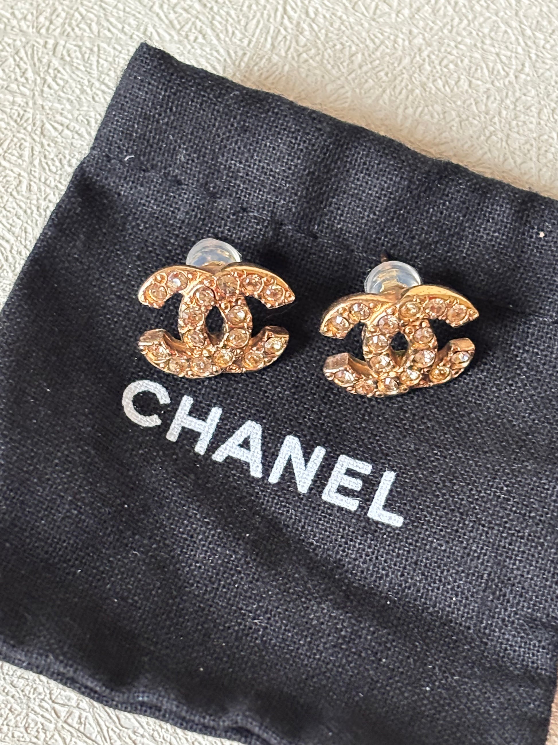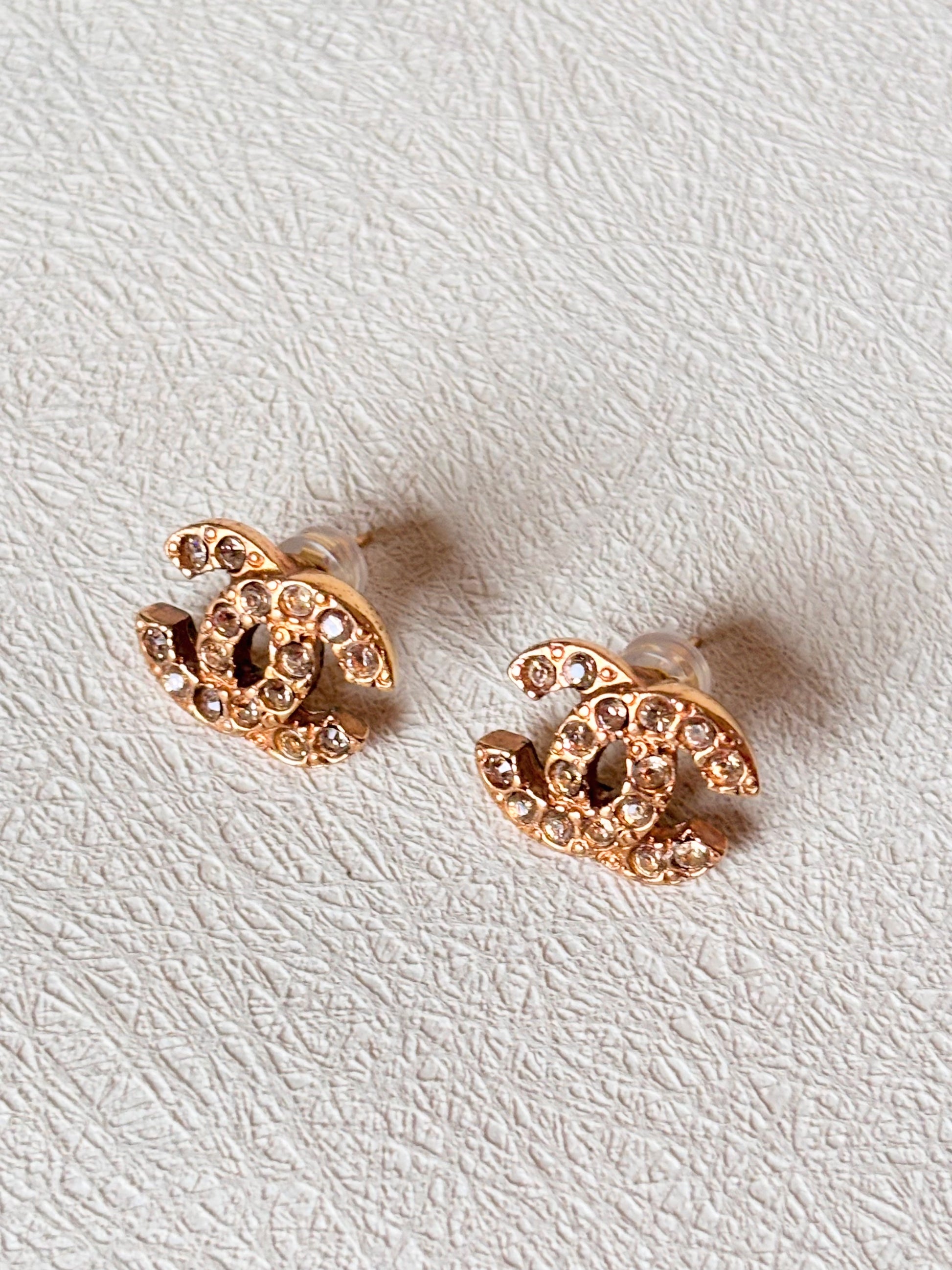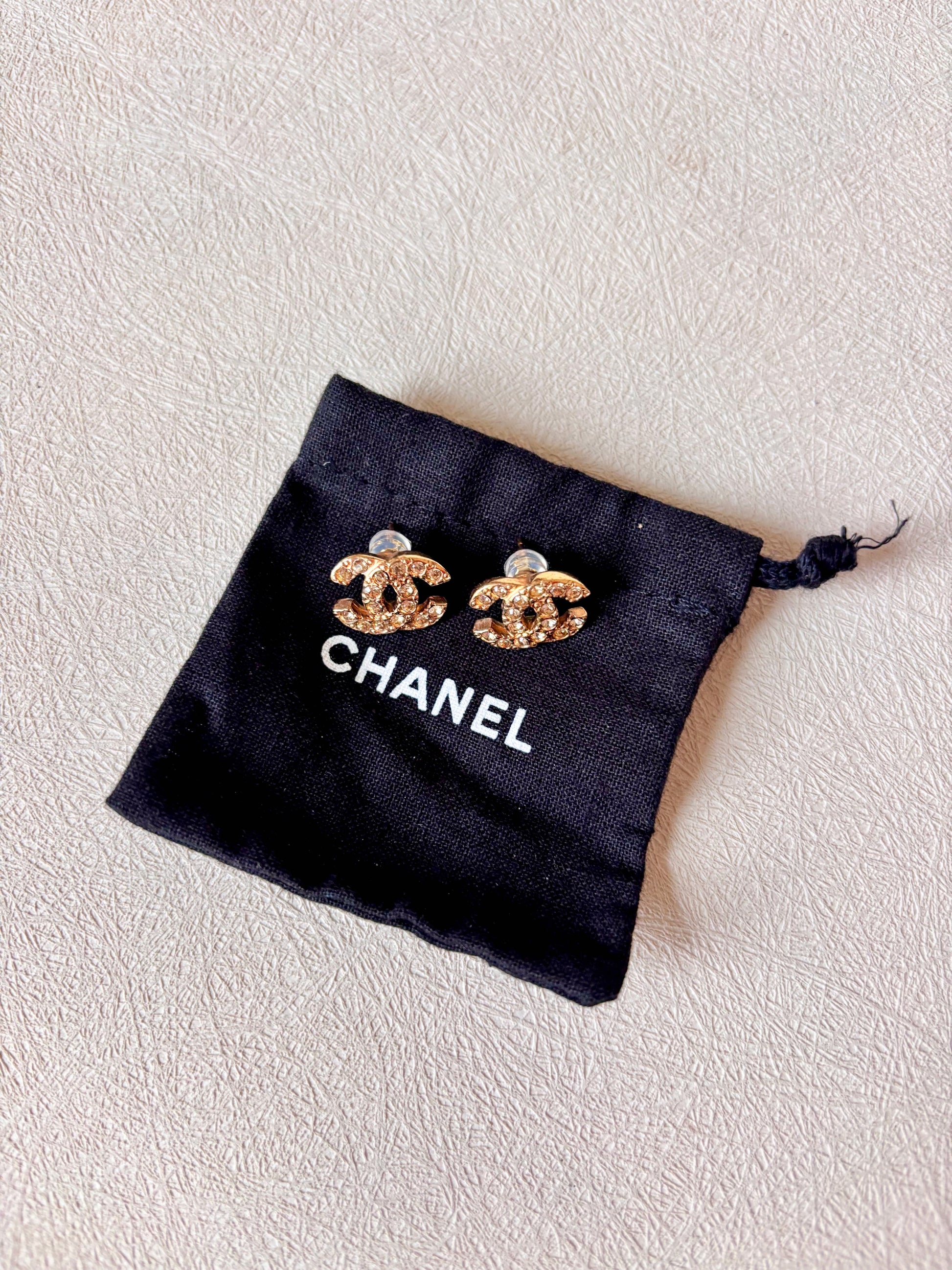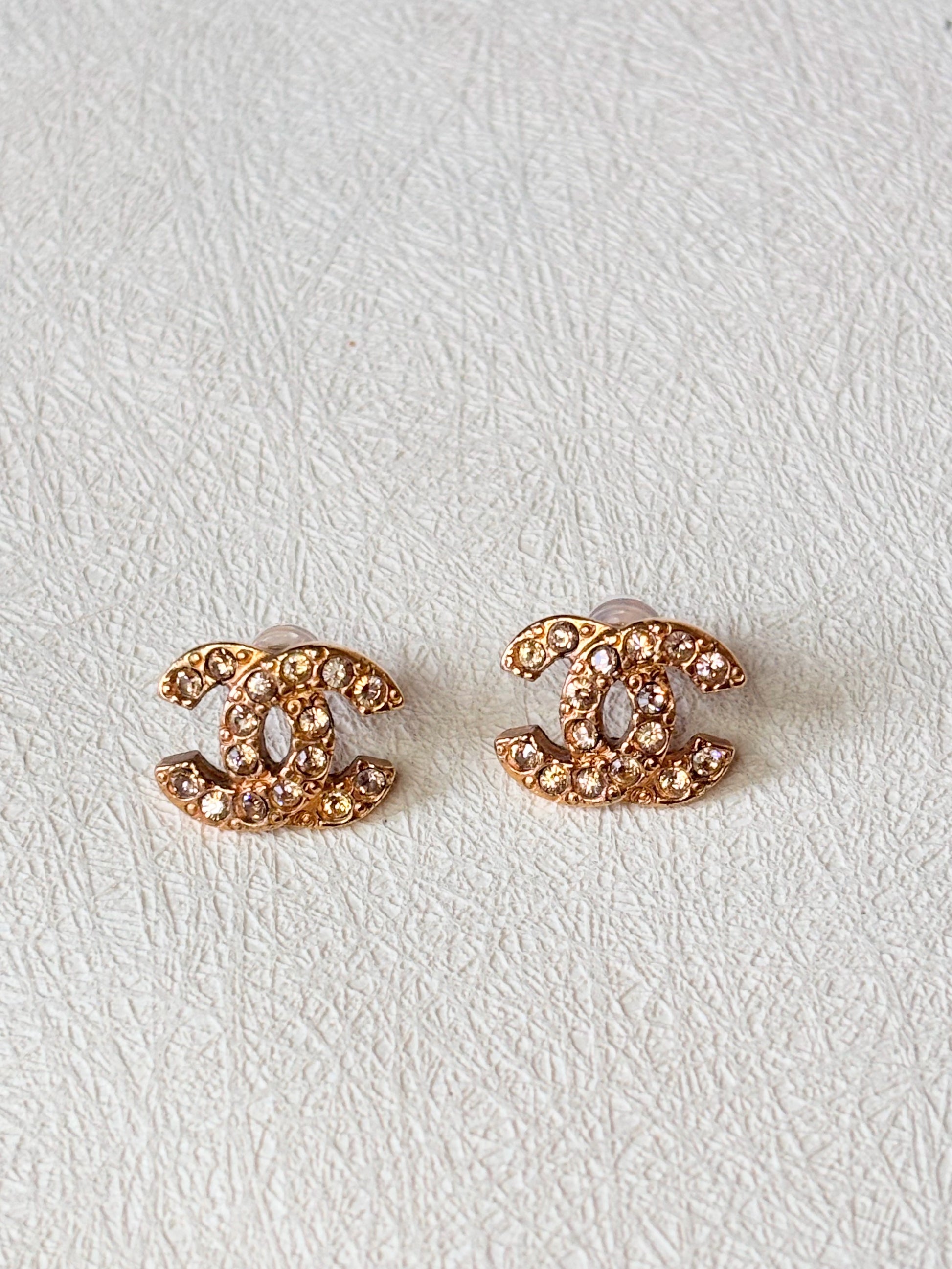 * Boucles d’oreilles CHANEL modèle CC à strass