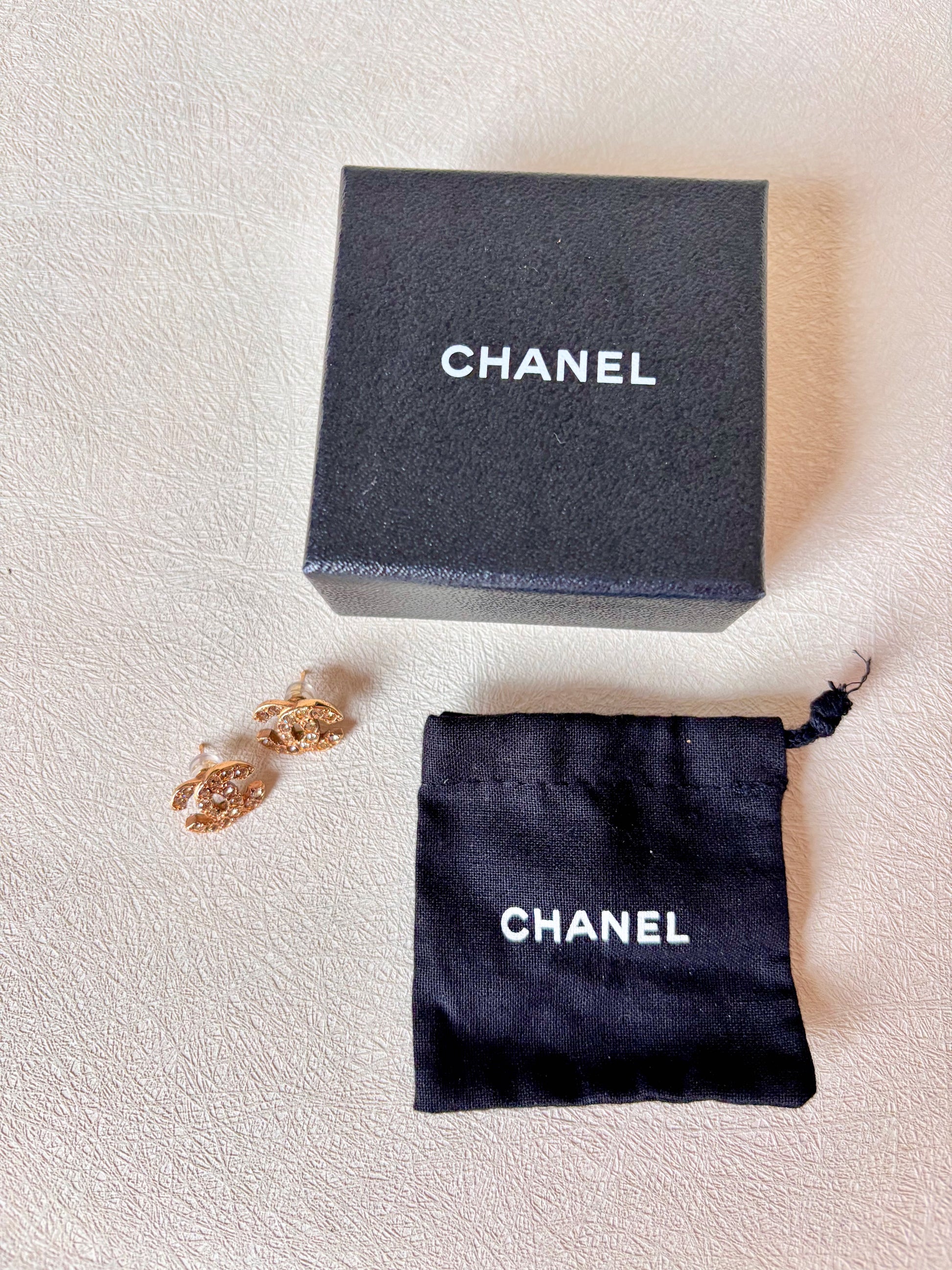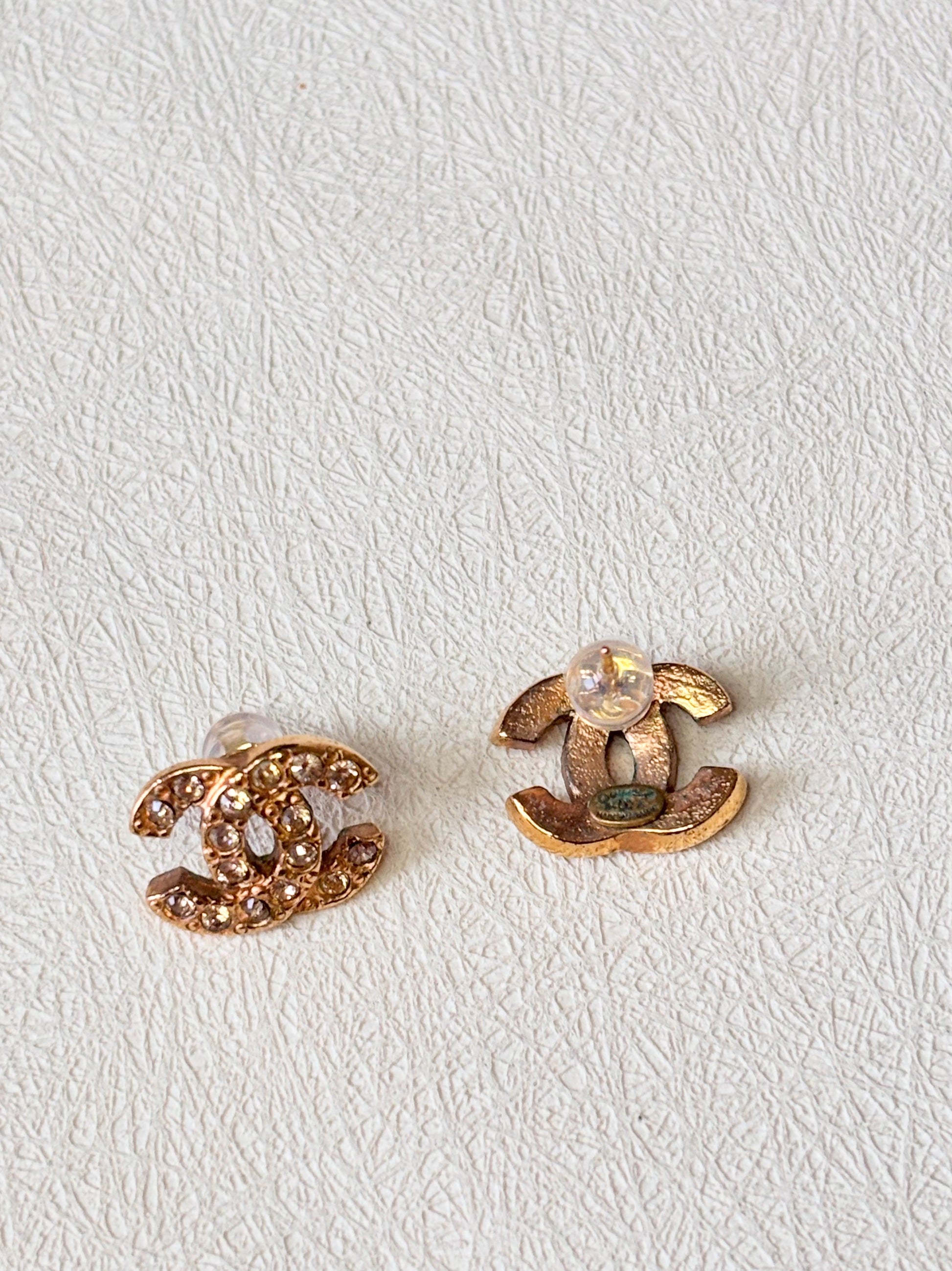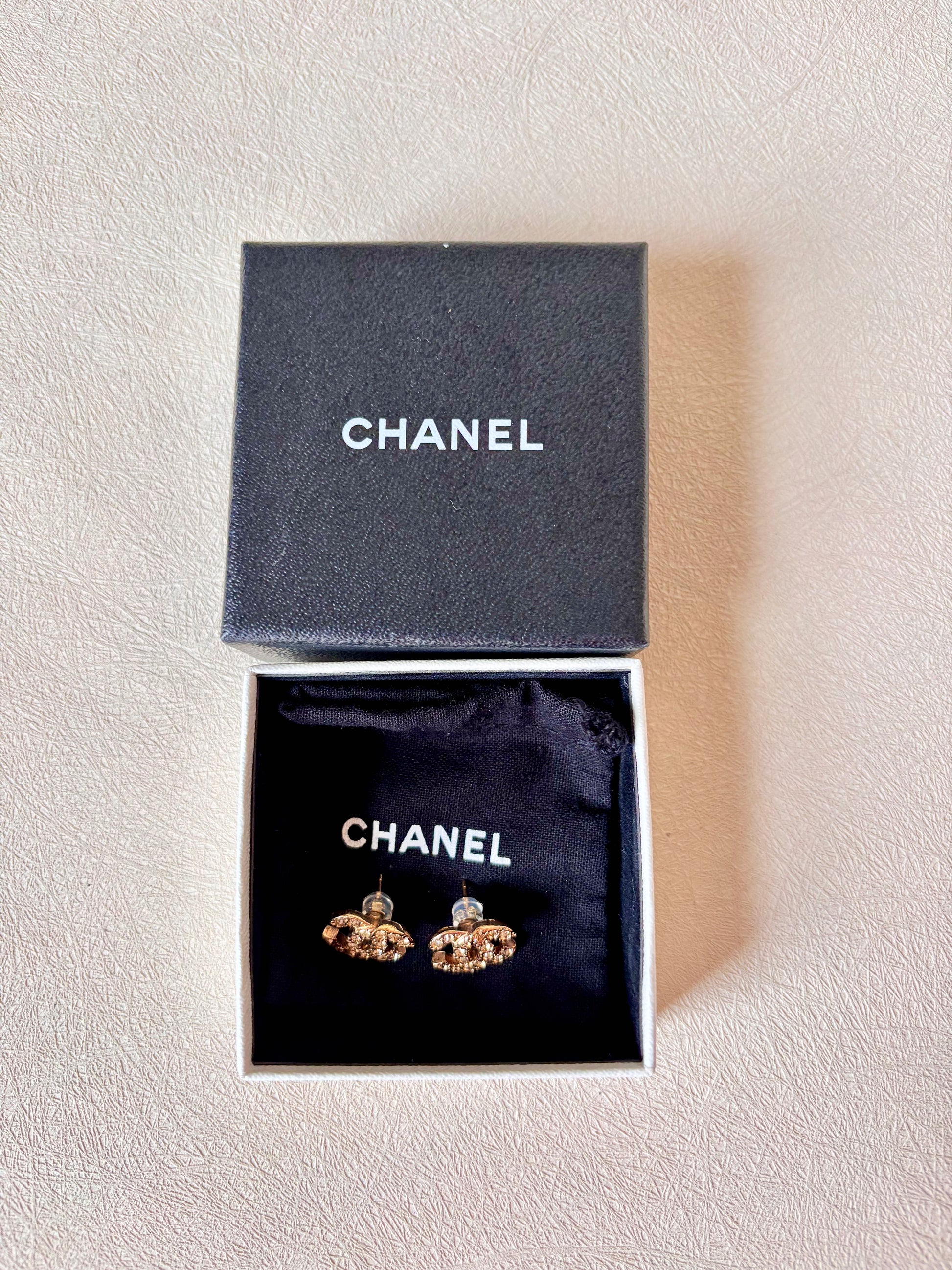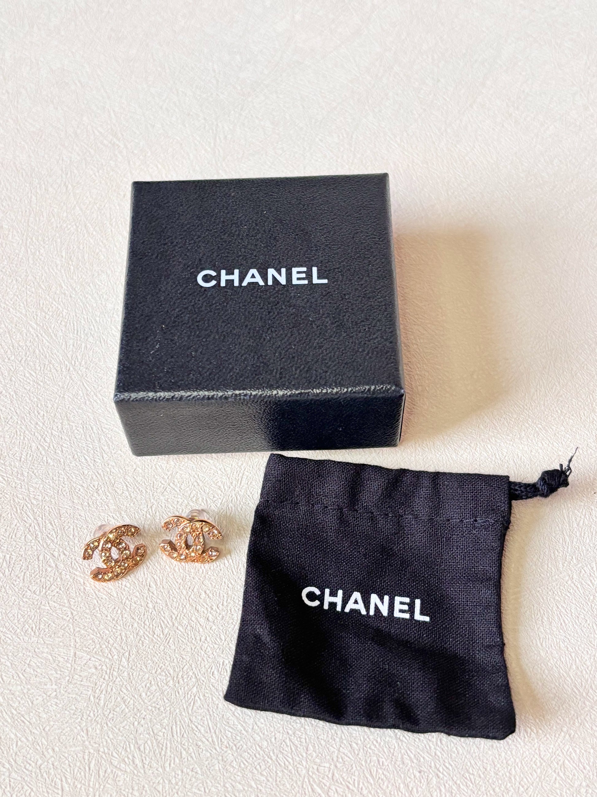 * Boucles d’oreilles CHANEL modèle CC à strass