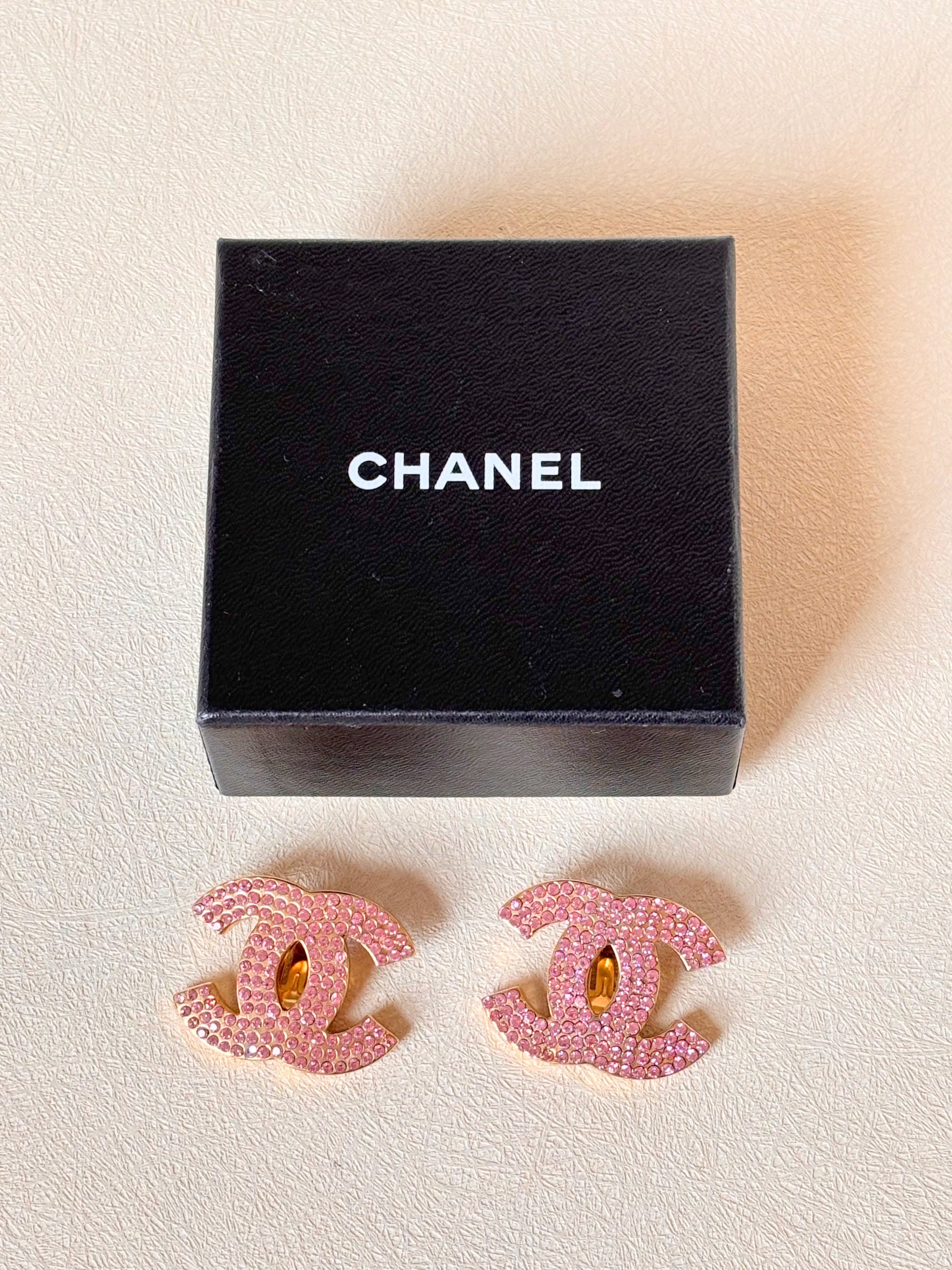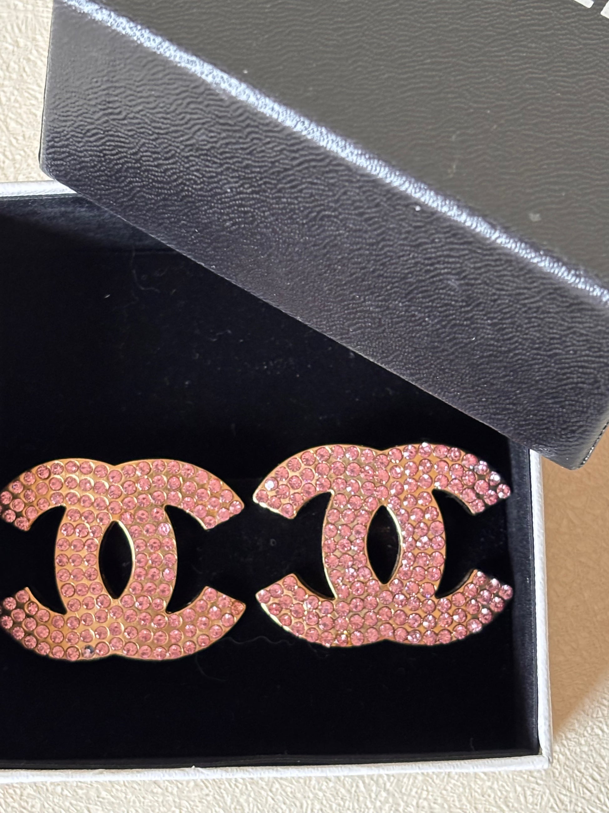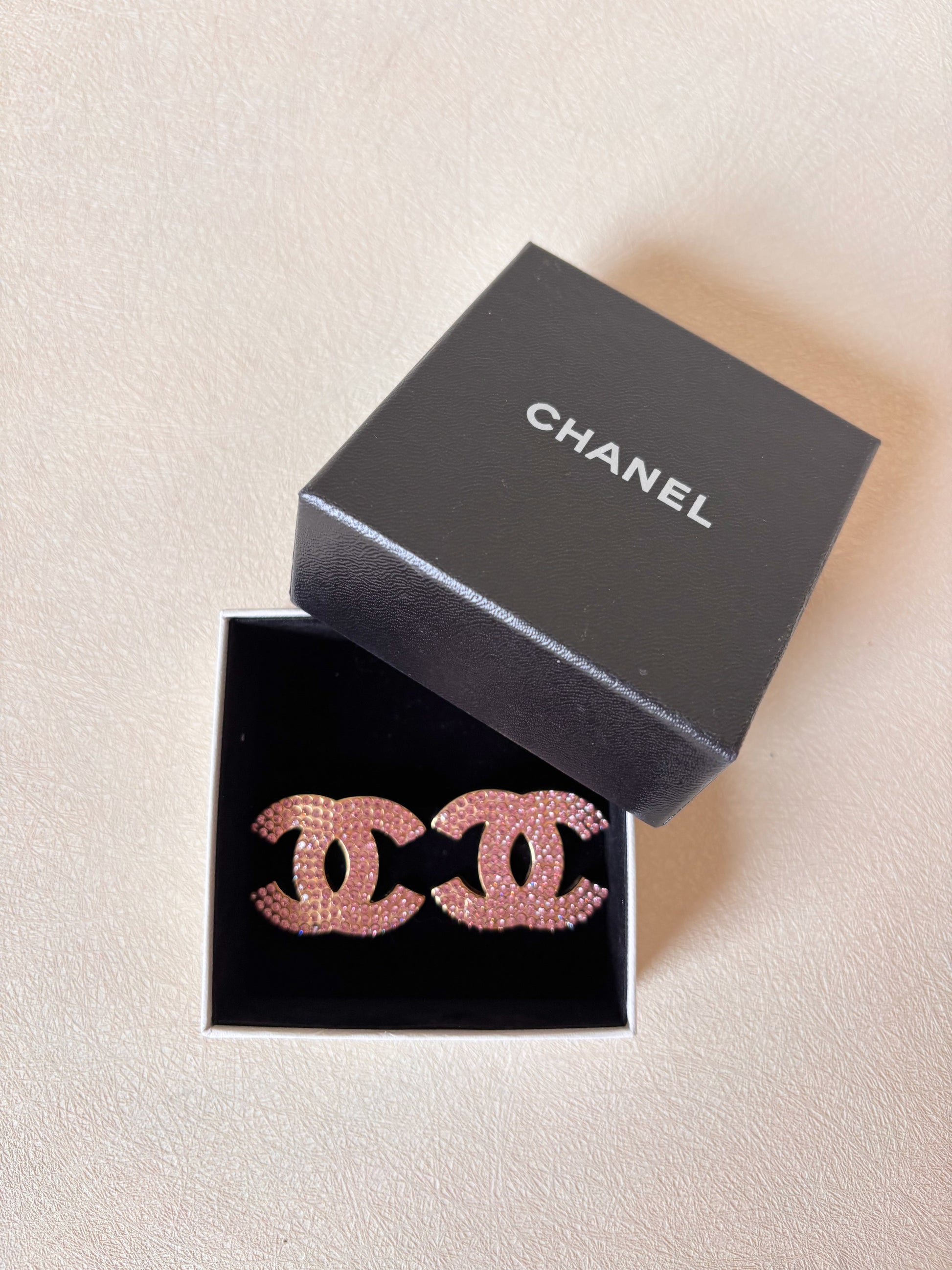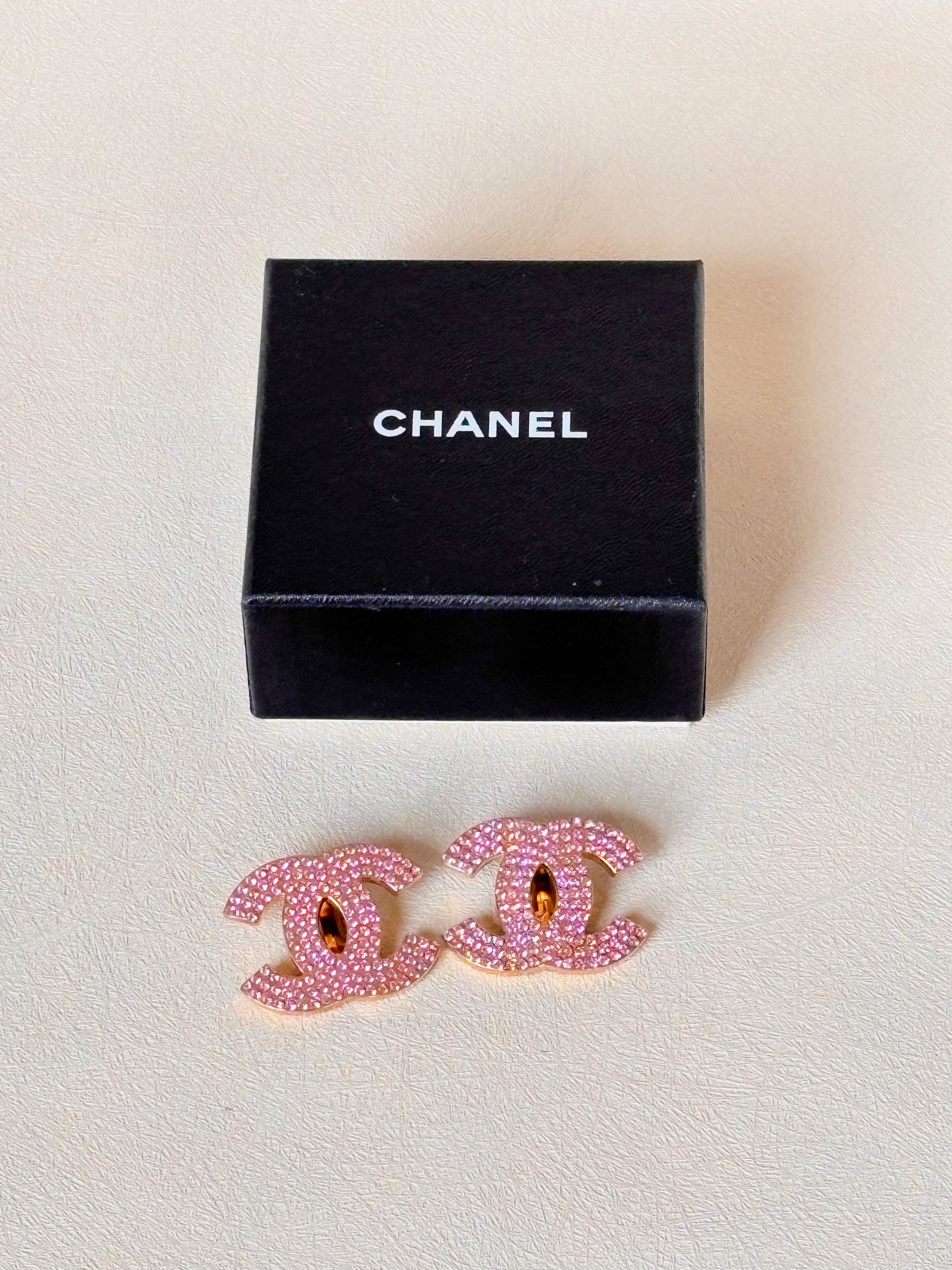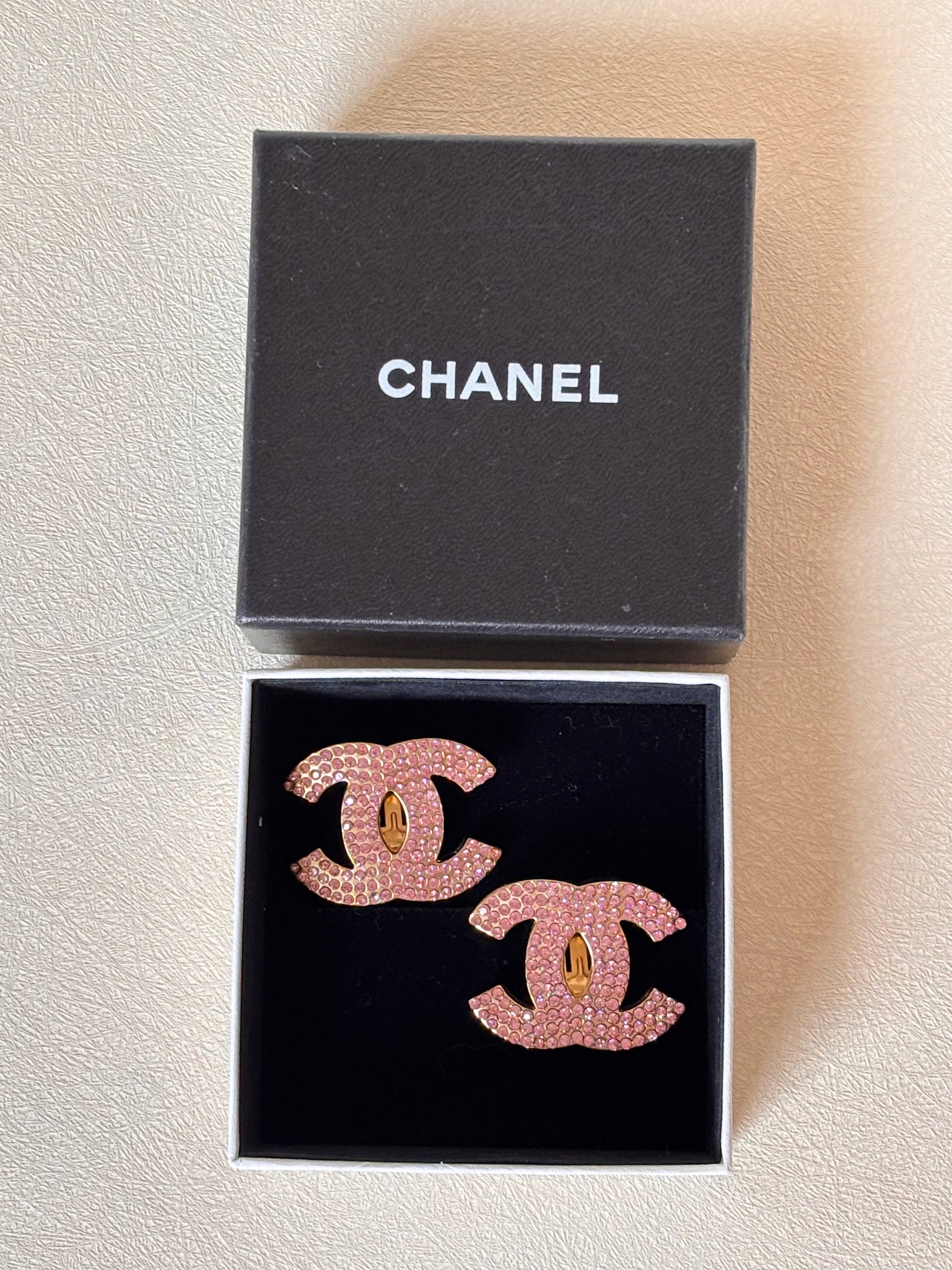 * Boucles d’oreilles logo CHANEL modèle maxi CC strass