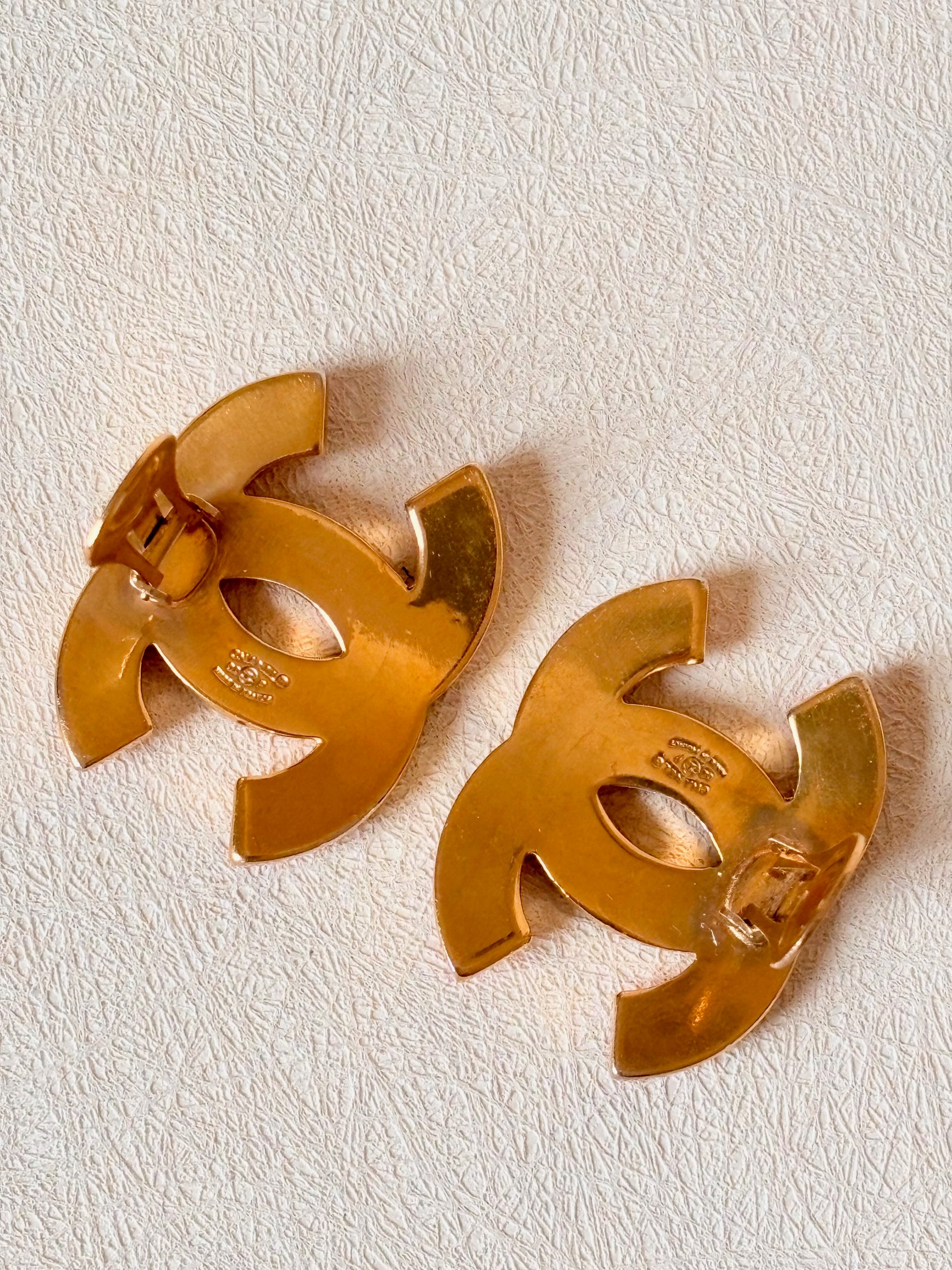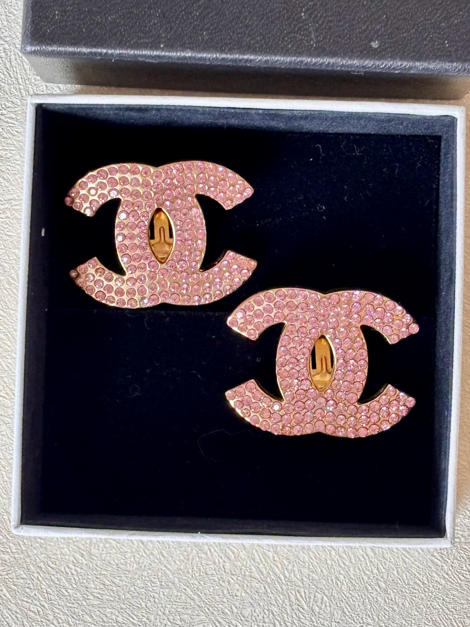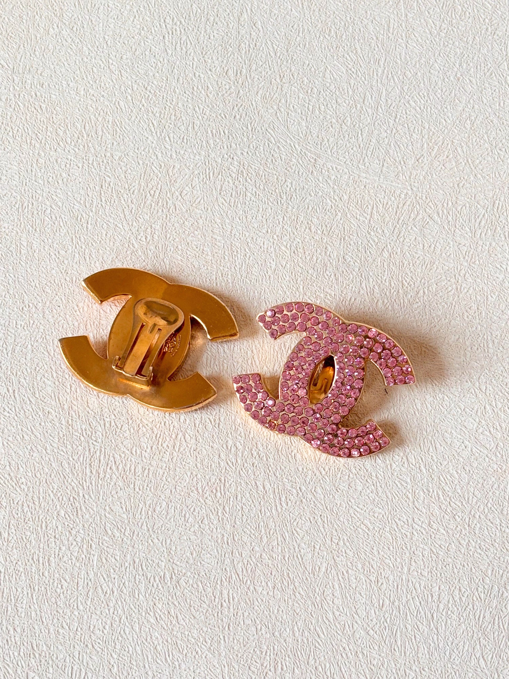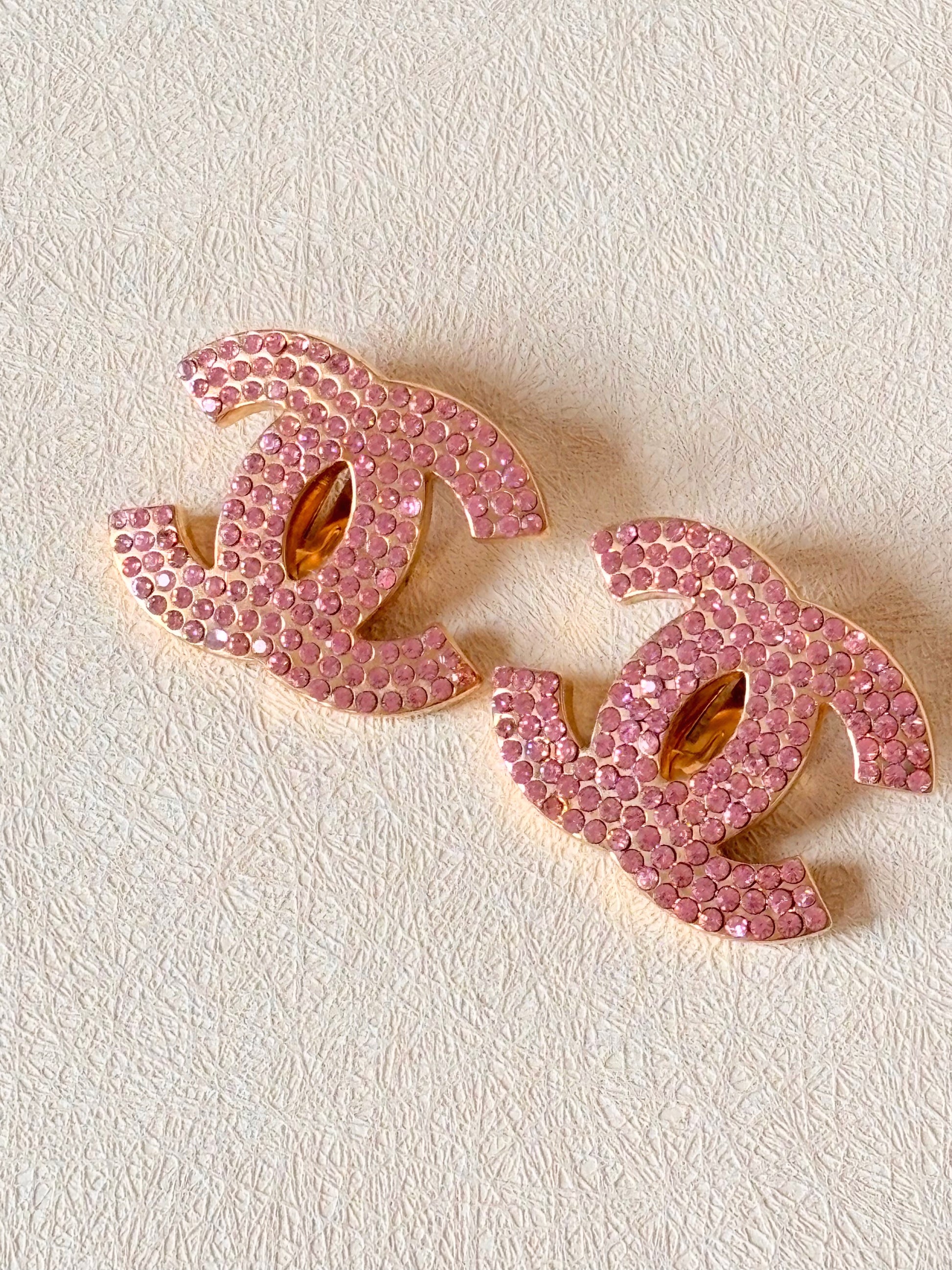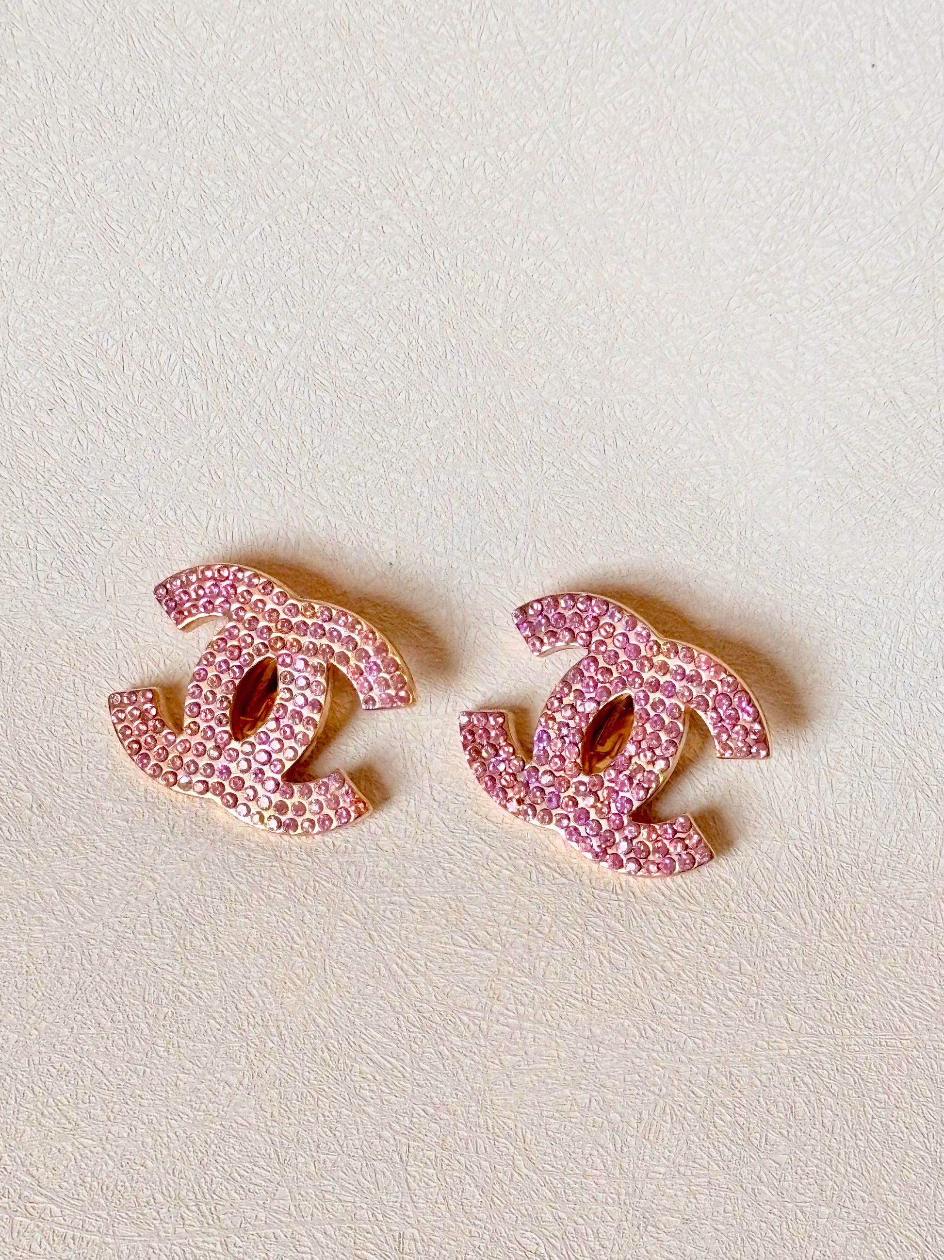 * Boucles d’oreilles logo CHANEL modèle maxi CC strass