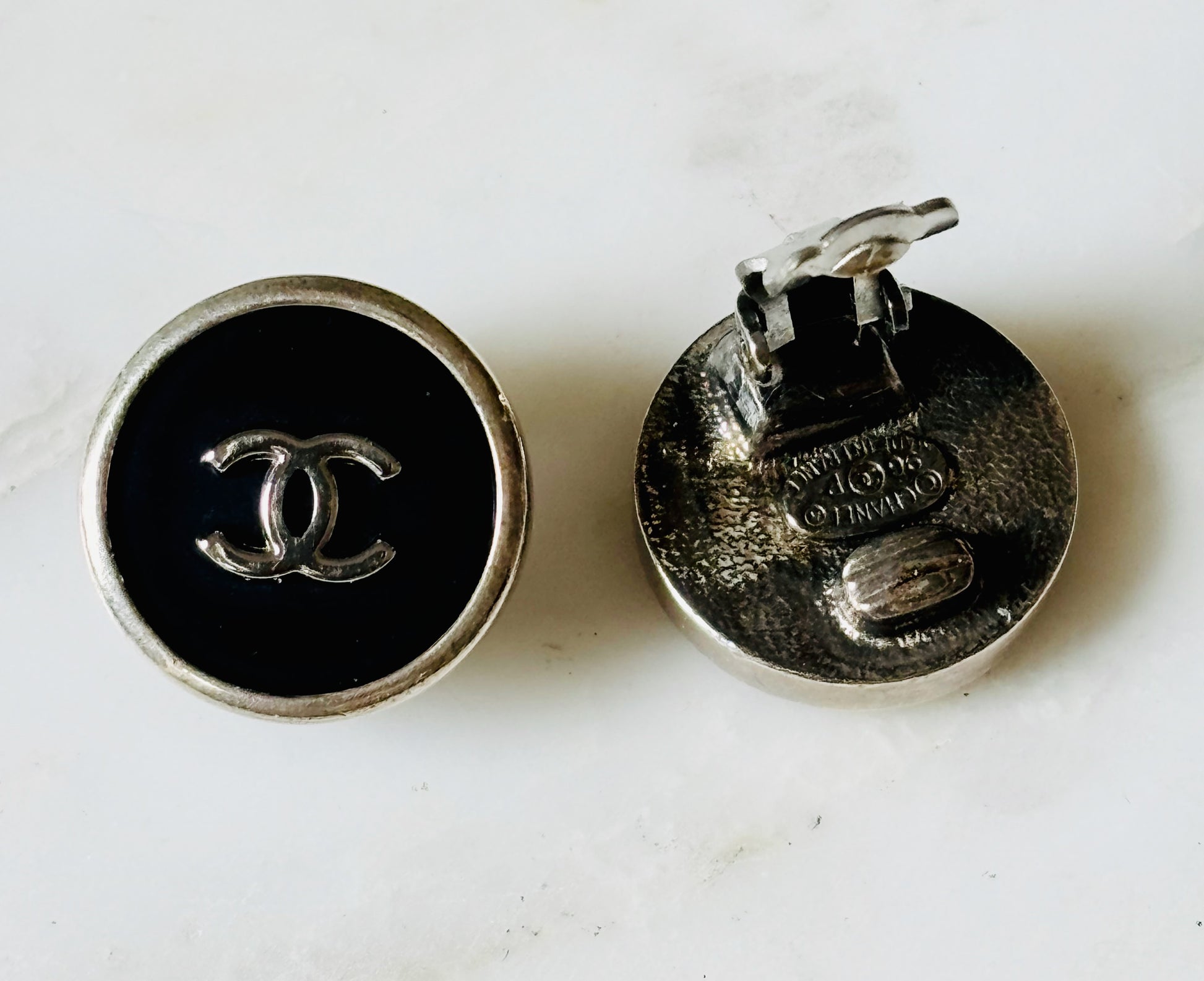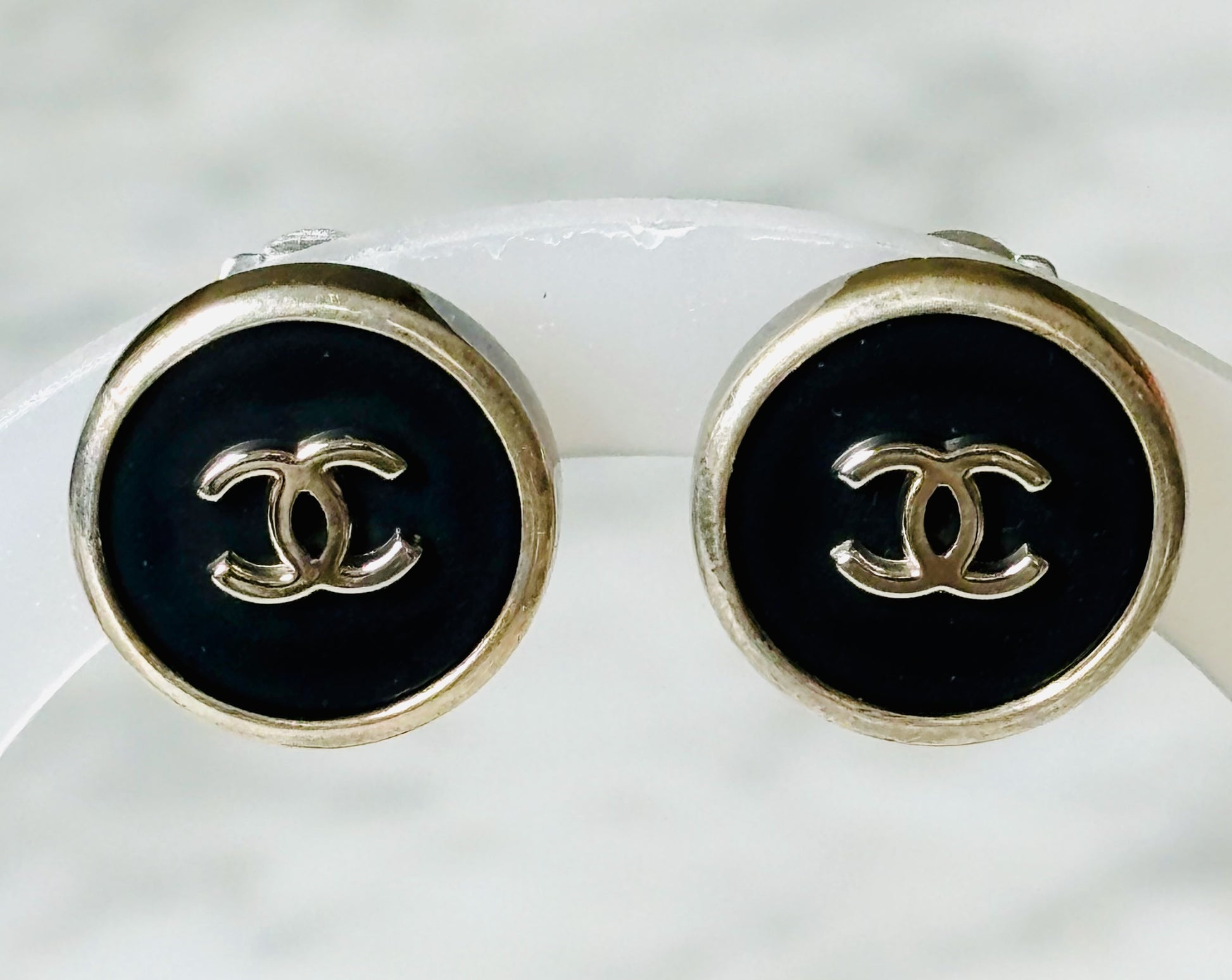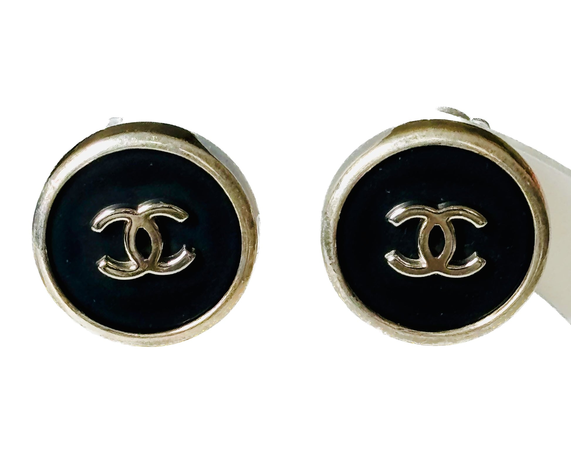* Boucles d'oreilles rondes noires CHANEL année 1996