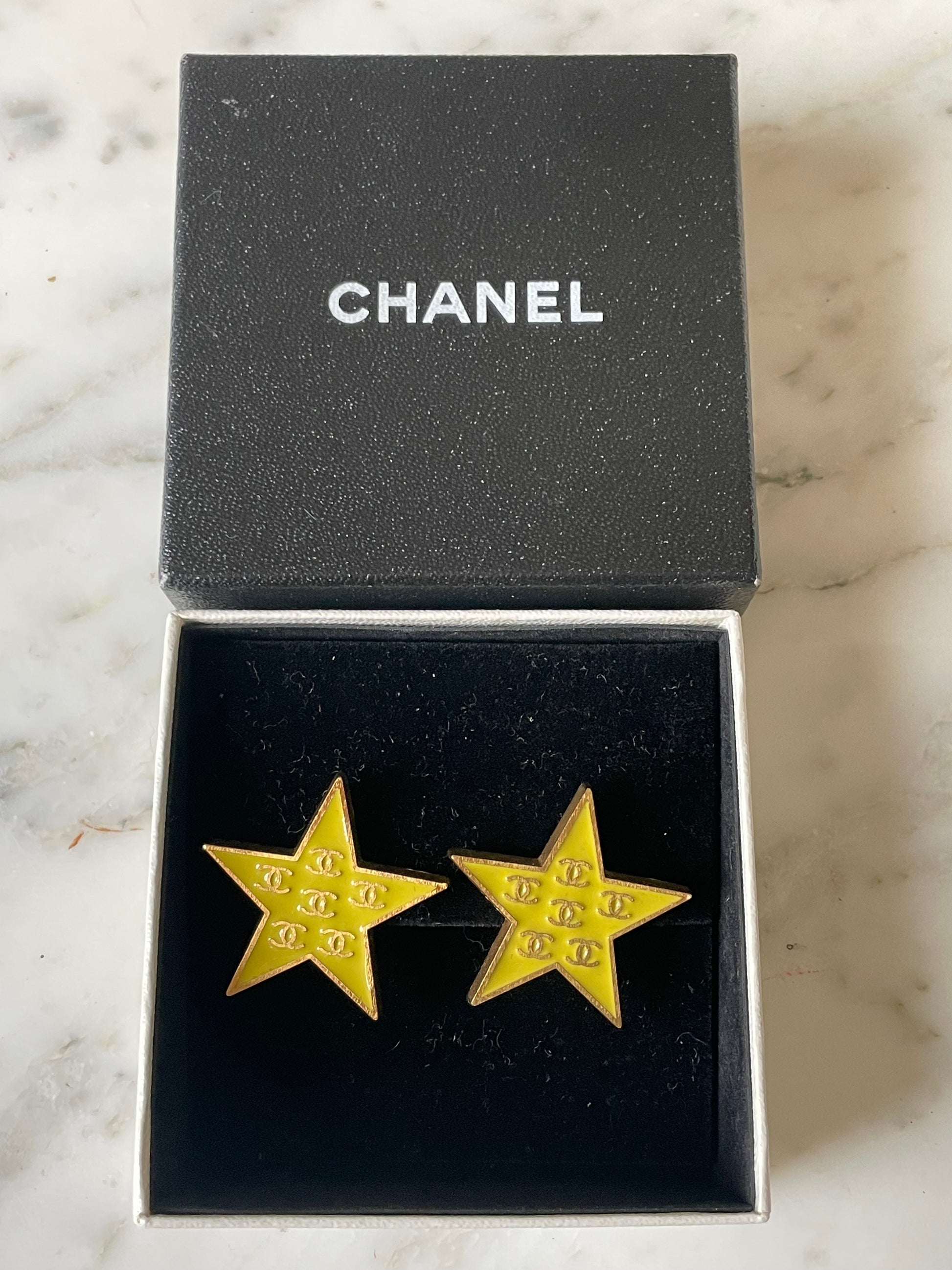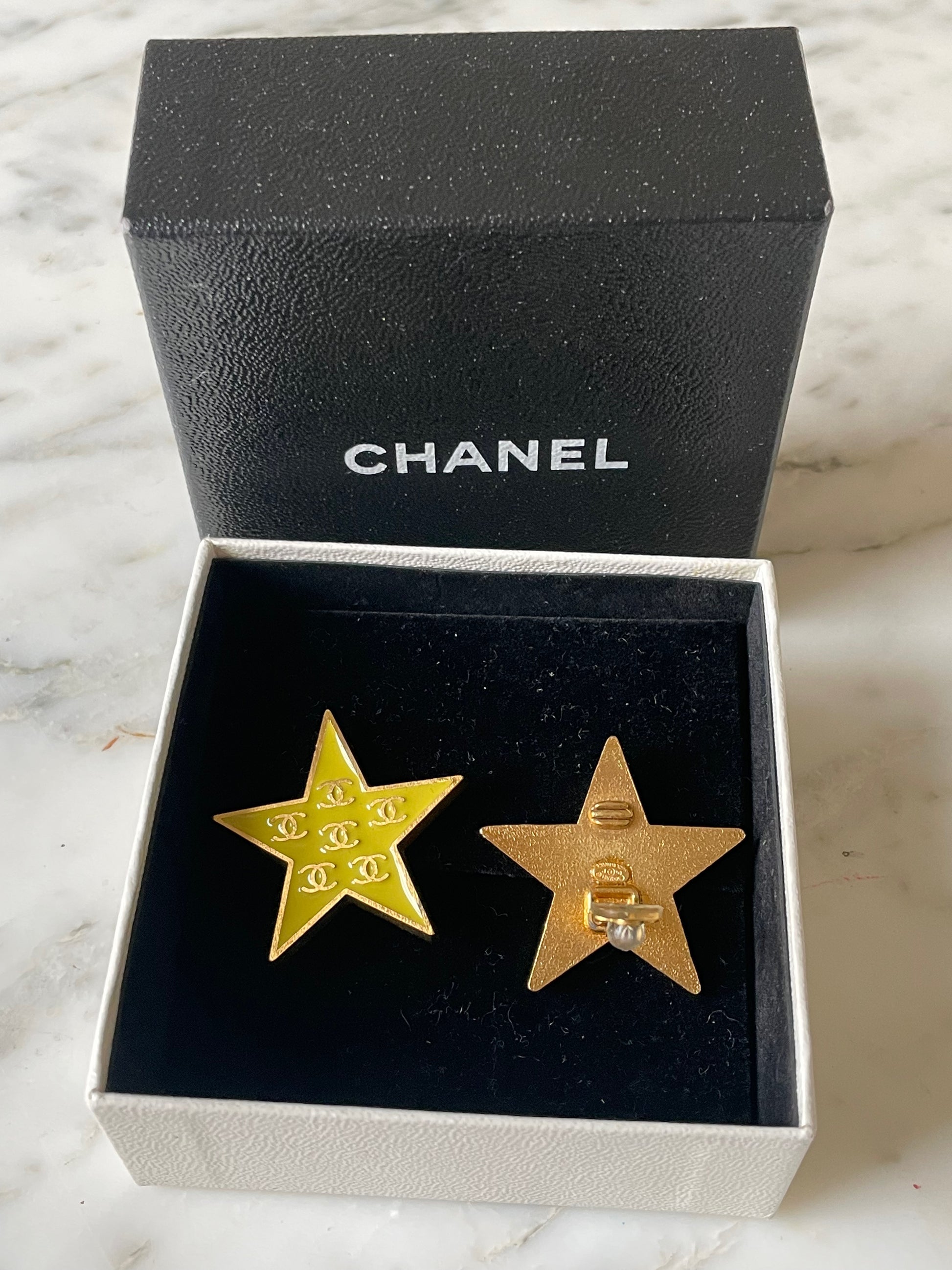* Étoiles en métal doré et laqué jaune avec logo cc