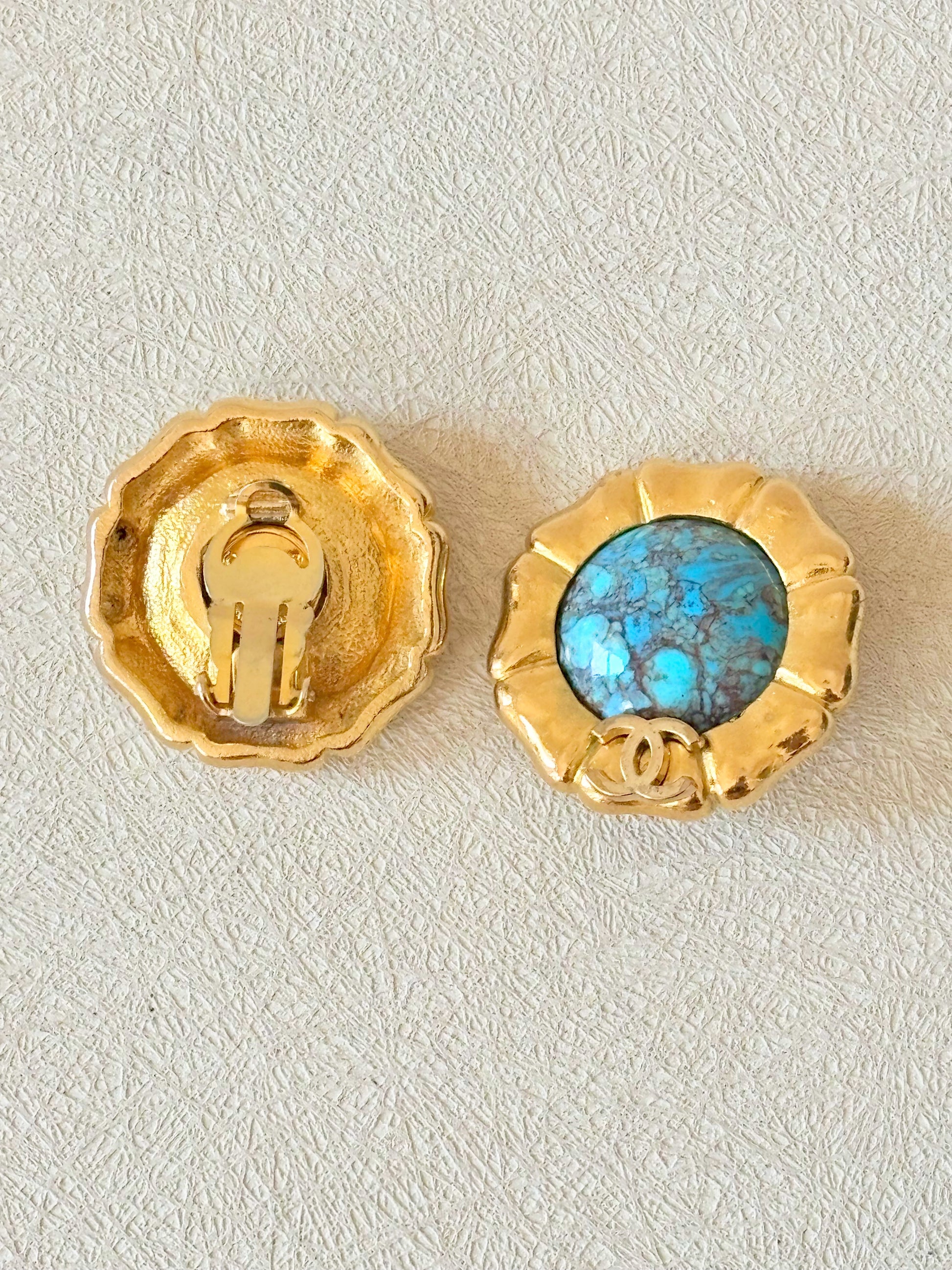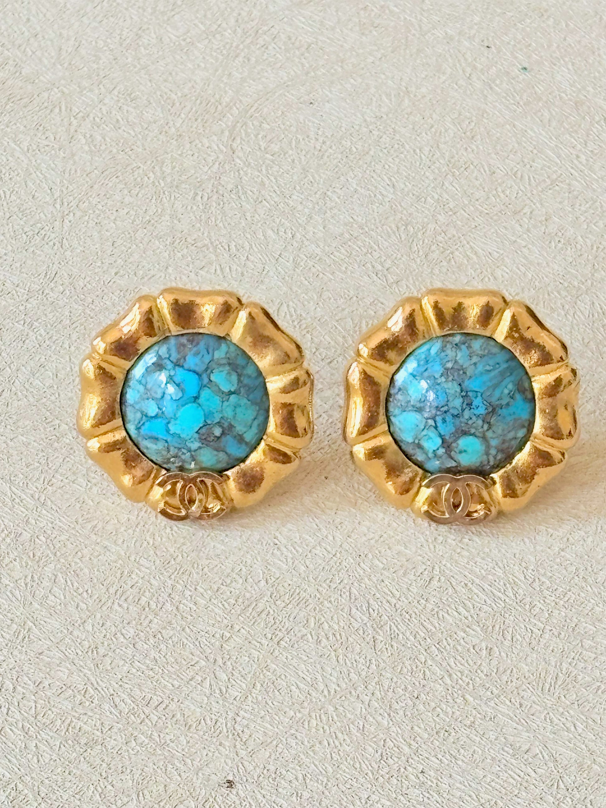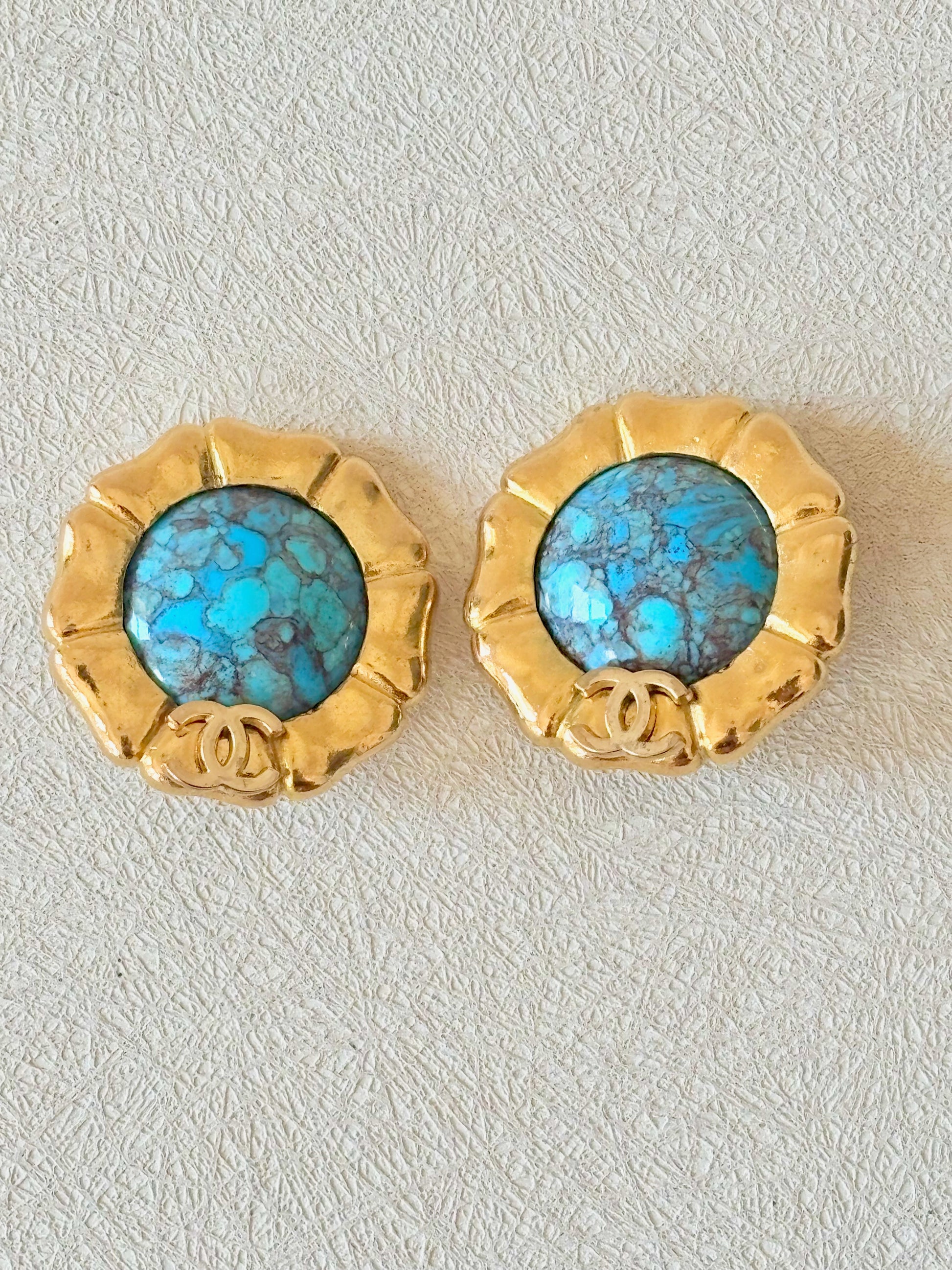 * Métal doré et logo CC incrusté, cabochon turquoise