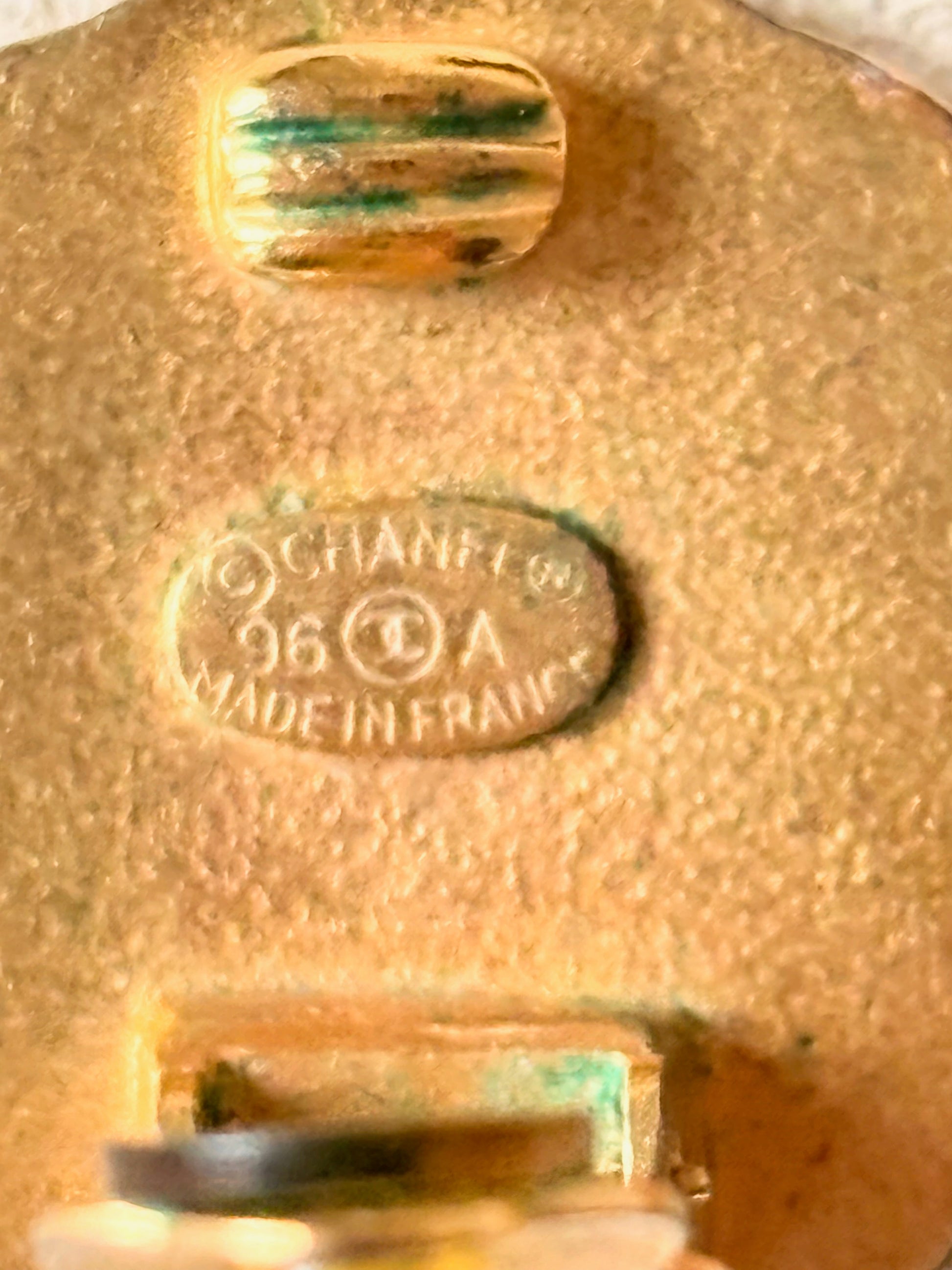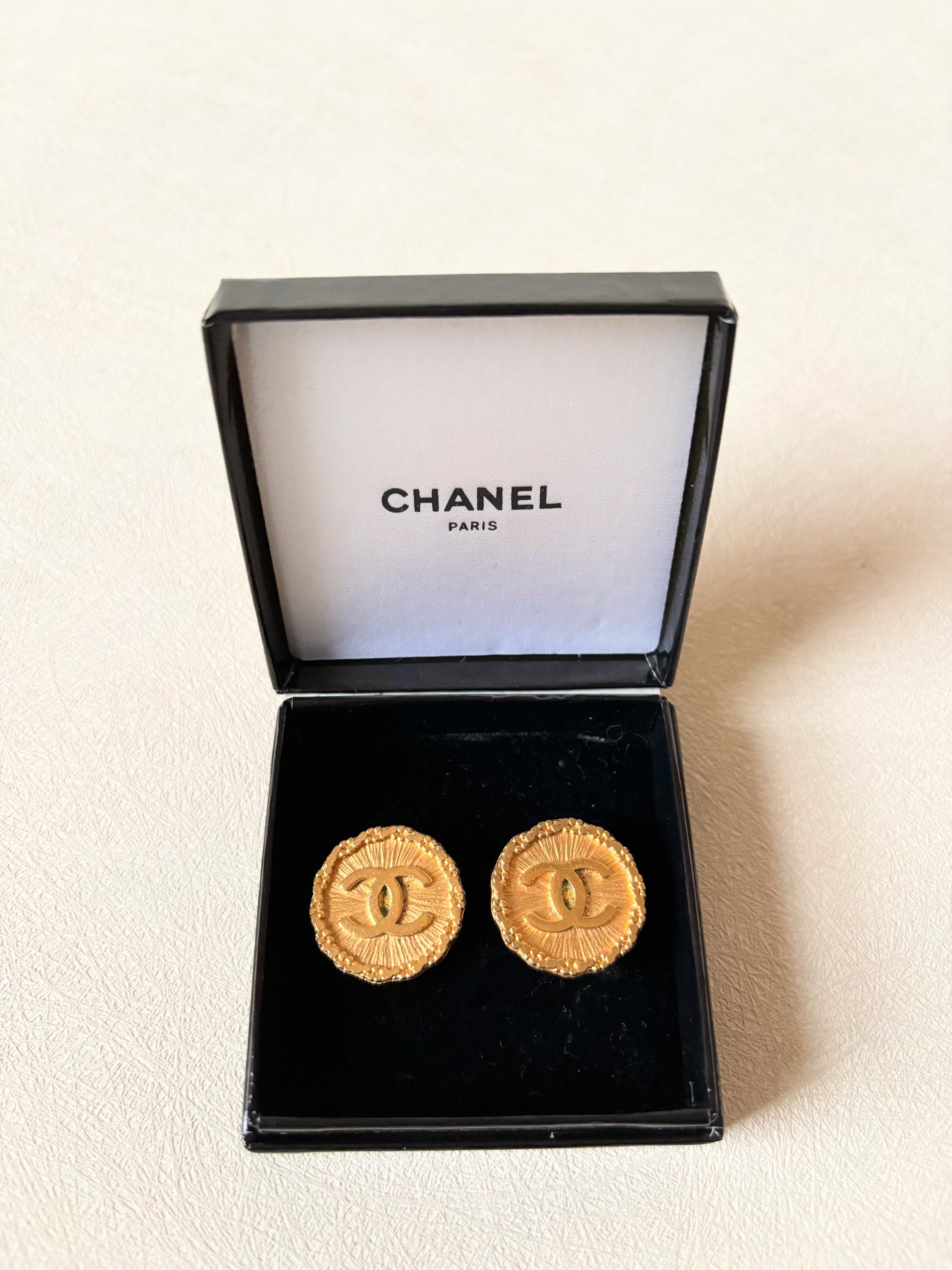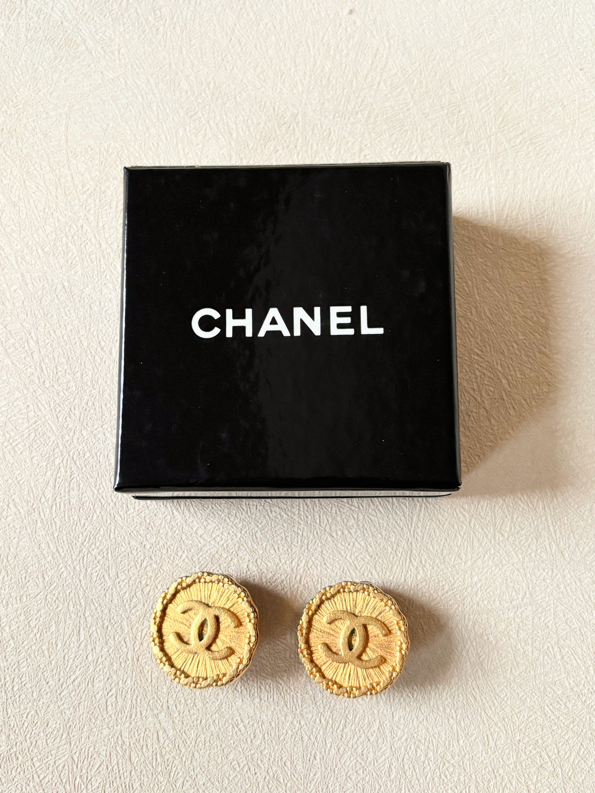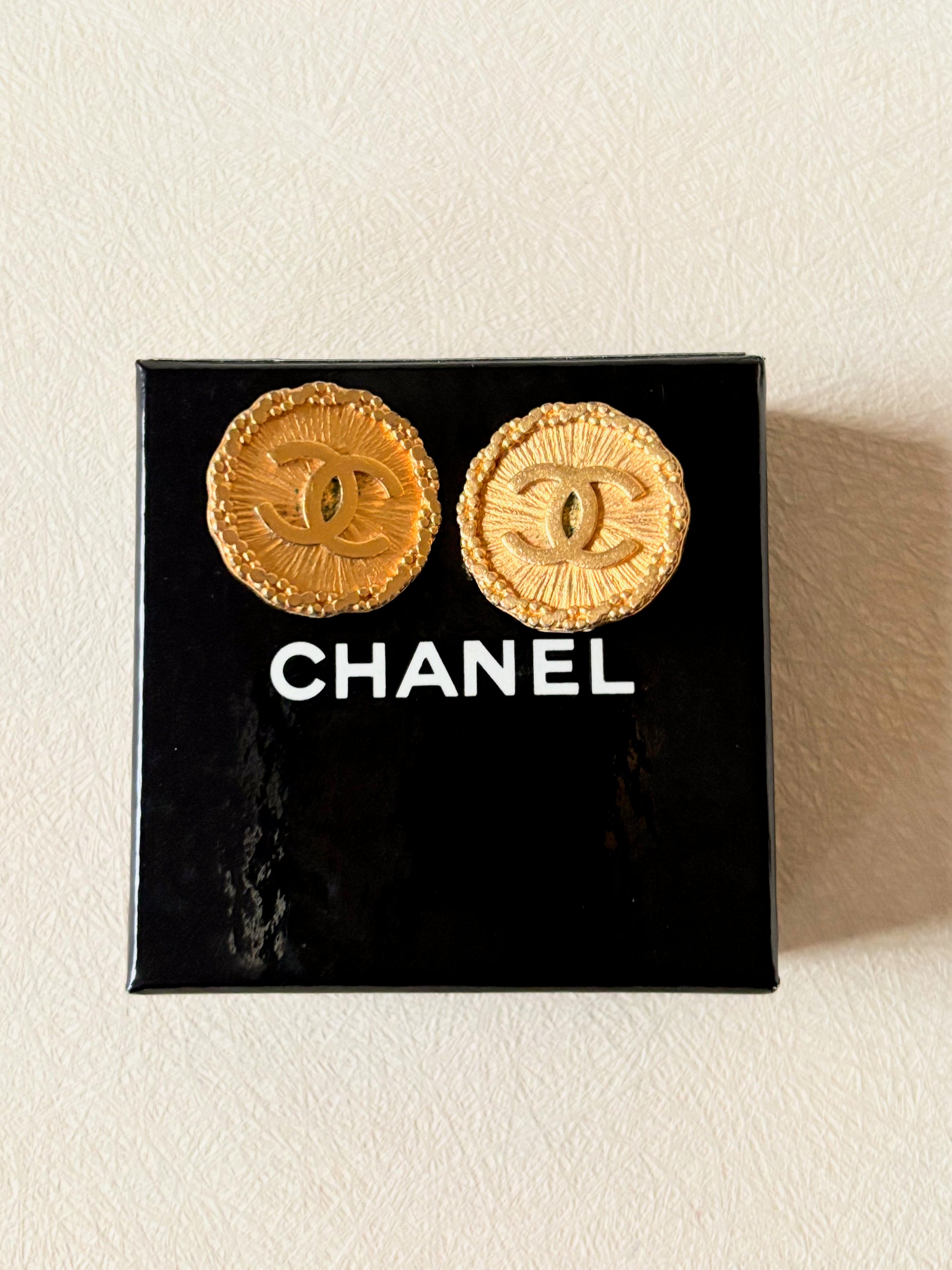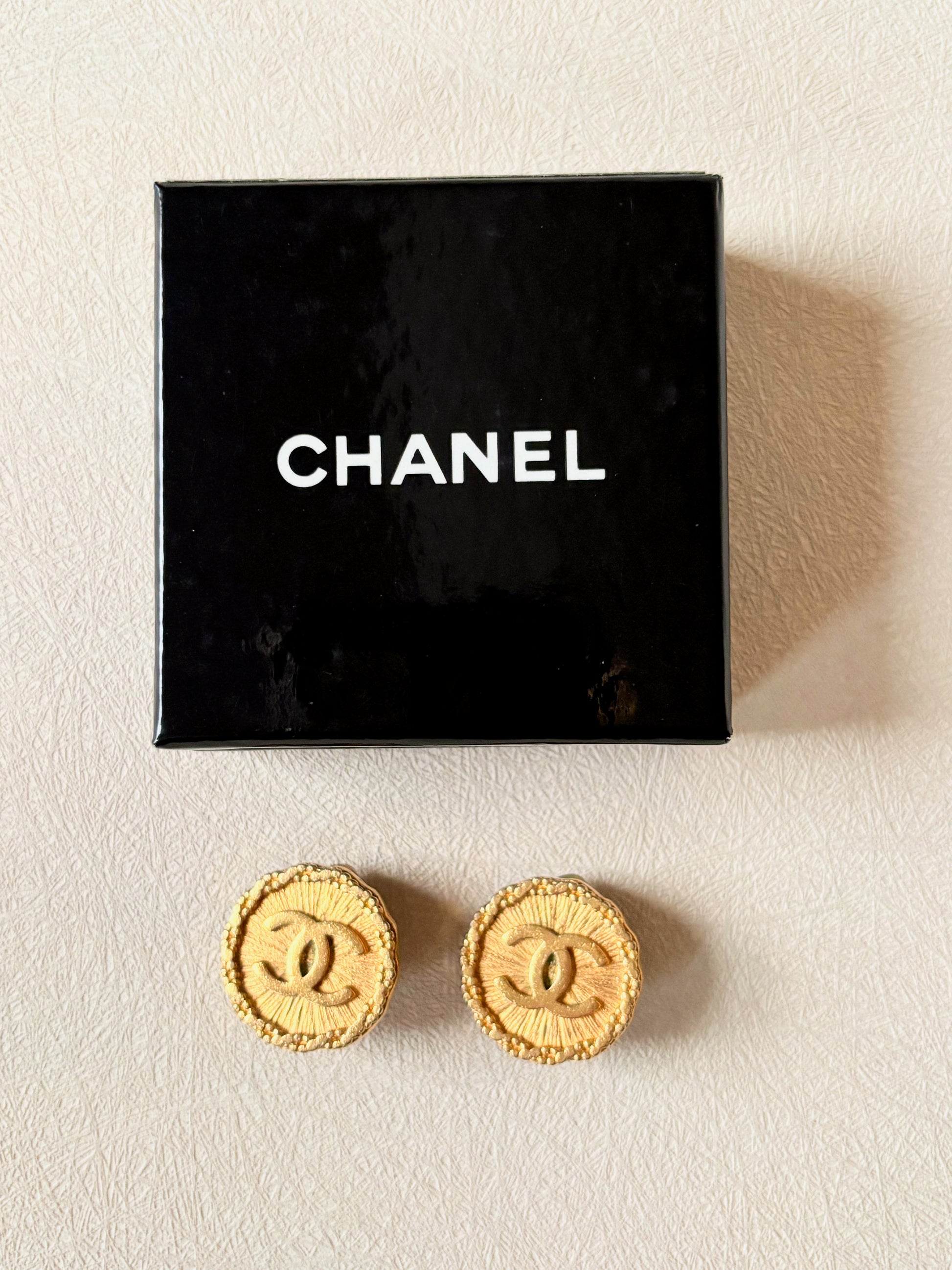 * Métal doré, logo CC entrelacé, bordure au motif de mailles entrelacées