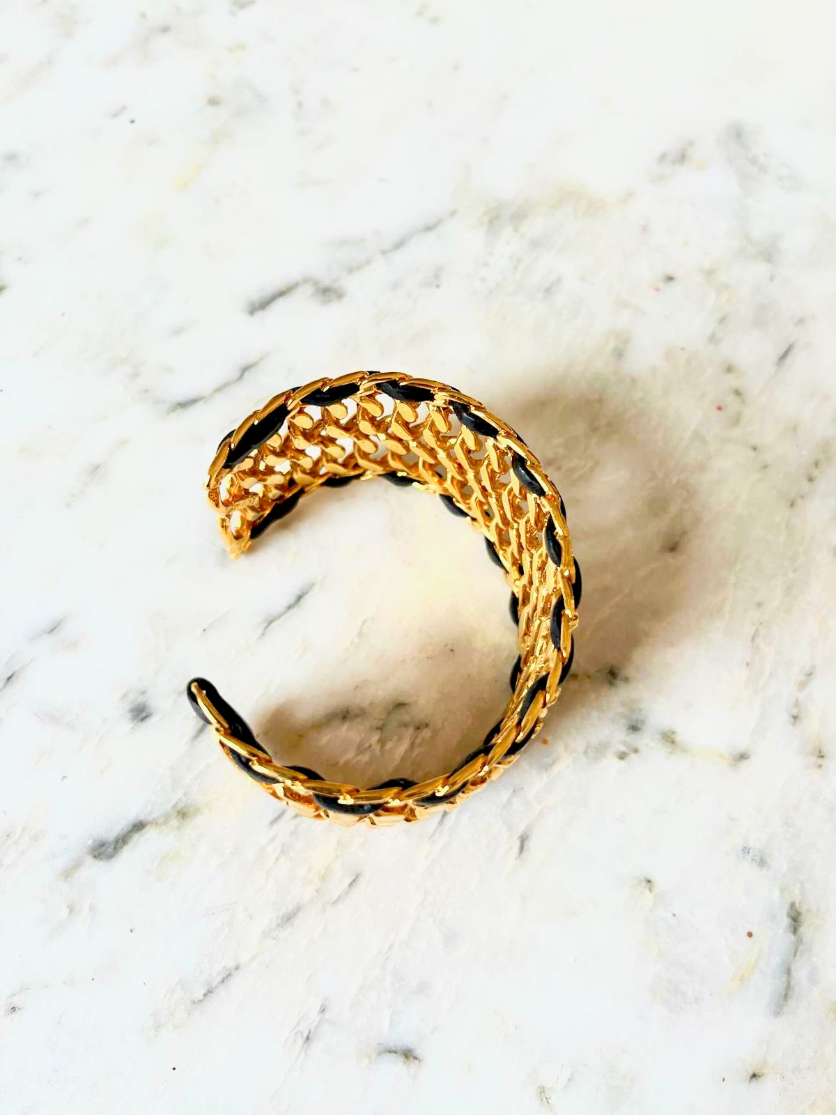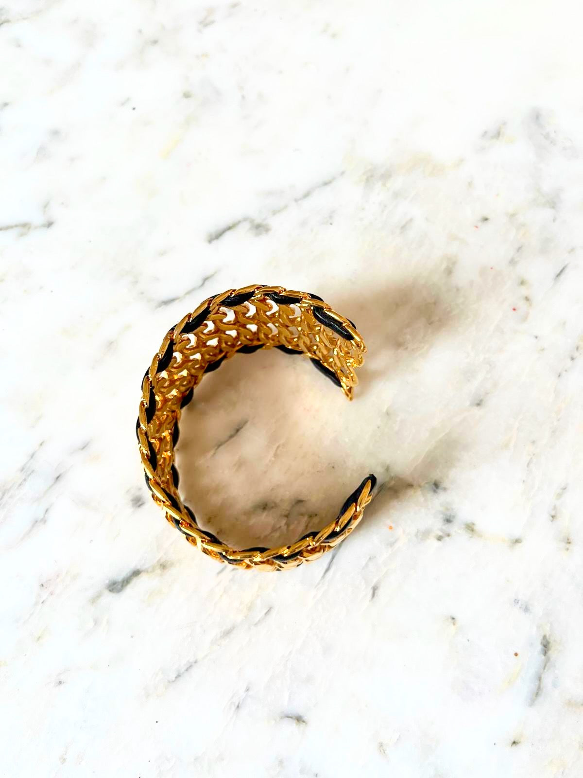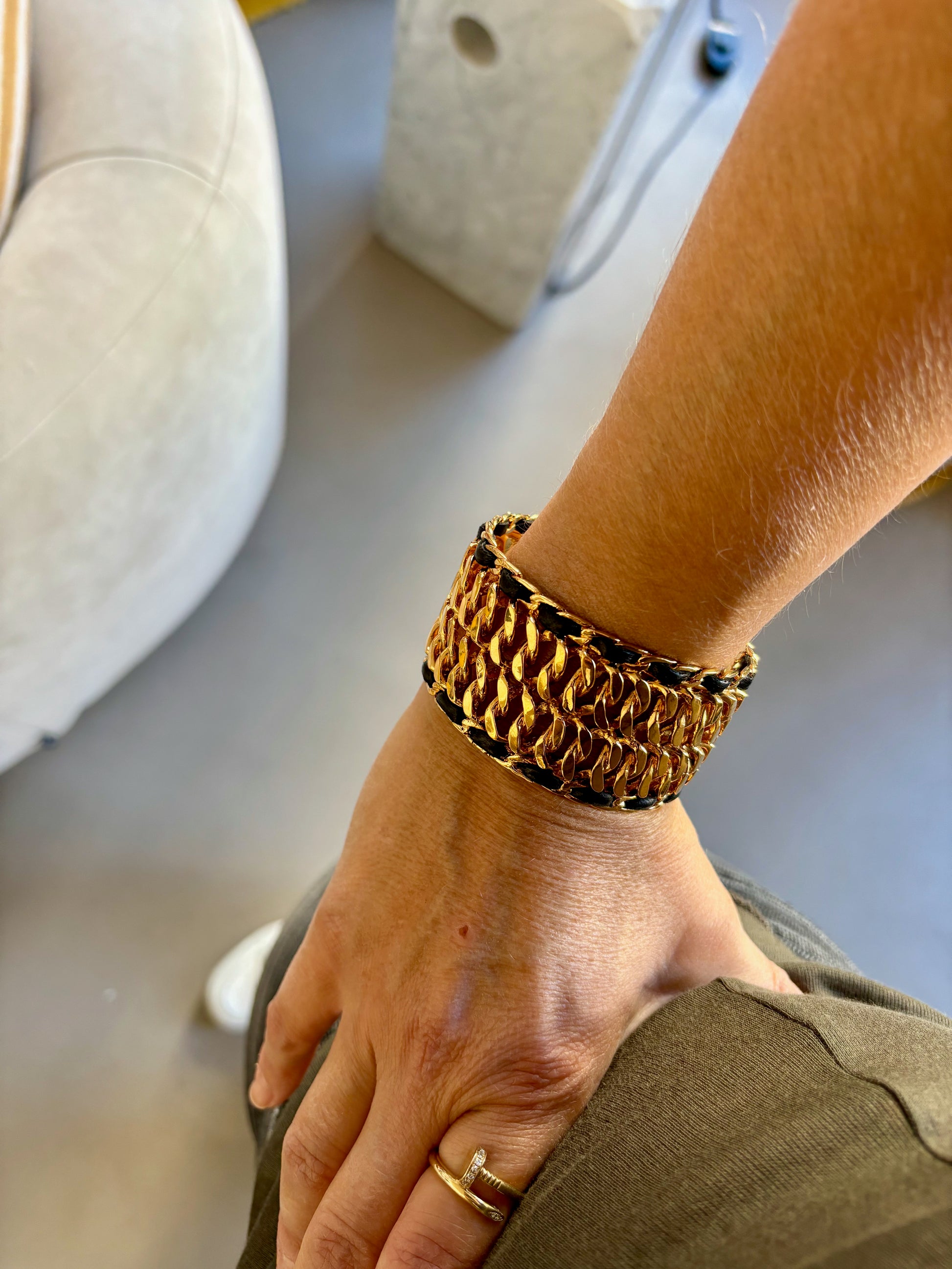 * En métal plaqué or et lien en cuir entrelacé aux 2 extrêmités