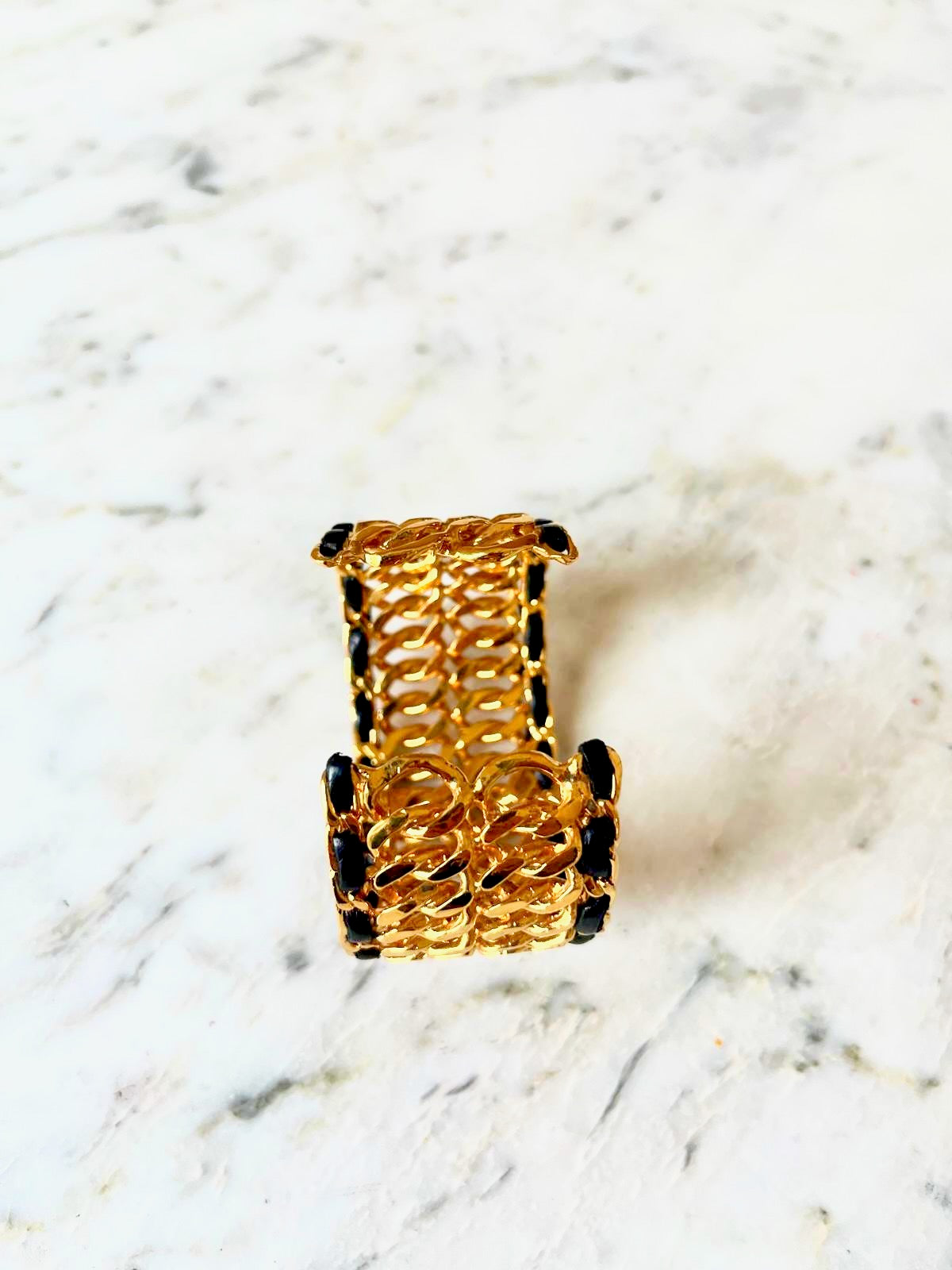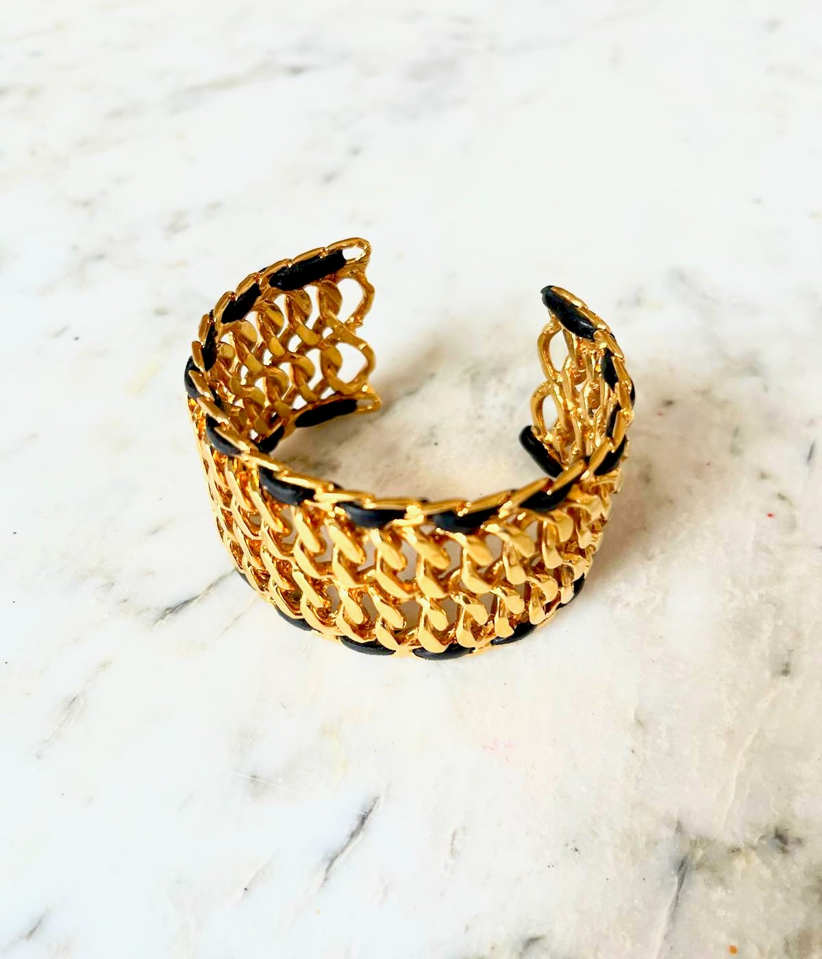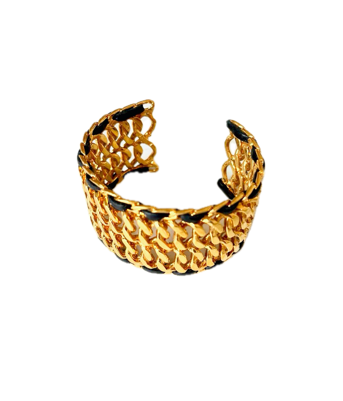 * En métal plaqué or et lien en cuir entrelacé aux 2 extrêmités