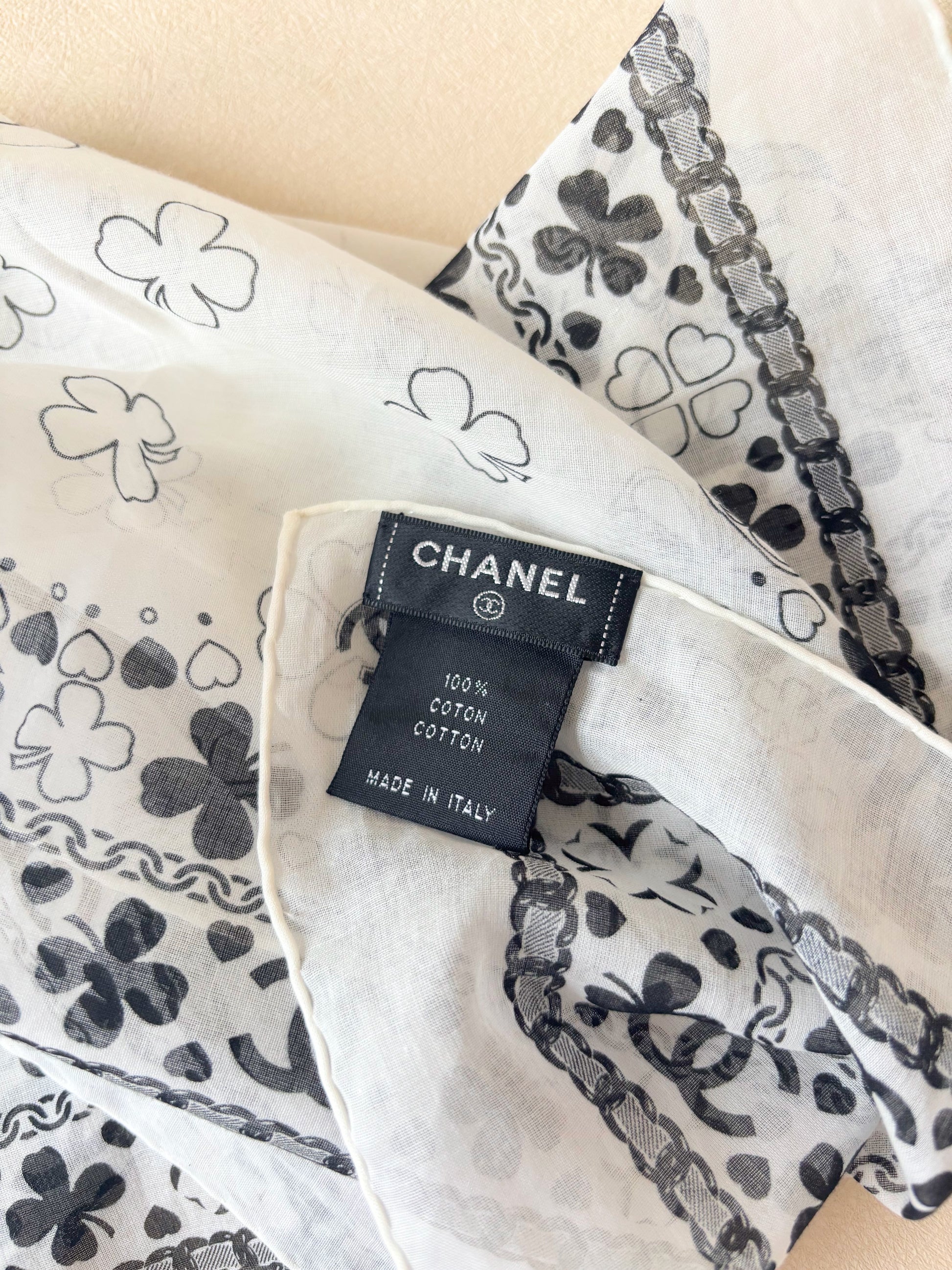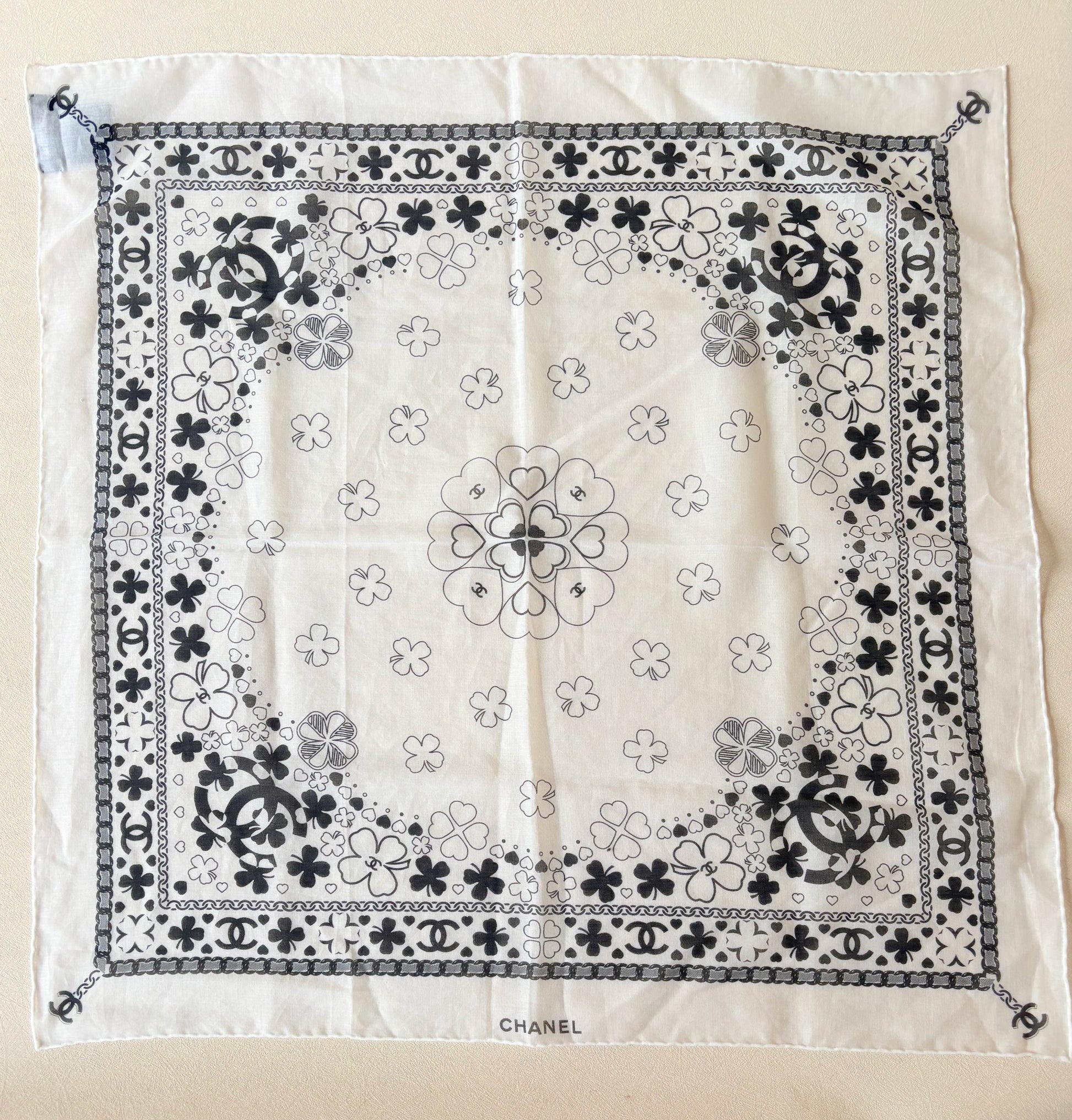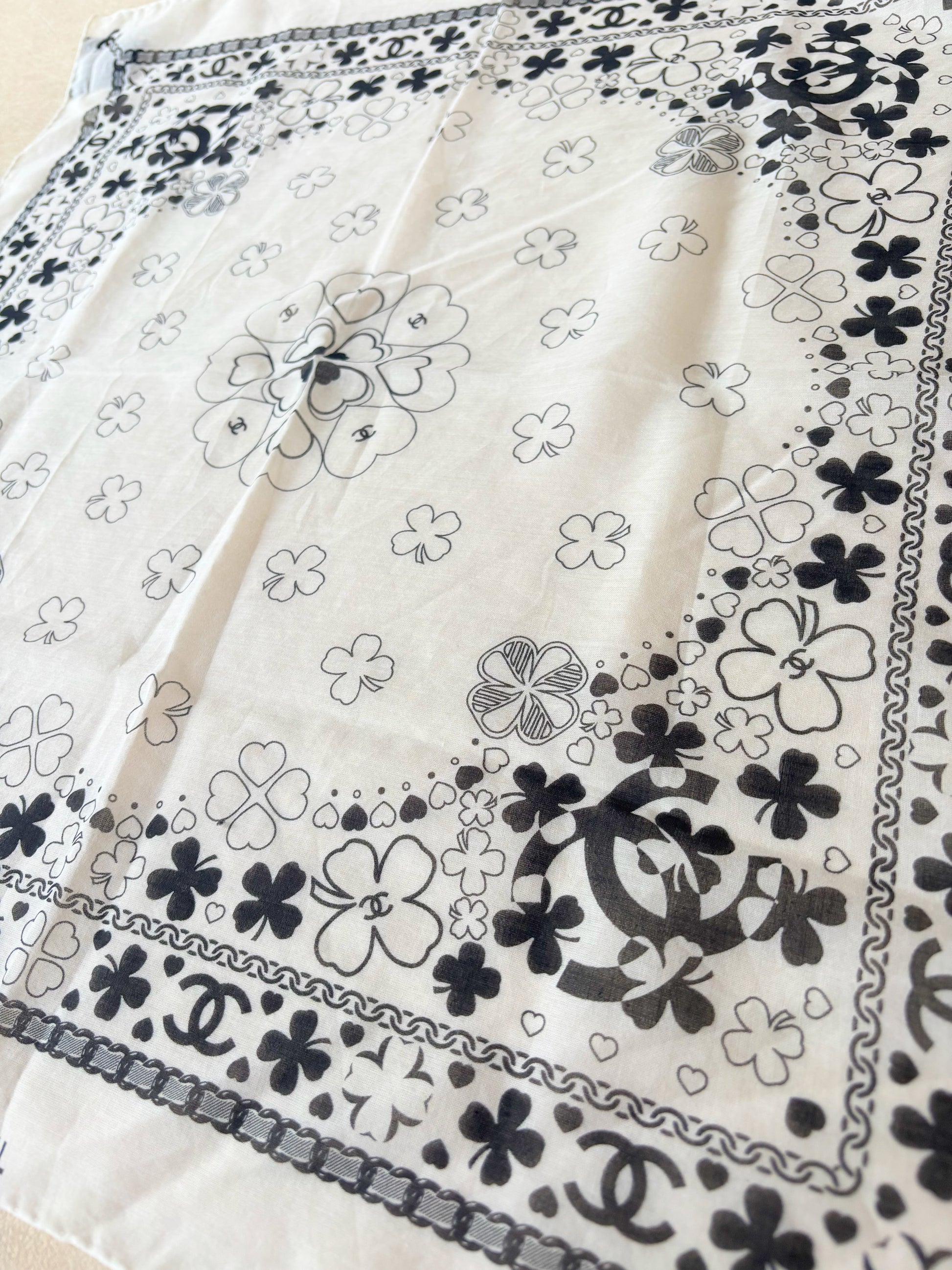 * Imprimé bandana : trèfles, coeurs et logo CC noirs contrastant sur fond blanc