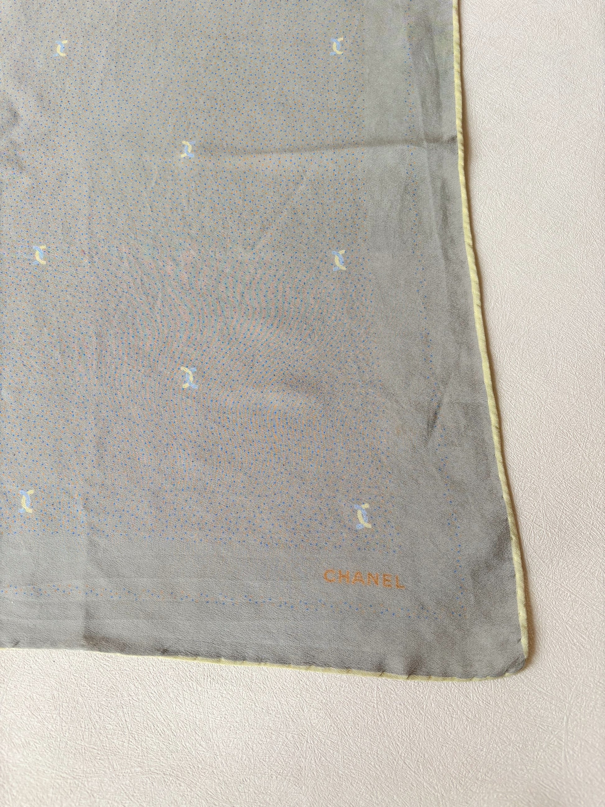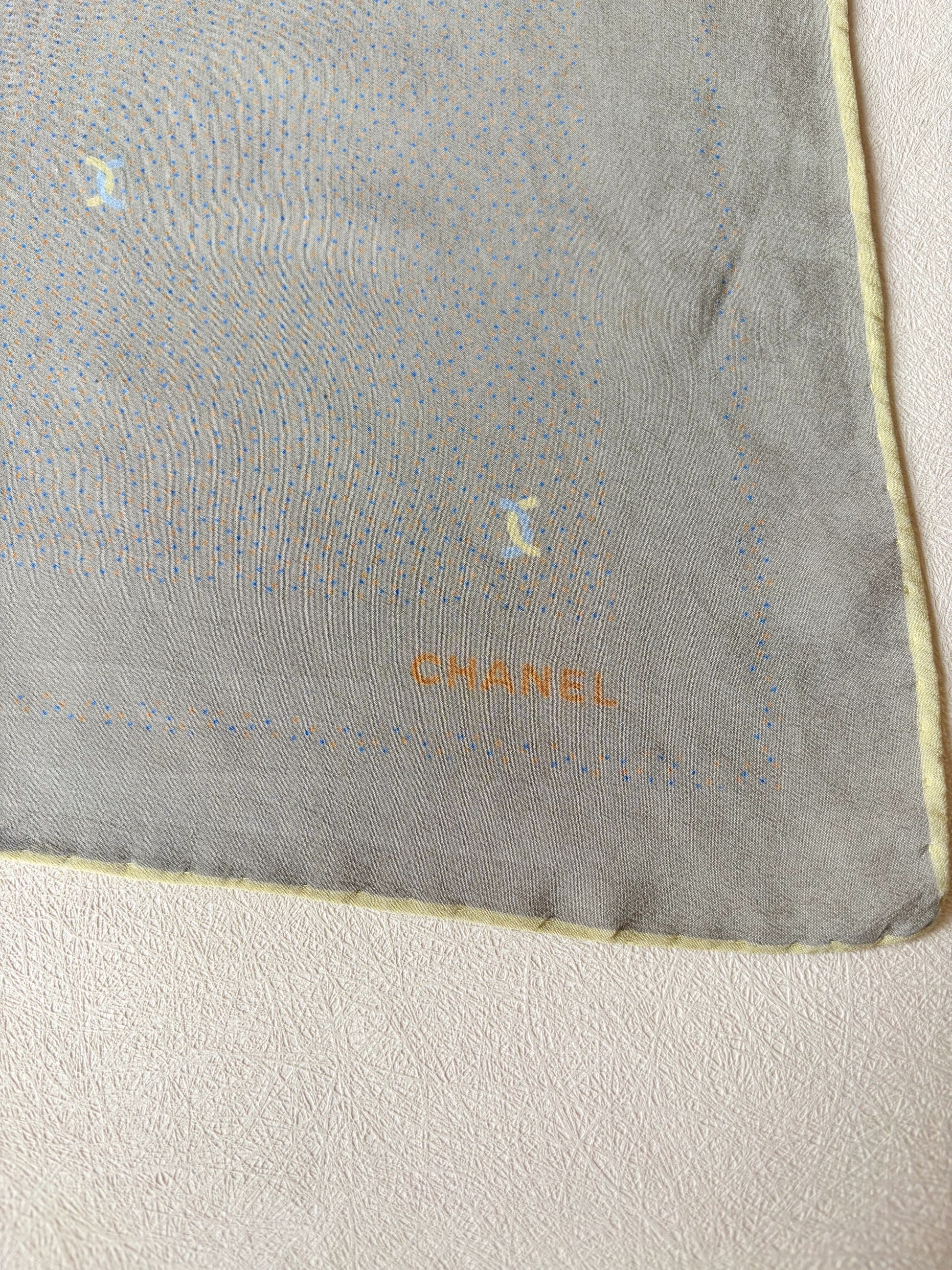 * Dans les tons pastel : motifs CC bleu et jaune entrelacés sur un fond vert-de-gris