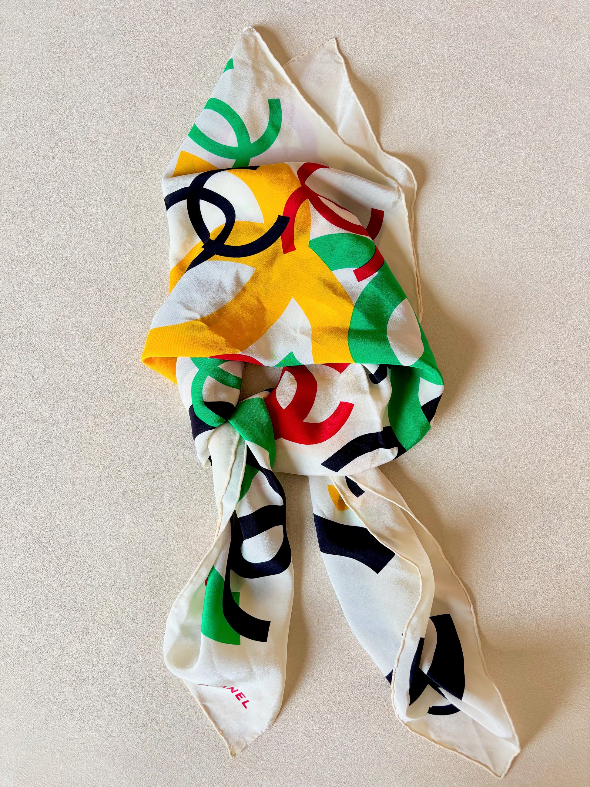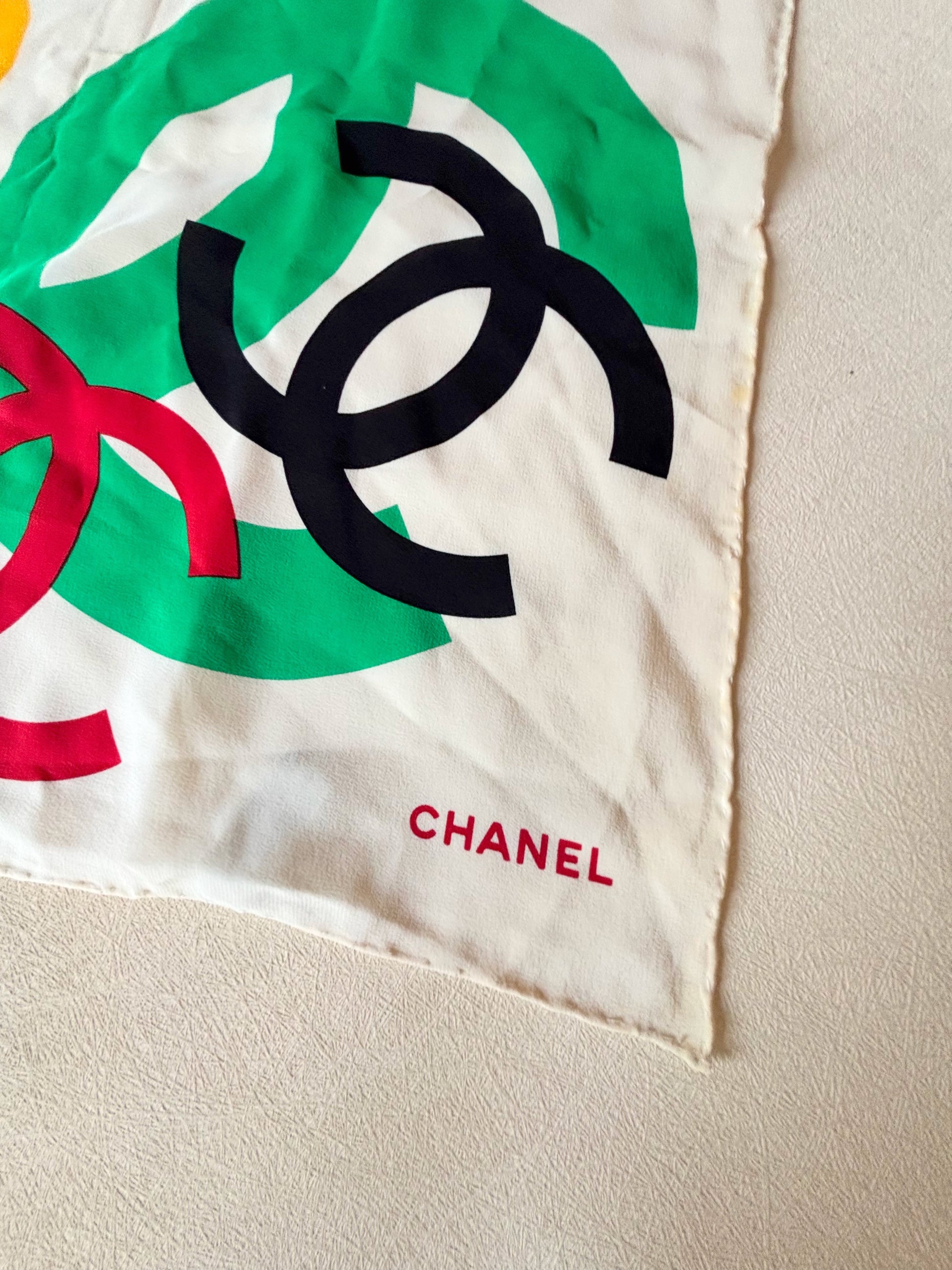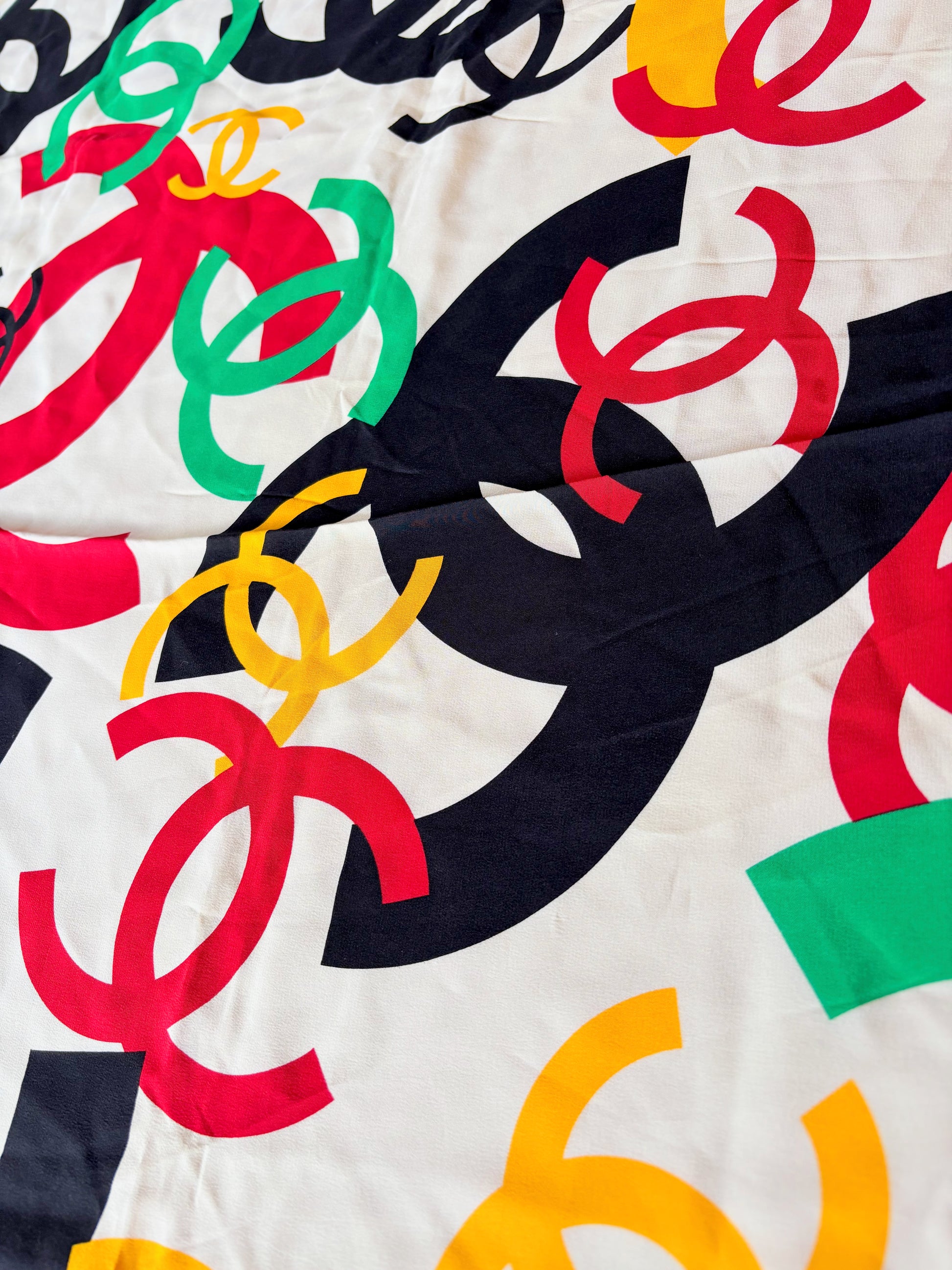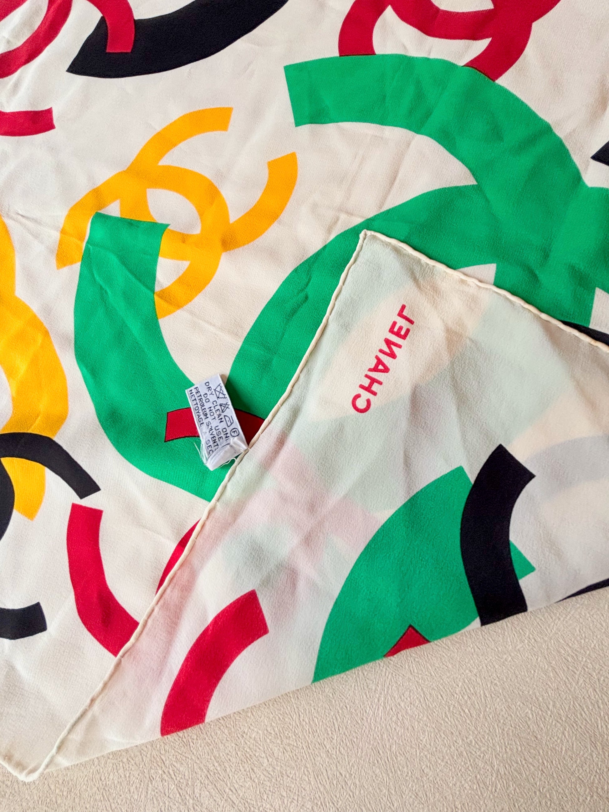 * Motifs logo CC Chanel multicolores contrastants sur fond écru