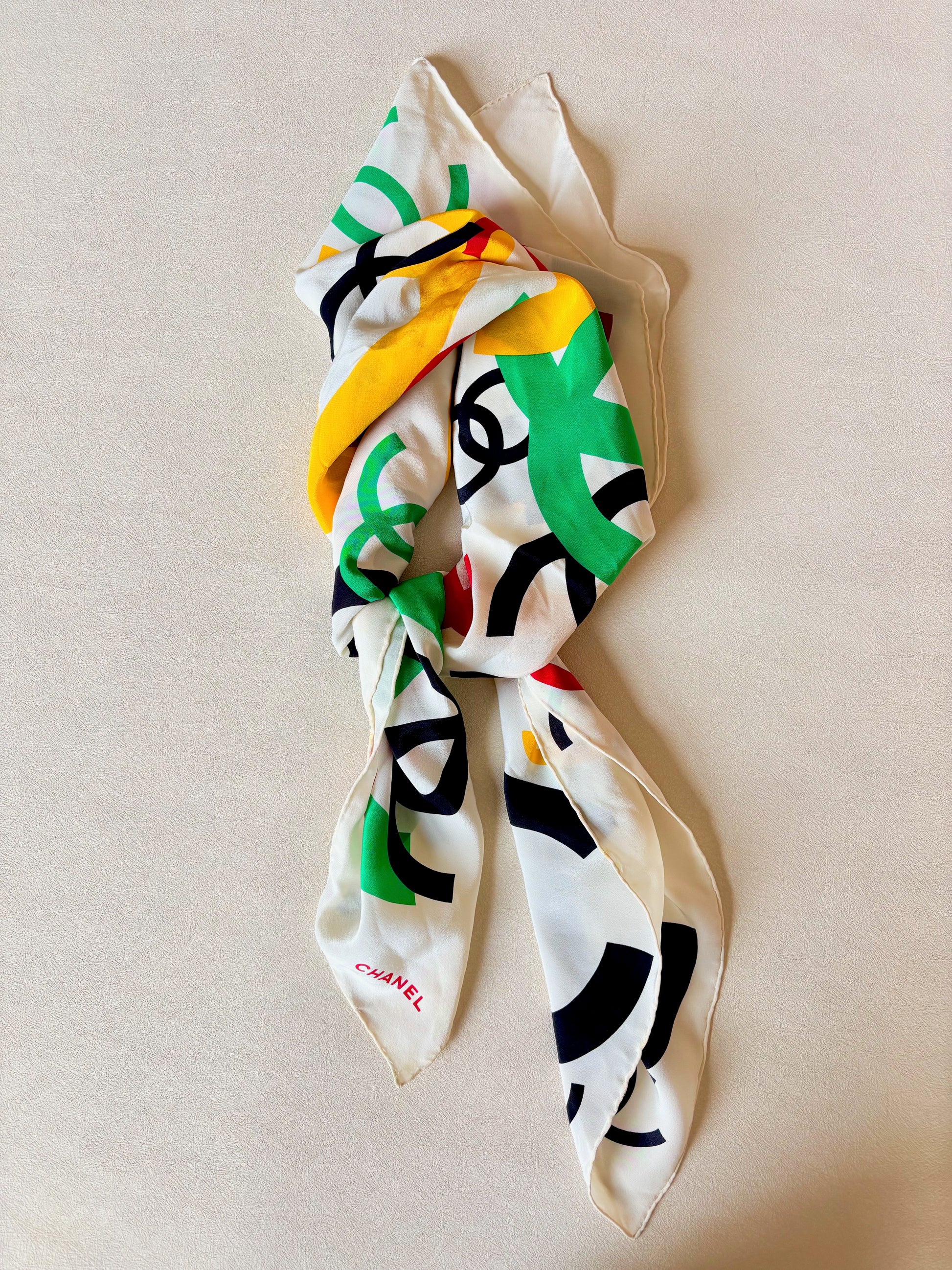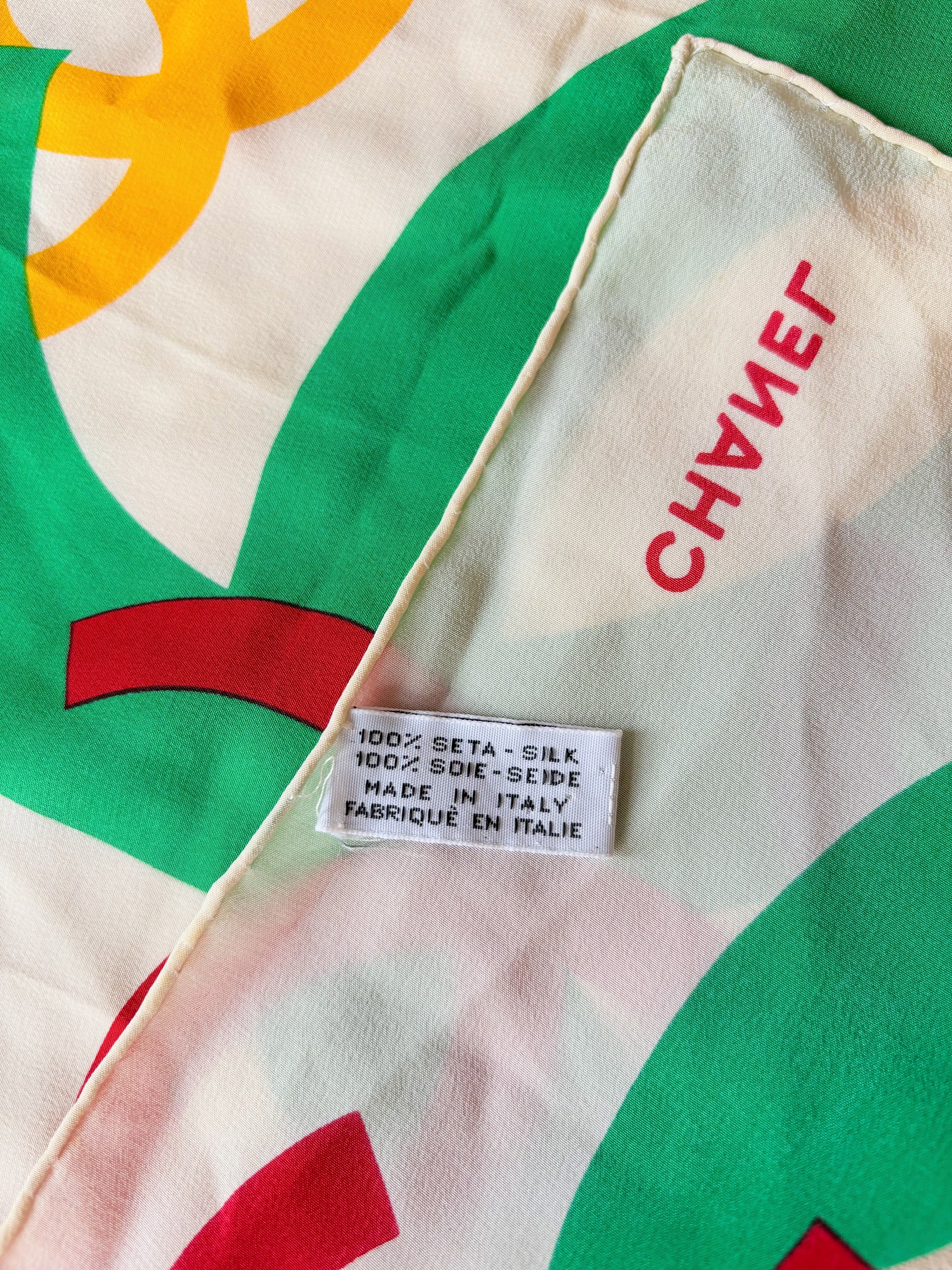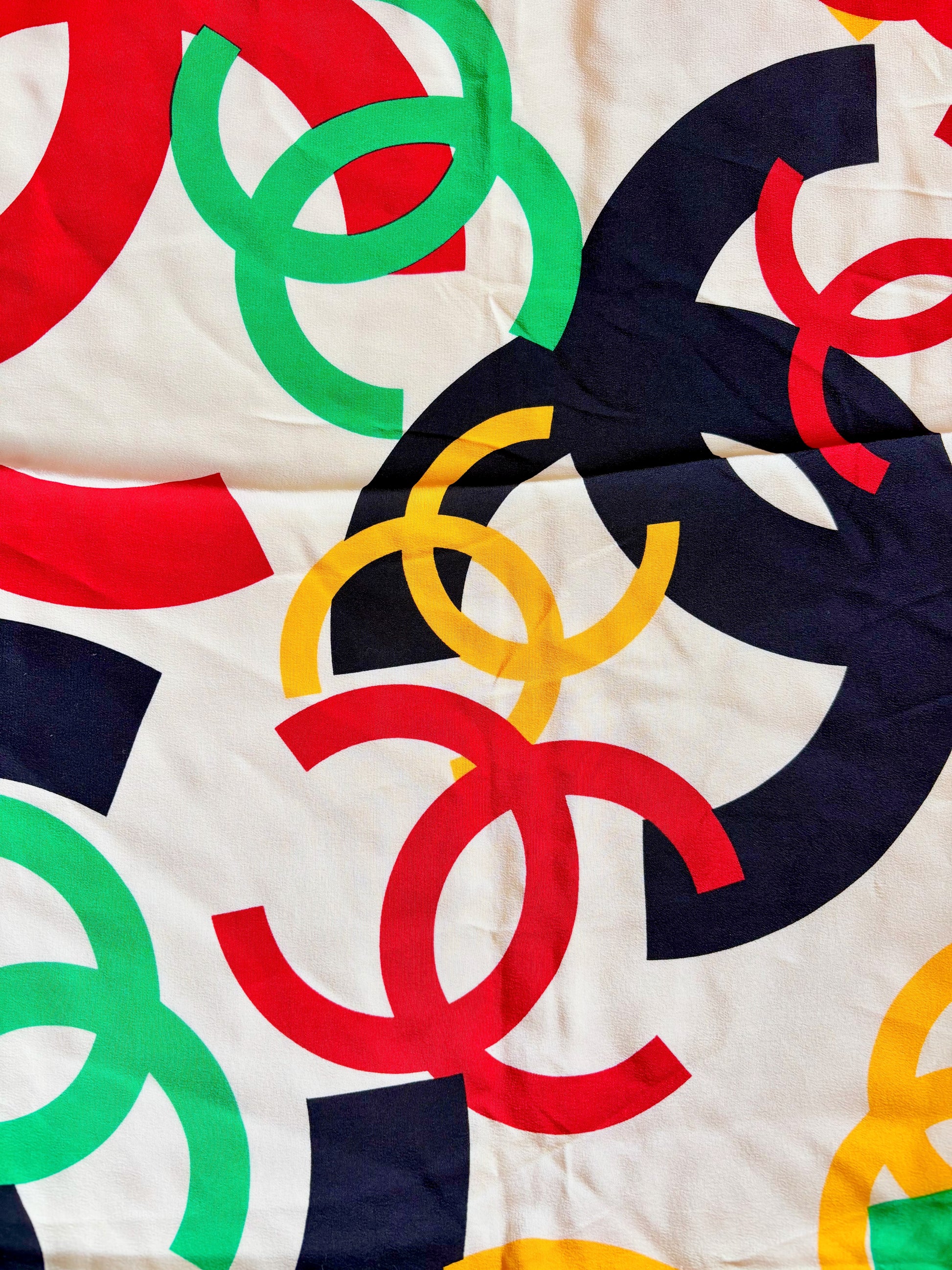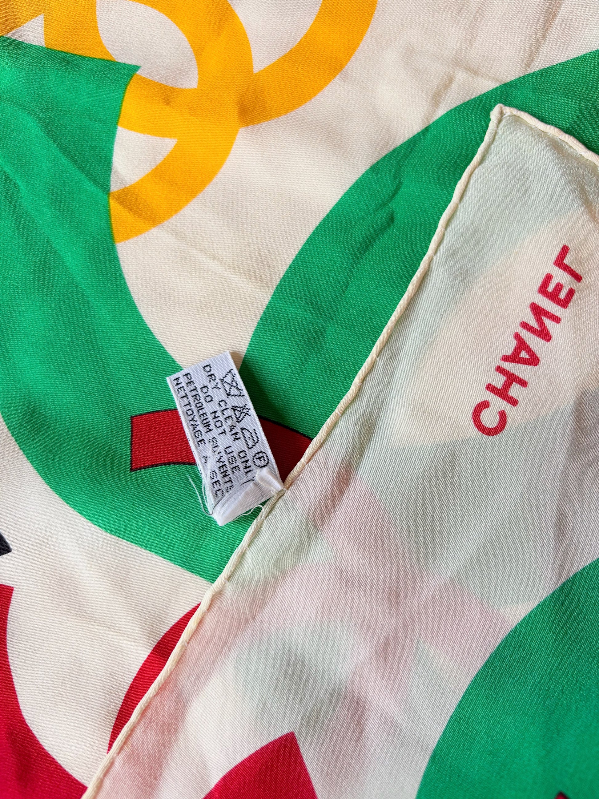 * Motifs logo CC Chanel multicolores contrastants sur fond écru