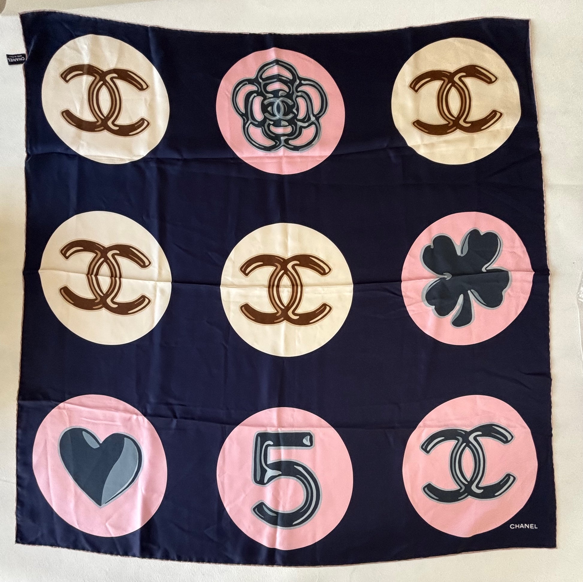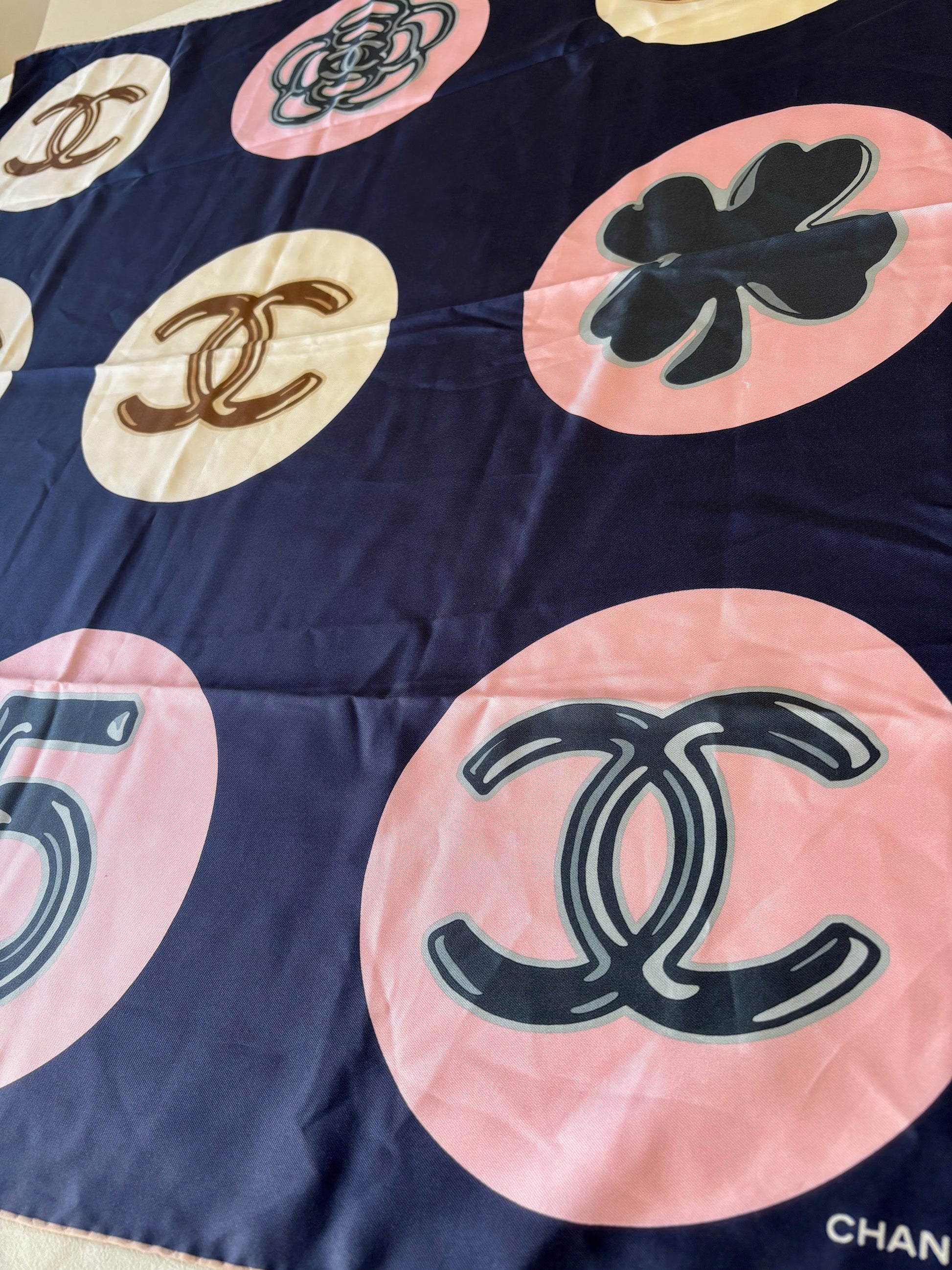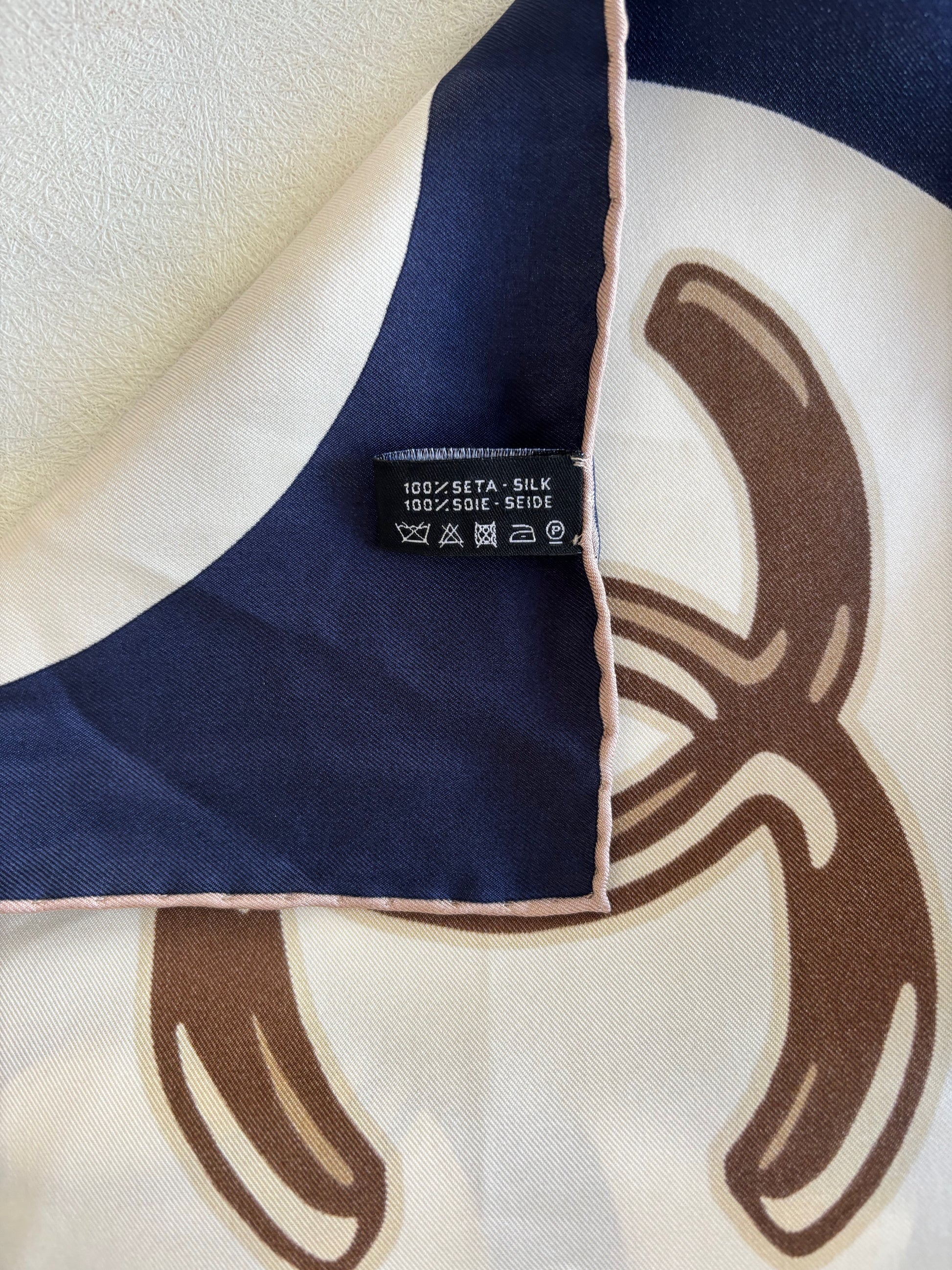 * Motifs circulaires à l'effigie des emblèmes de la marquesur fond bleu marine