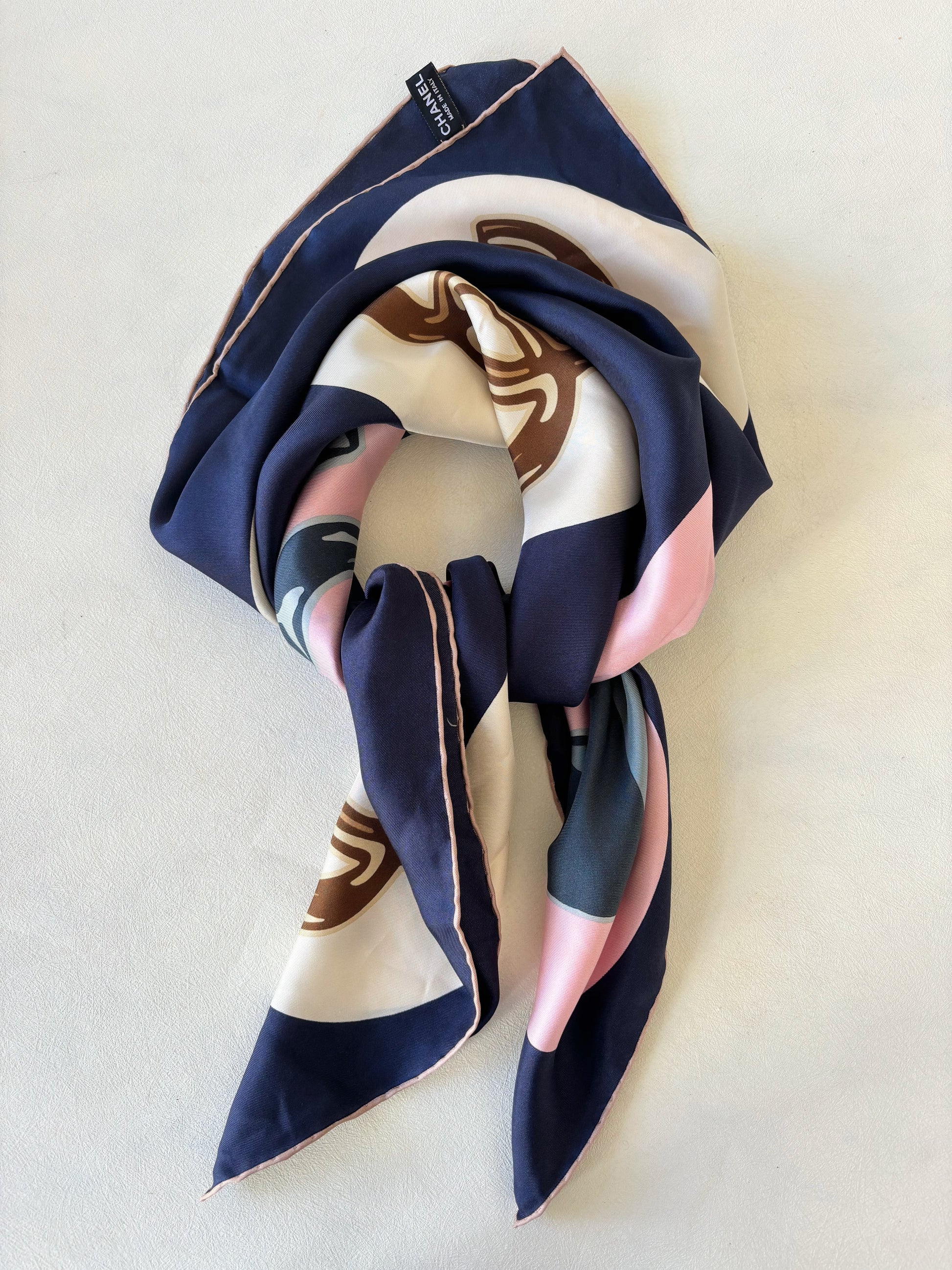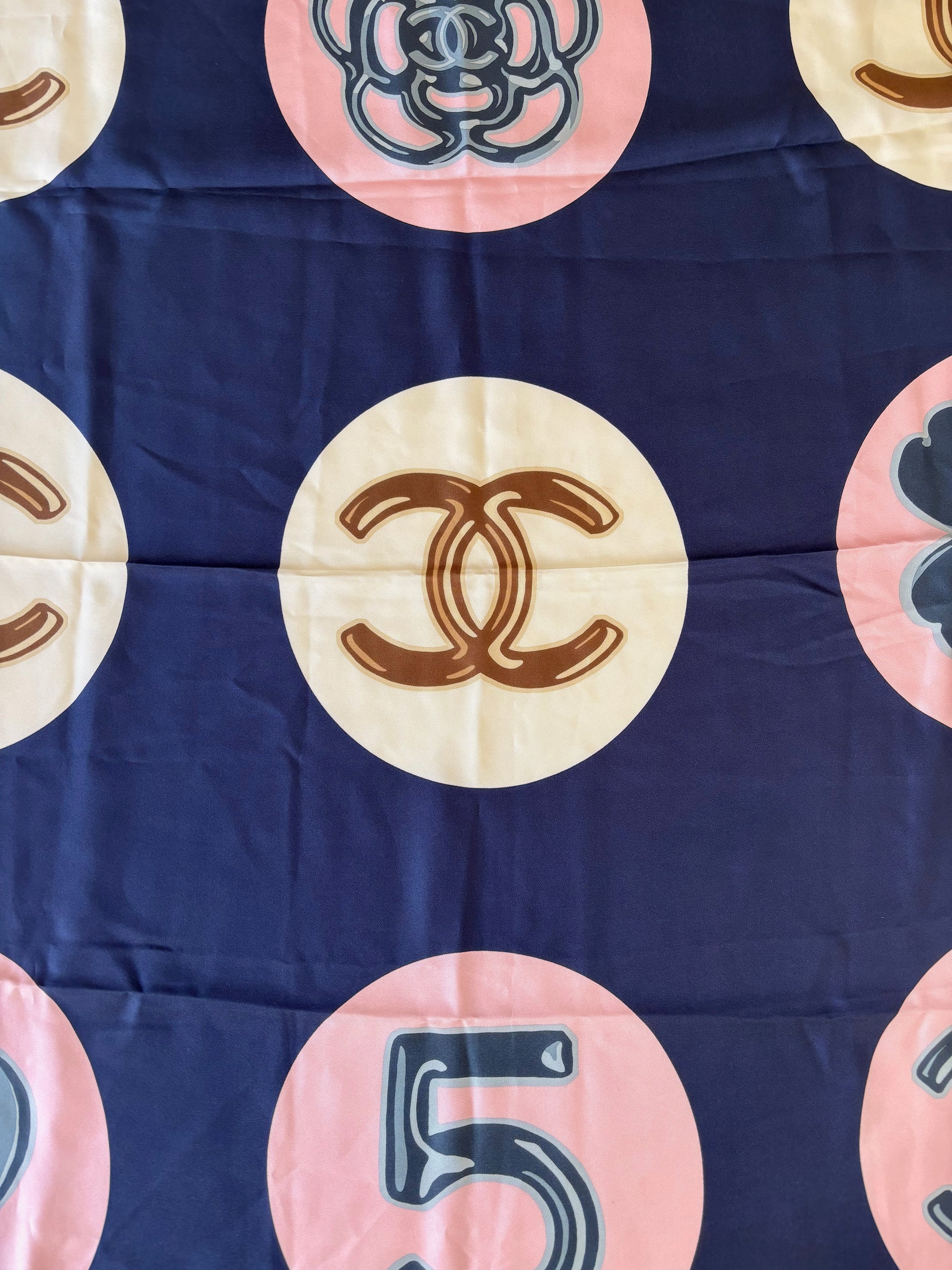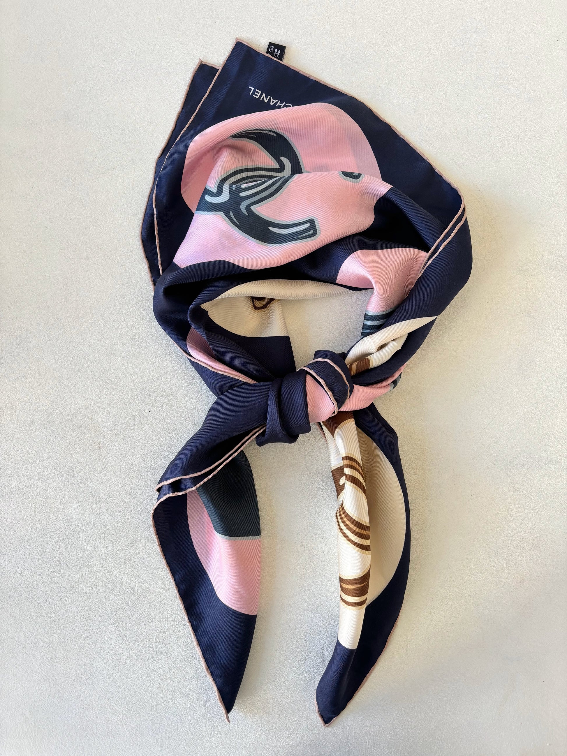 * Motifs circulaires à l'effigie des emblèmes de la marquesur fond bleu marine