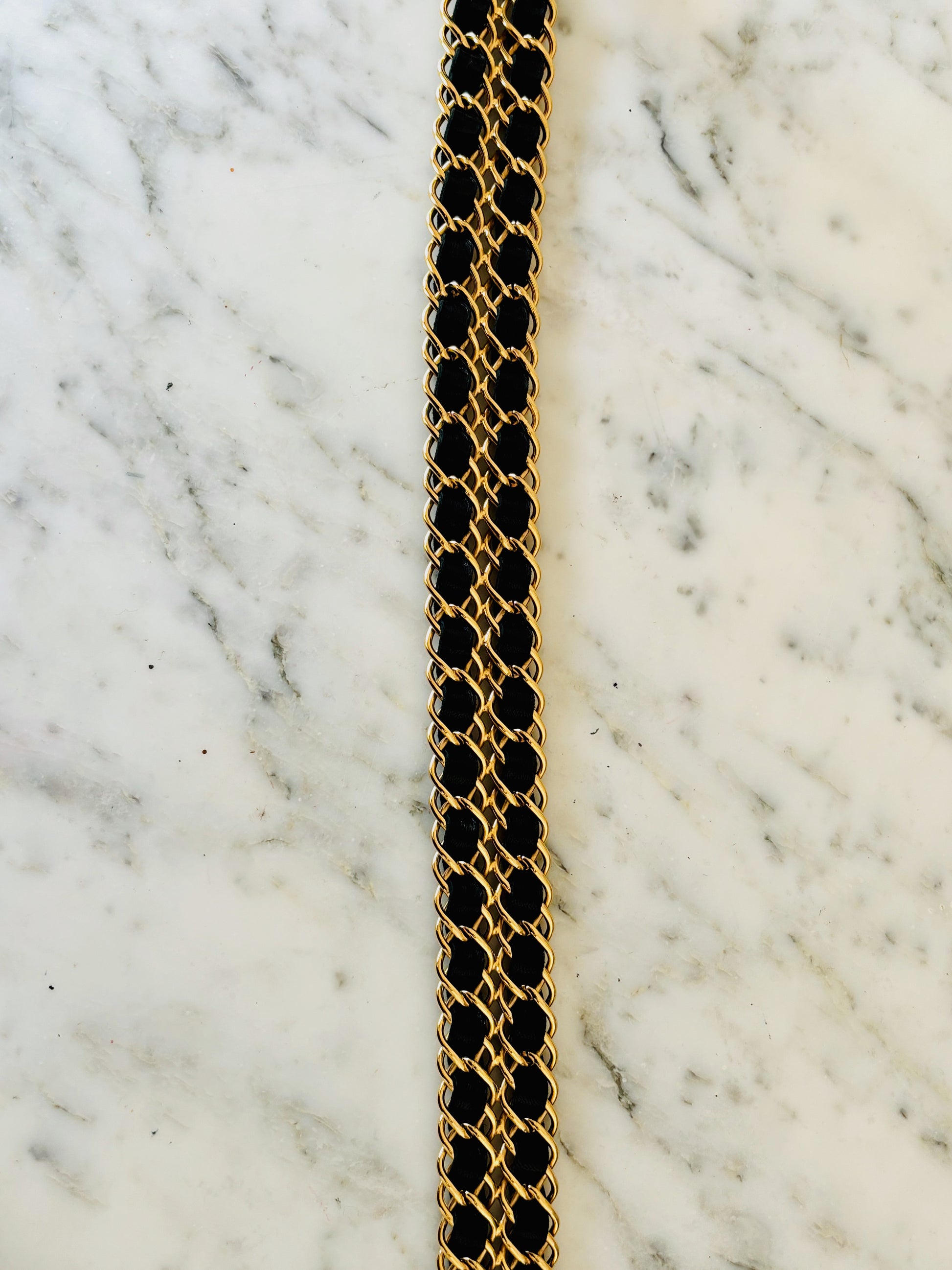 * À deux rangs en chaîne maillon en métal doré et cuir noir