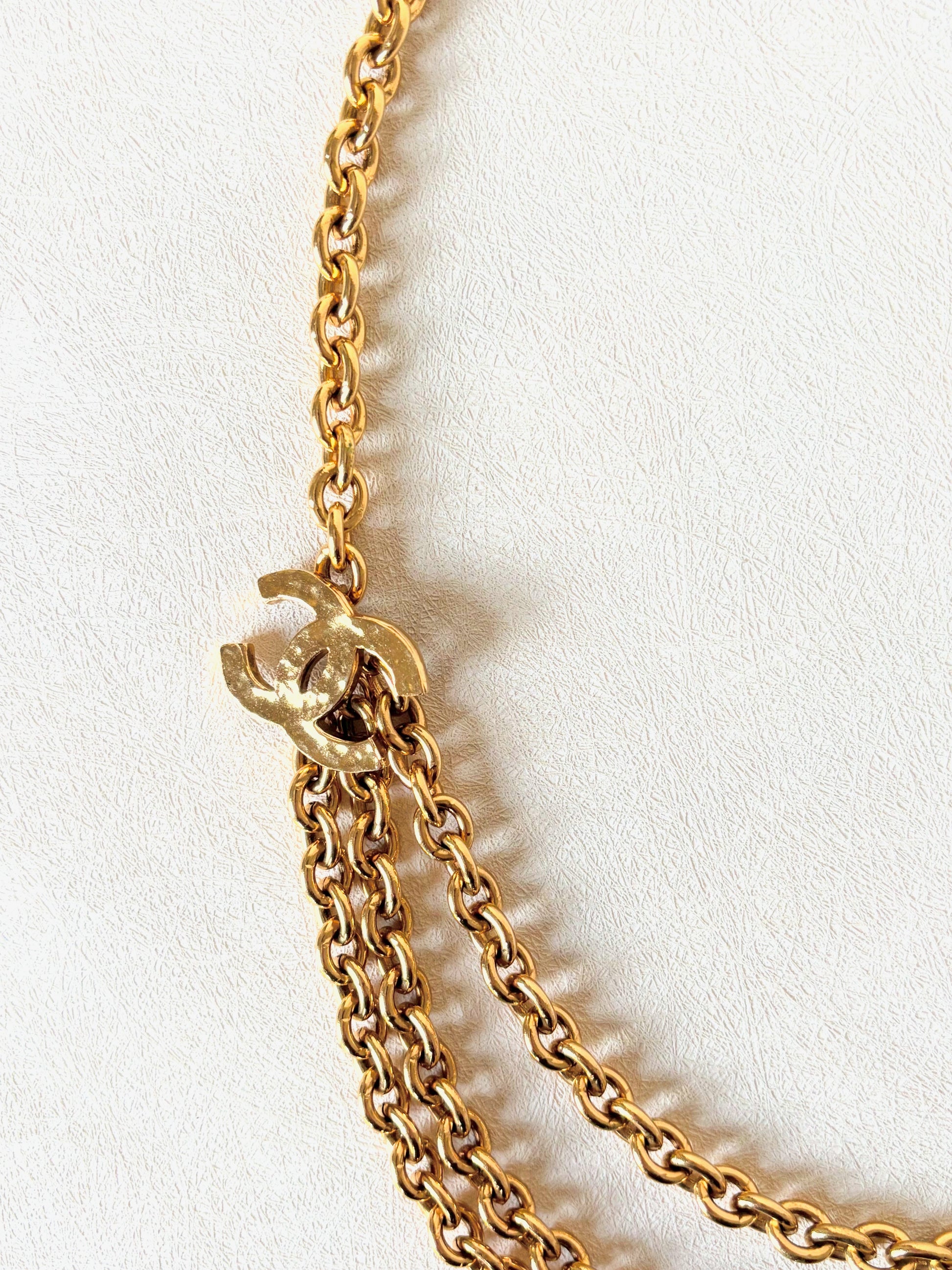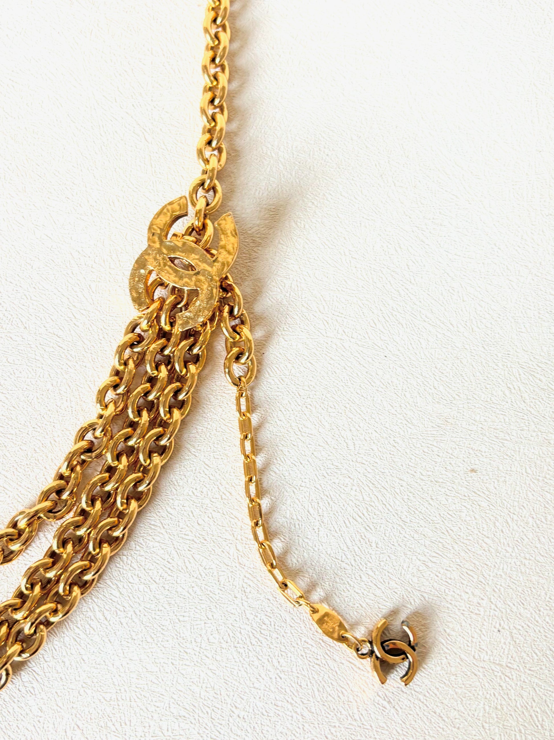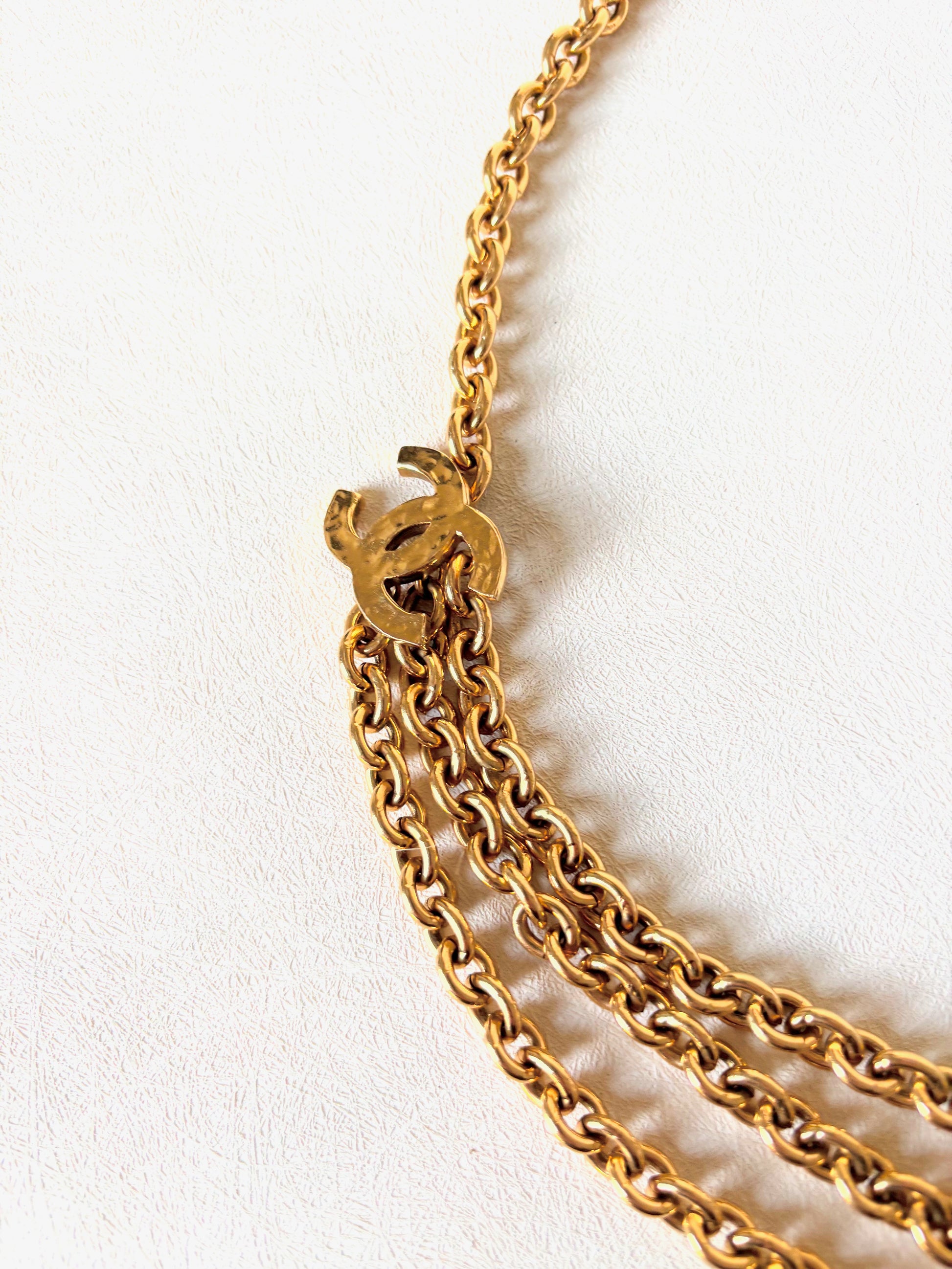 * Chaîne multi-rangs en métal doré siglé