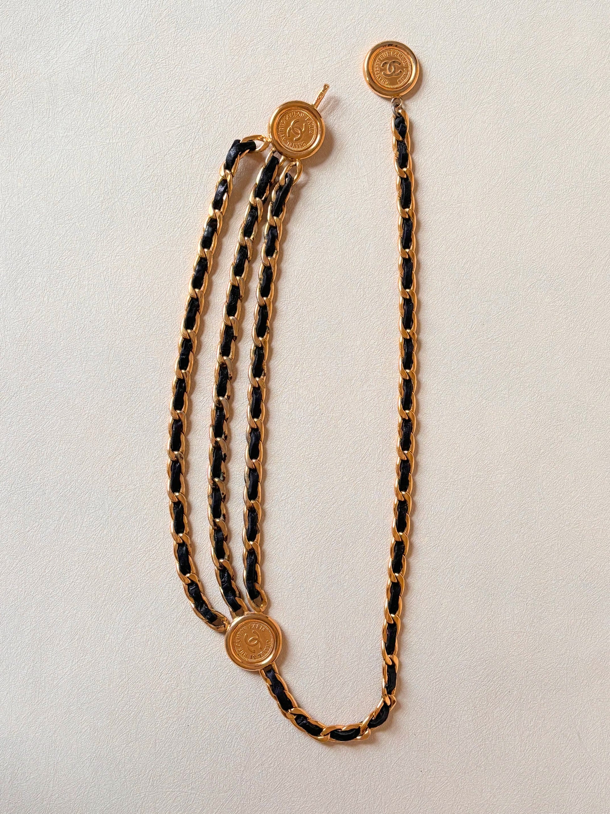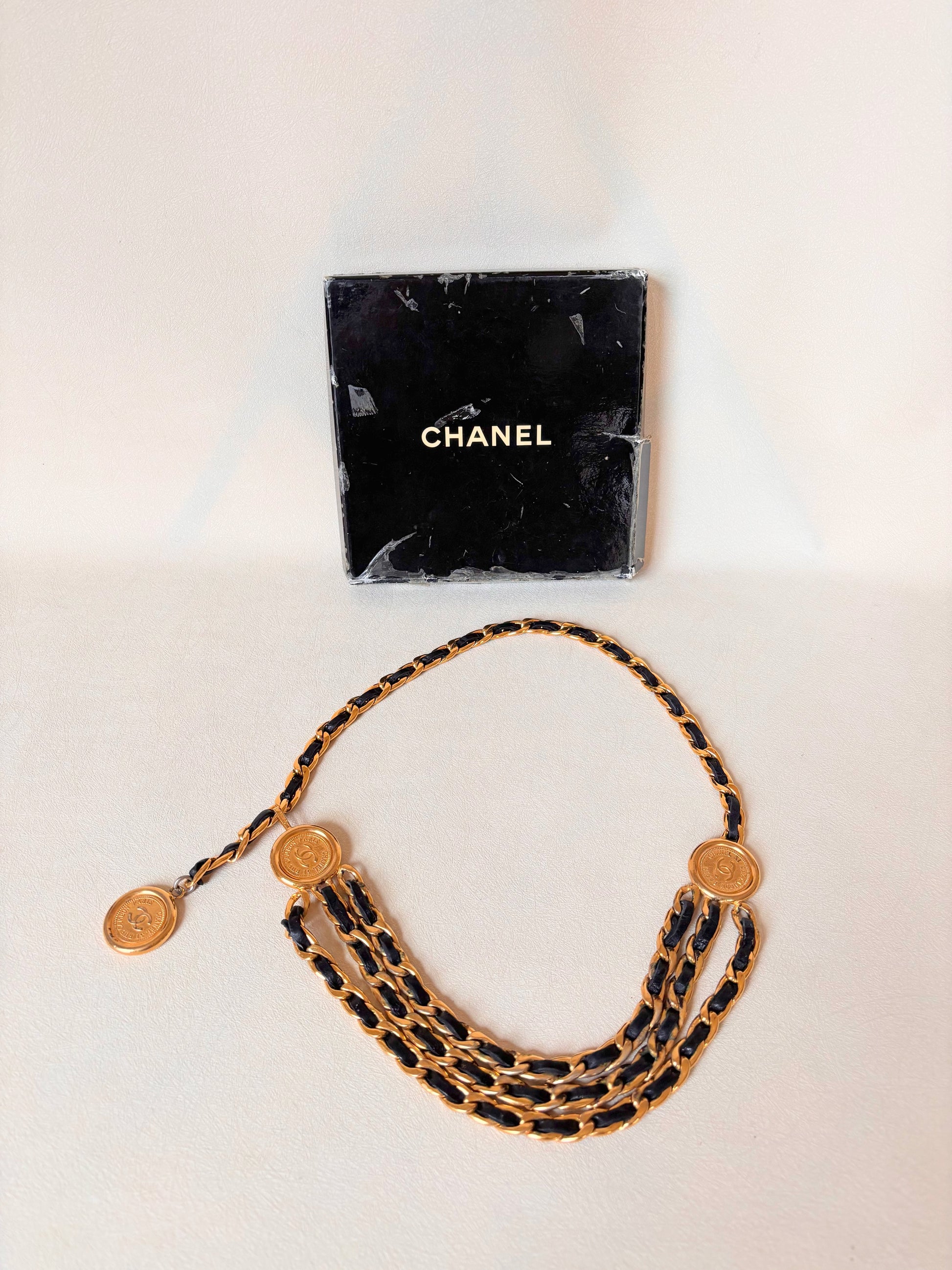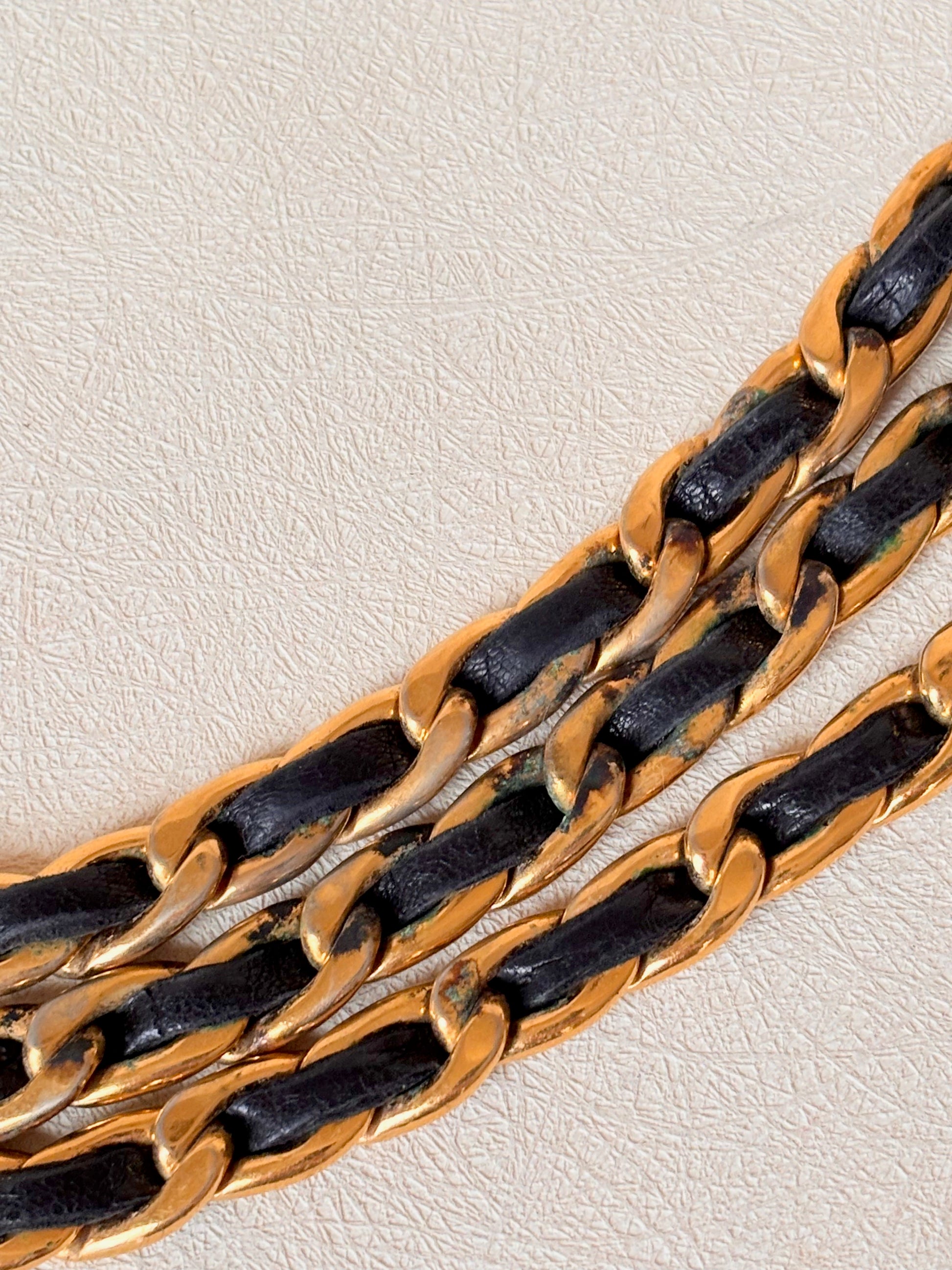 * Ceinture chaîne CHANEL en métal doré et cuir noir