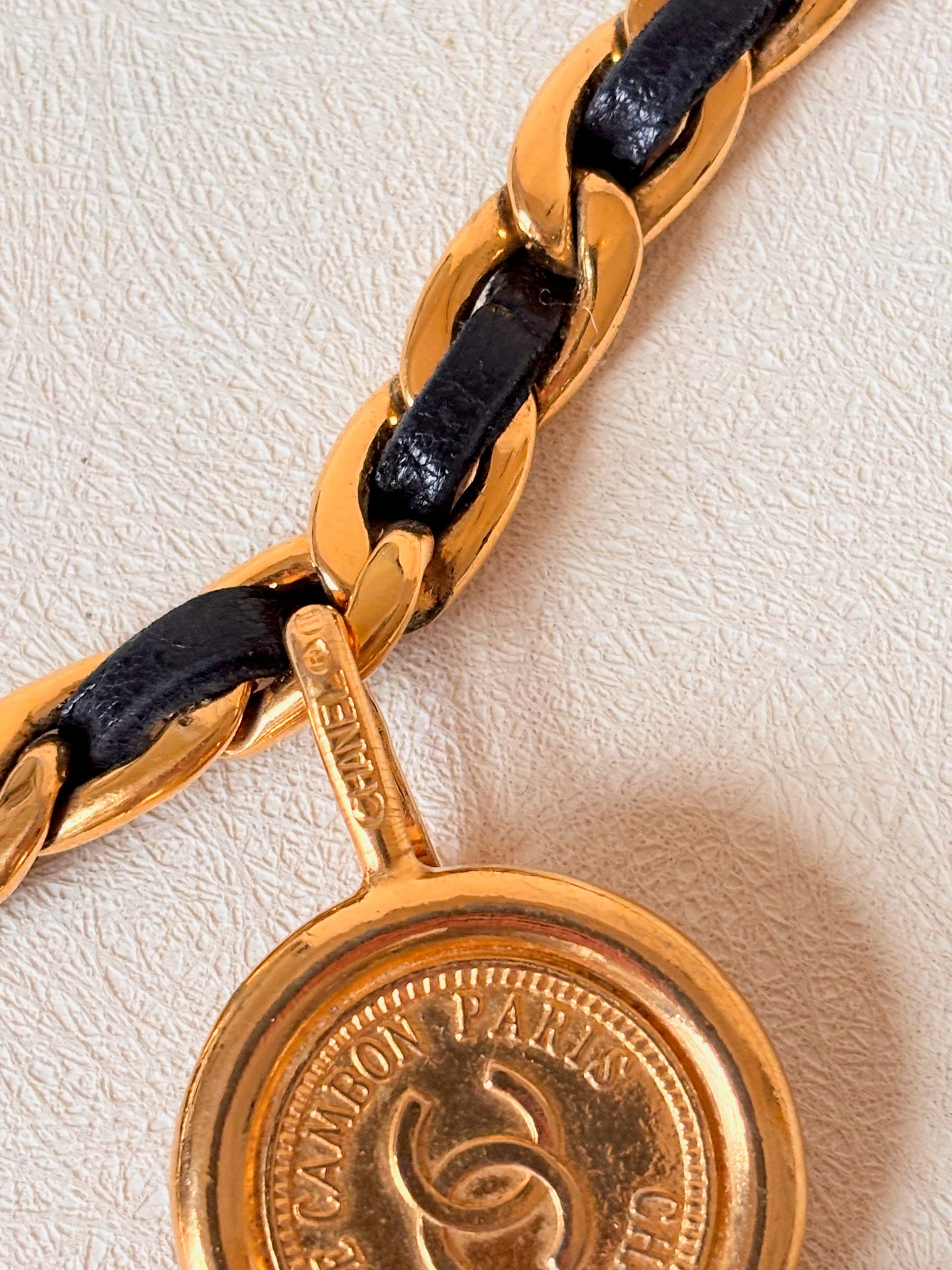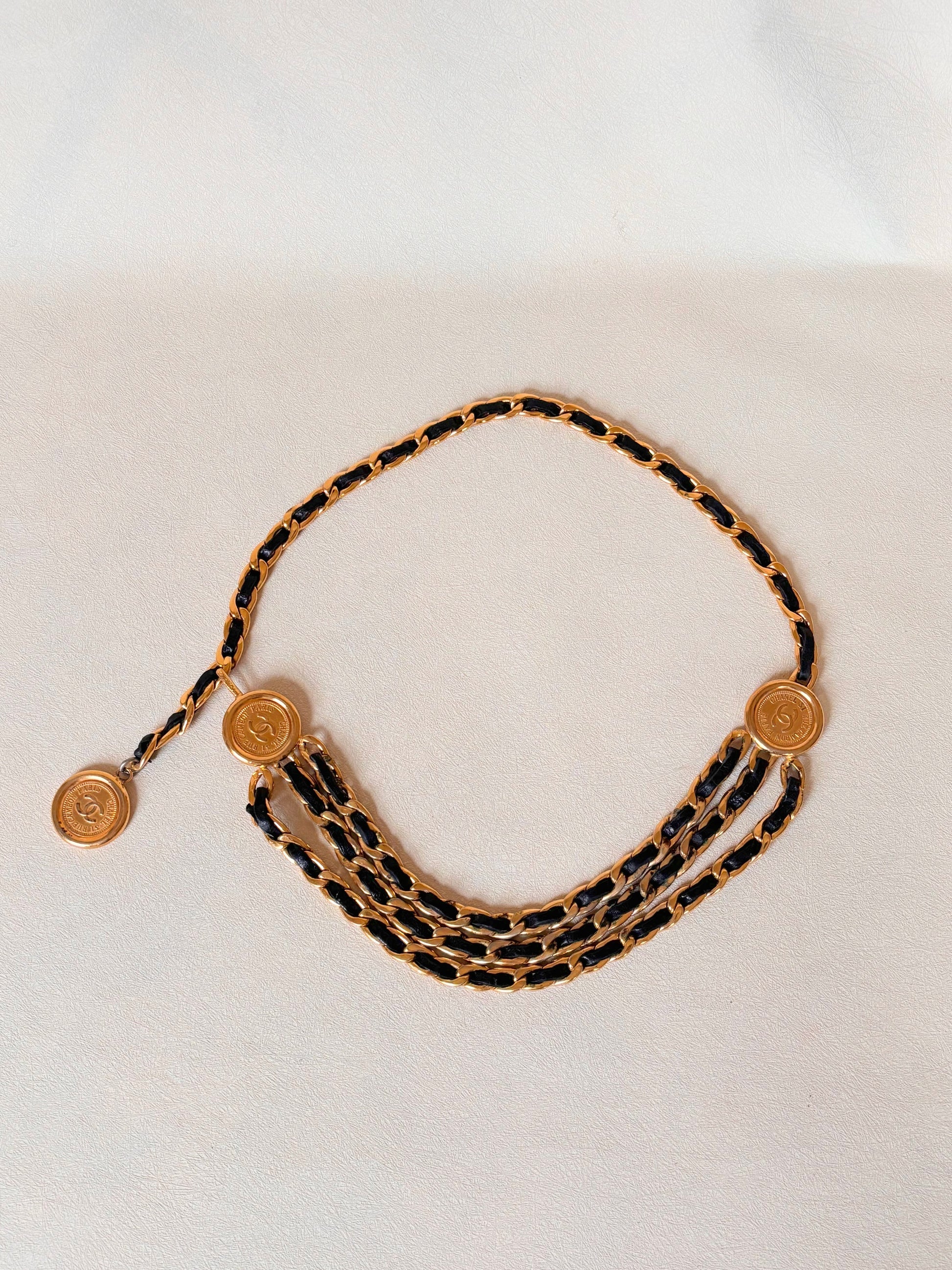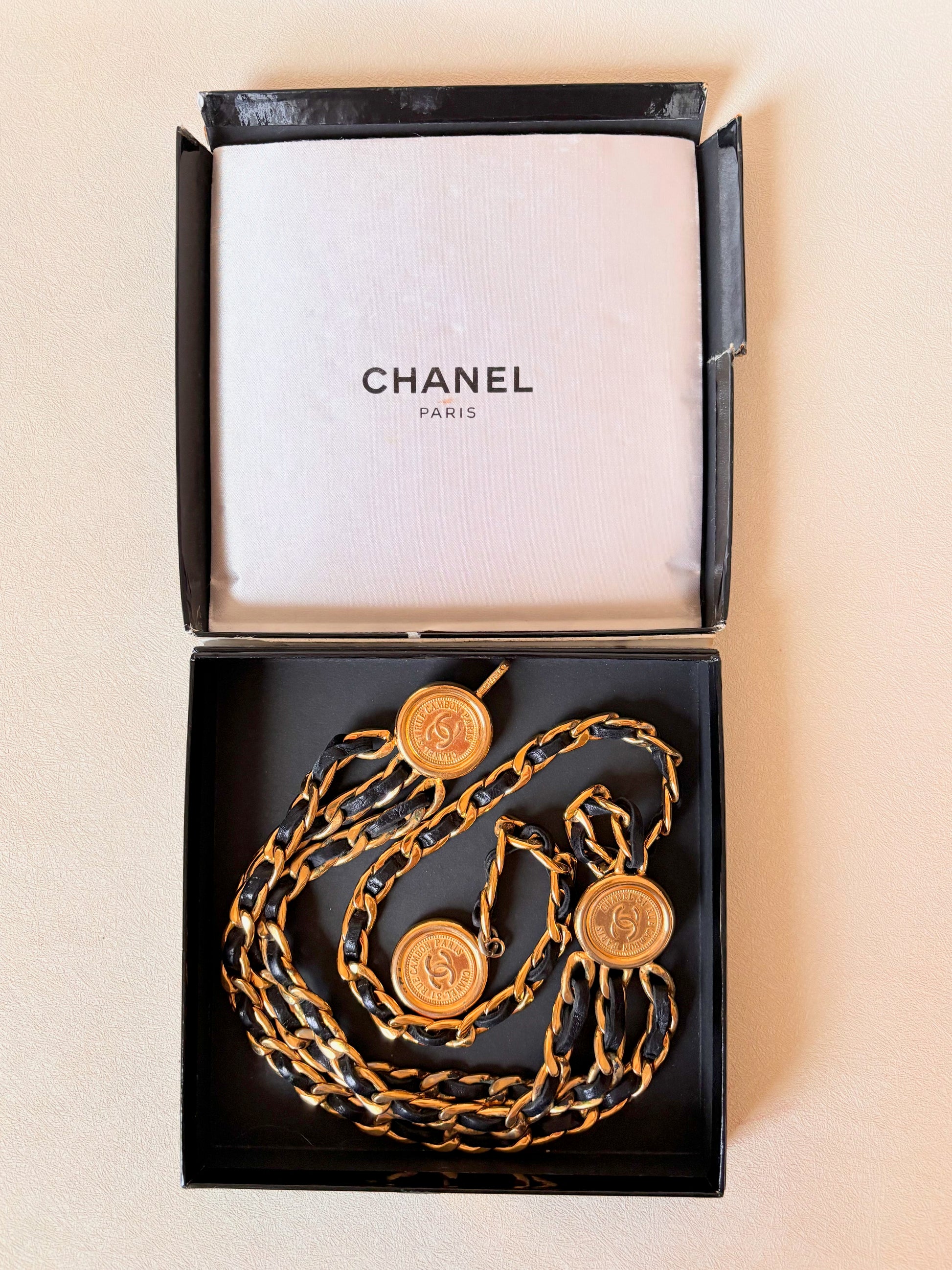 * Ceinture chaîne CHANEL en métal doré et cuir noir