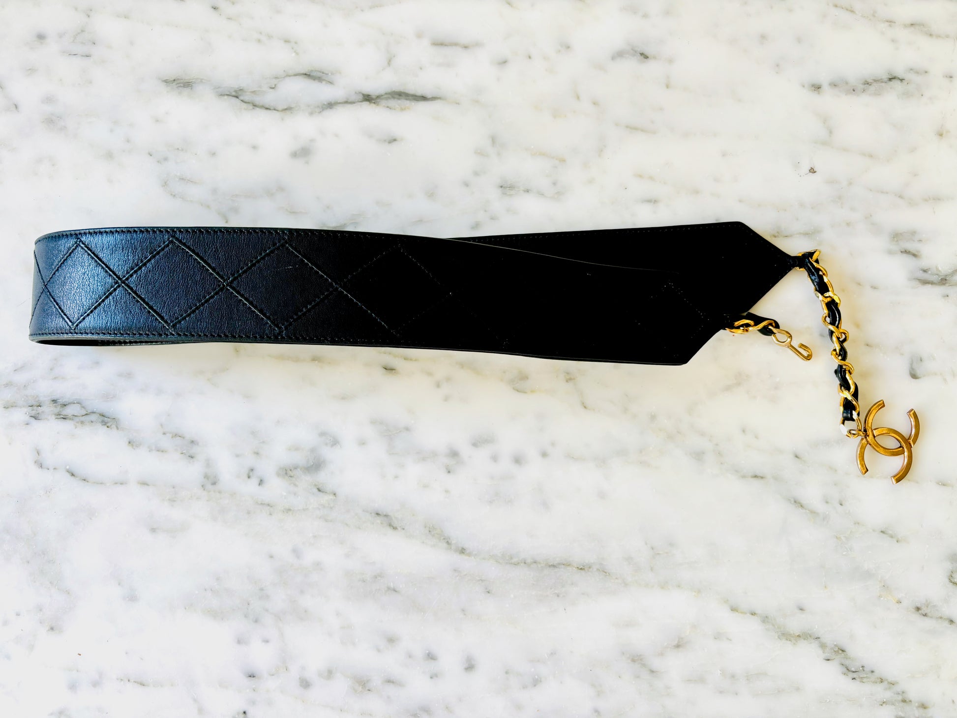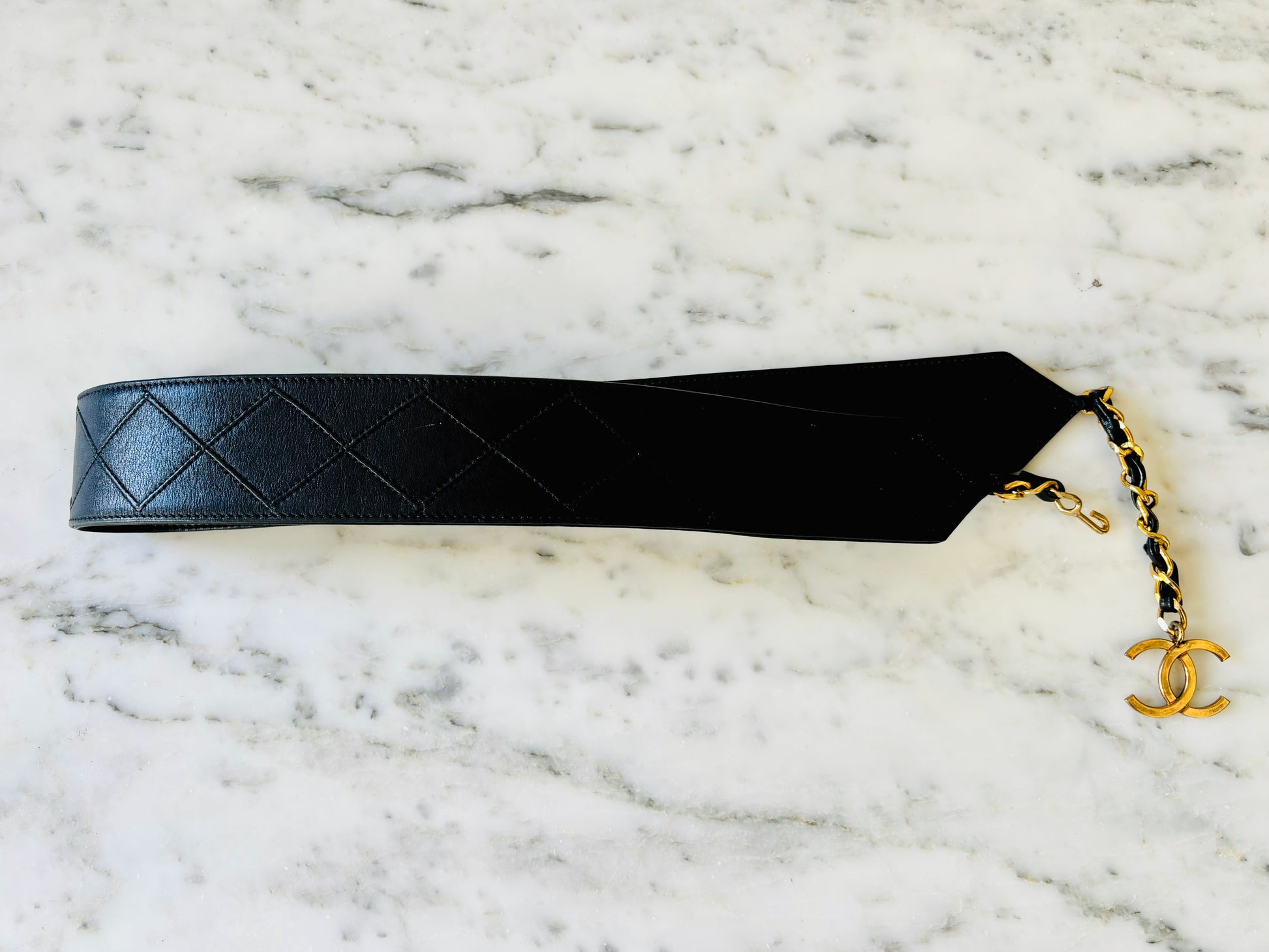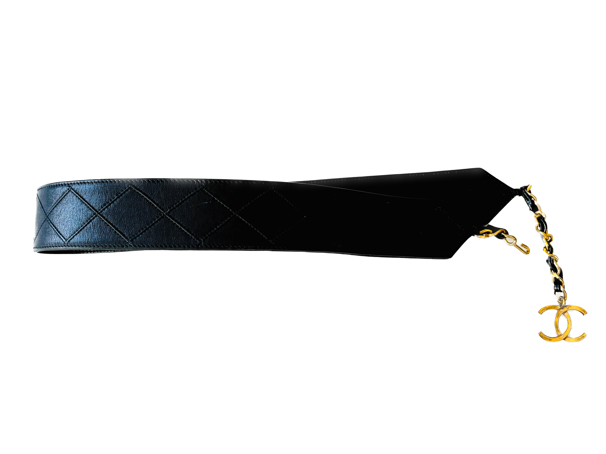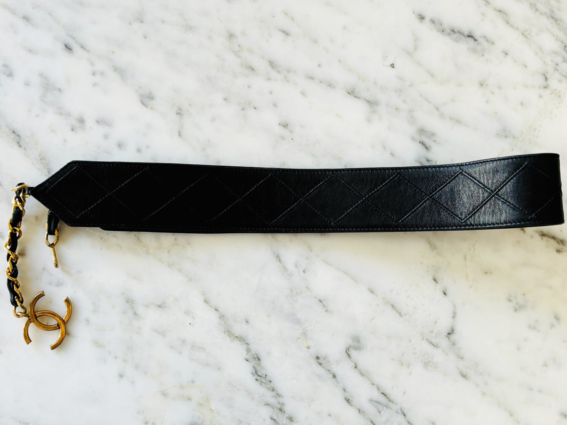 * Ceinture CHANEL vintage en cuir matelassé noir