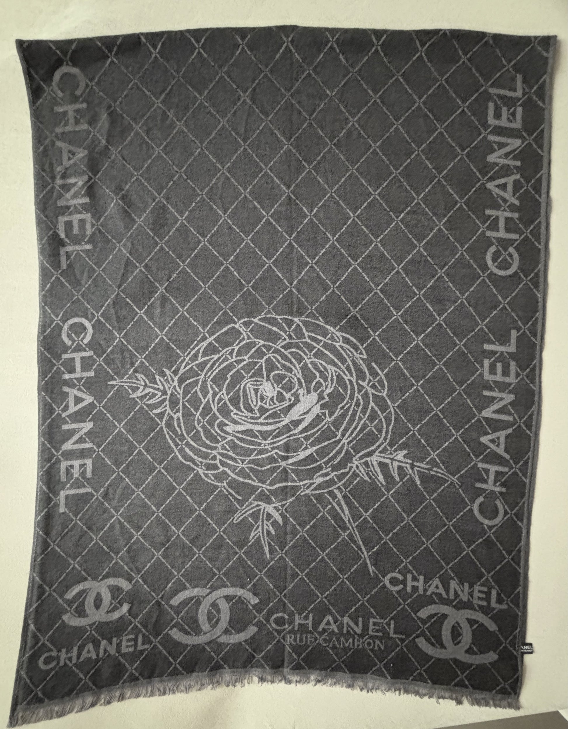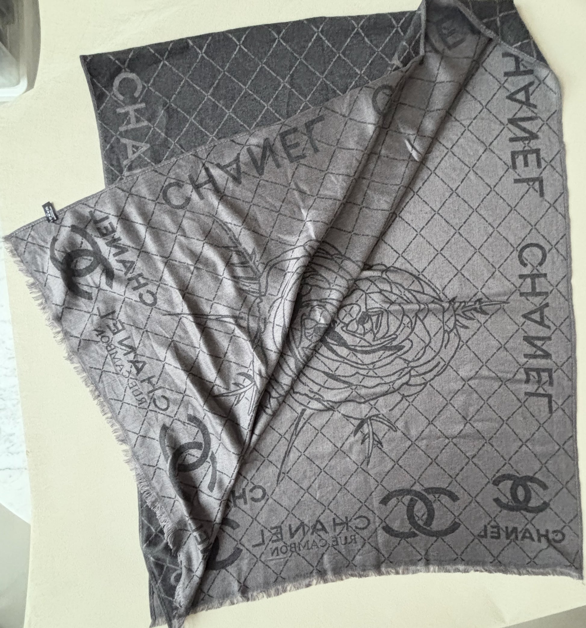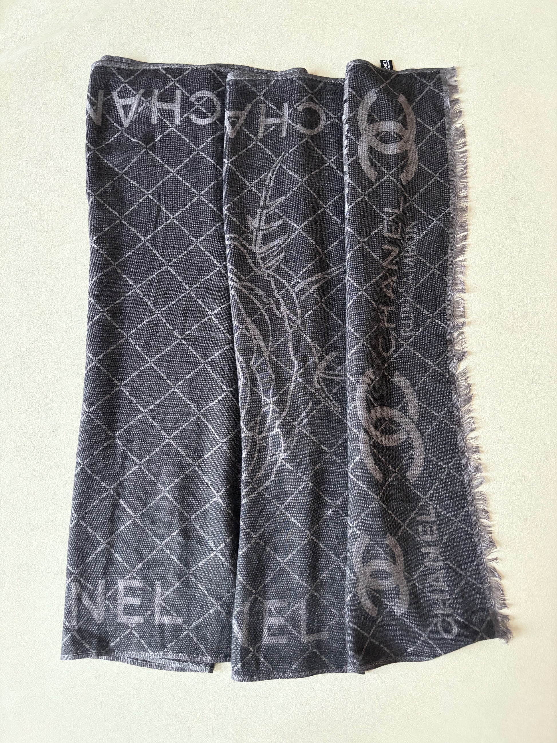 * Écharpe CHANEL en cachemire (65%) et soie (35%)