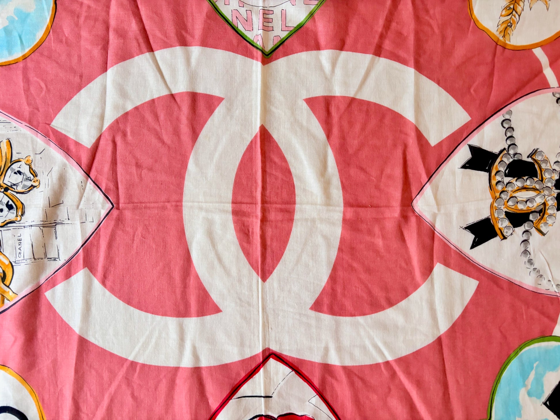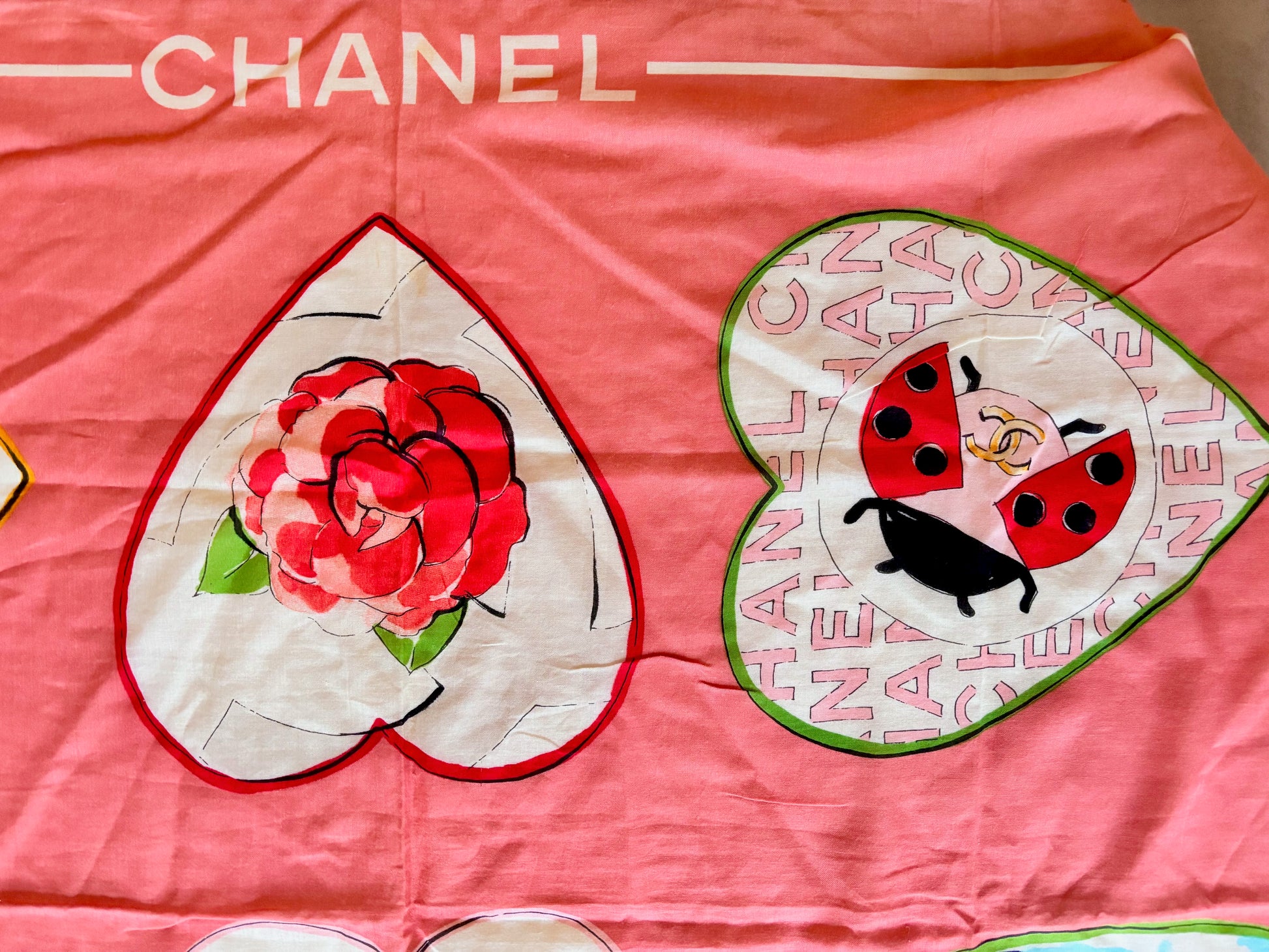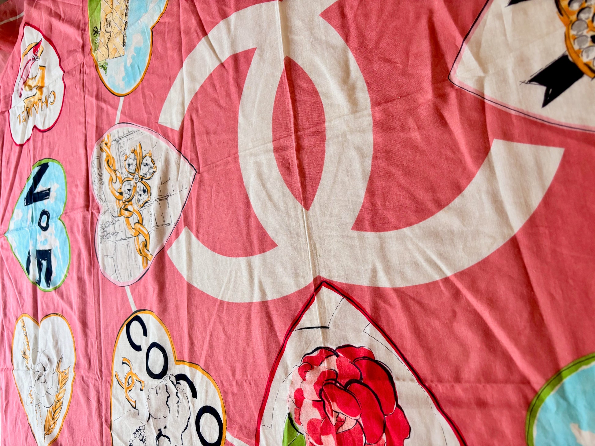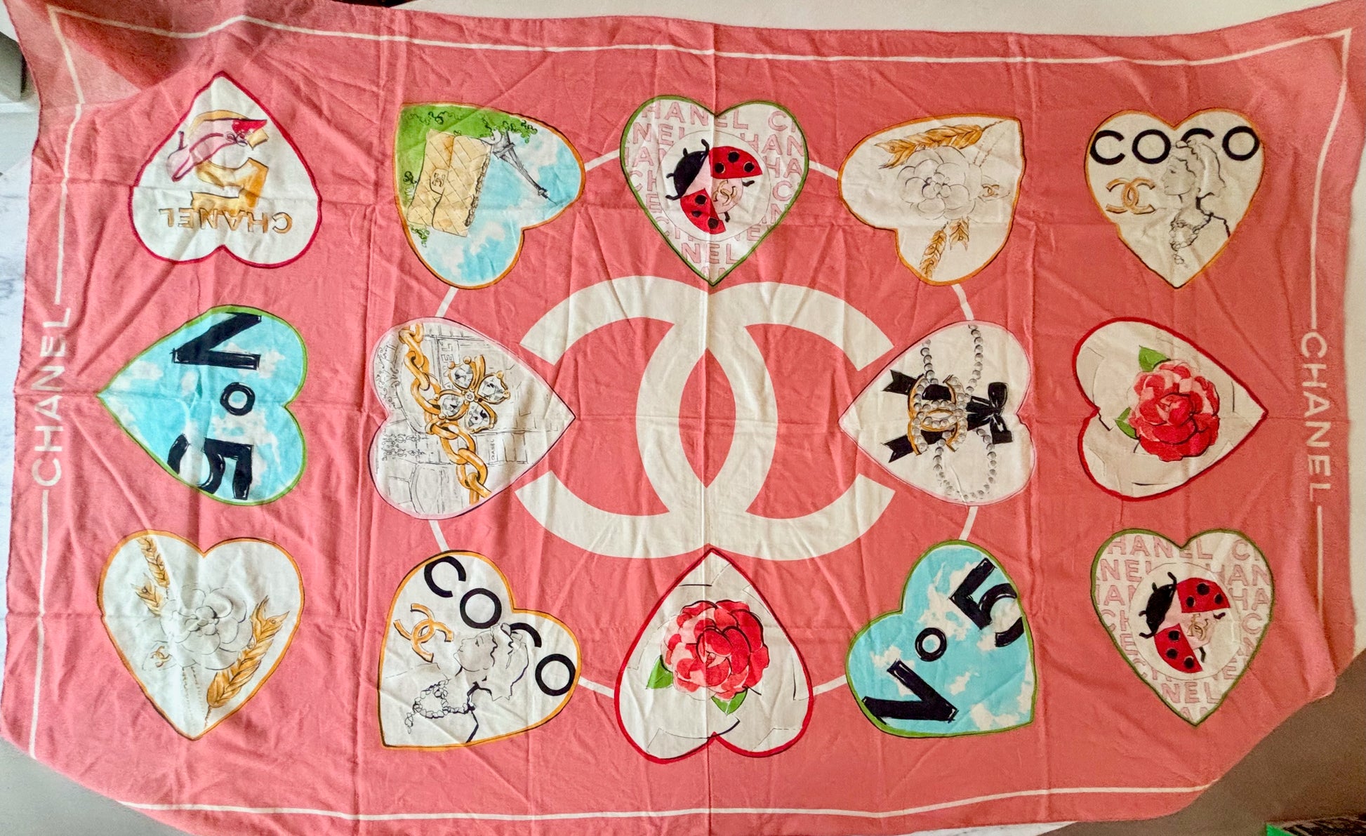 * Grande étole/paréo CHANEL en coton couleur vieux rose