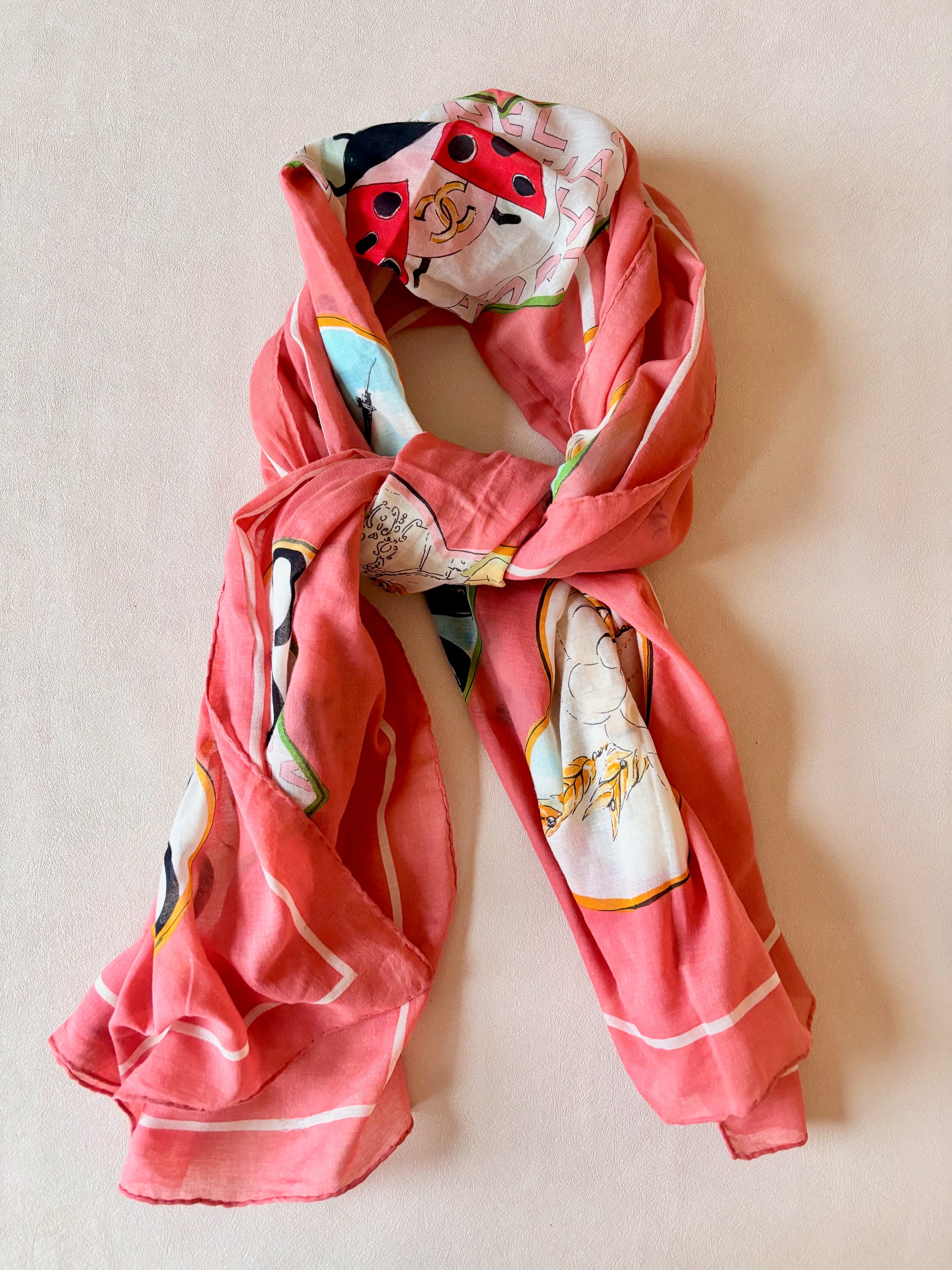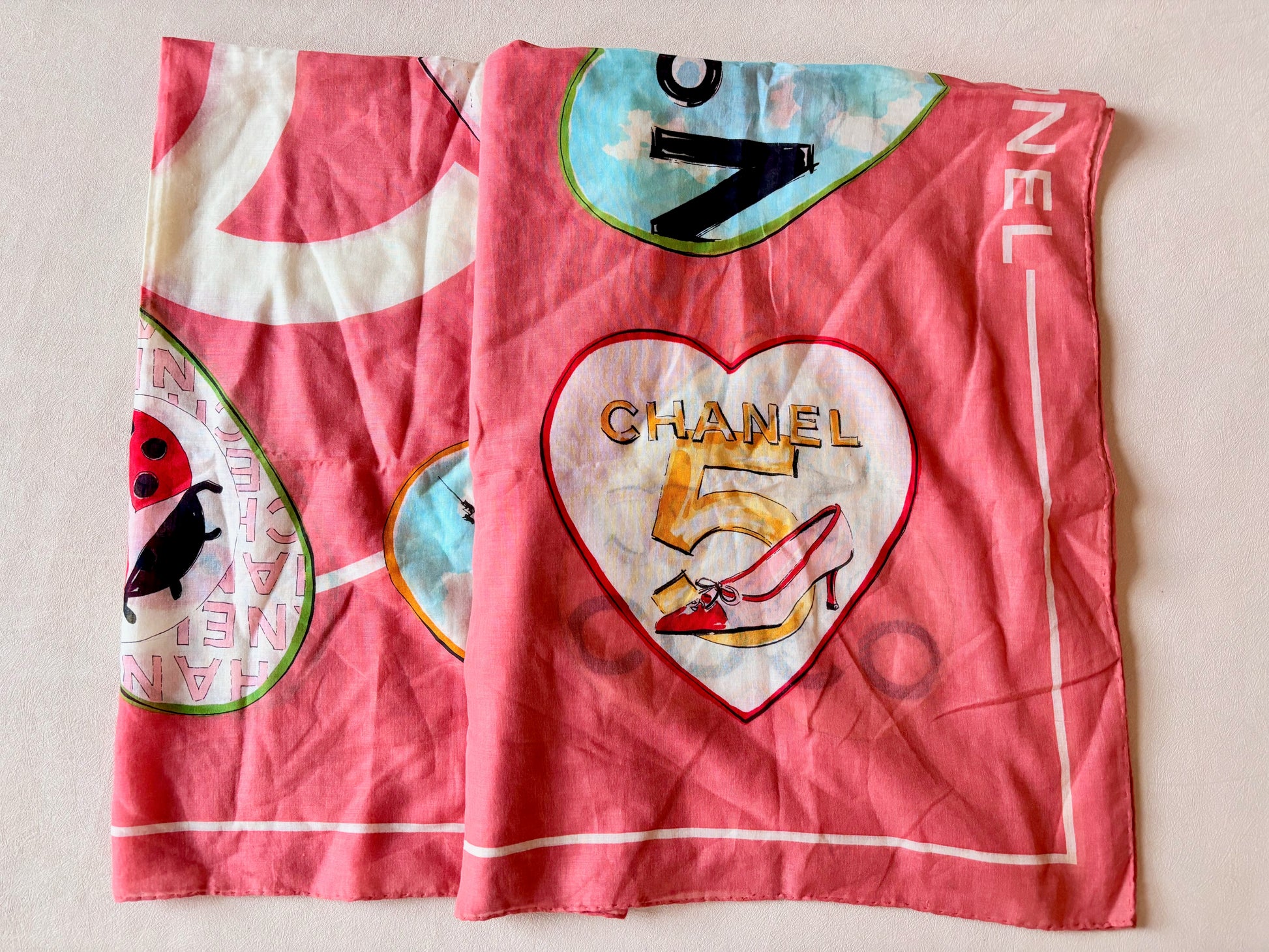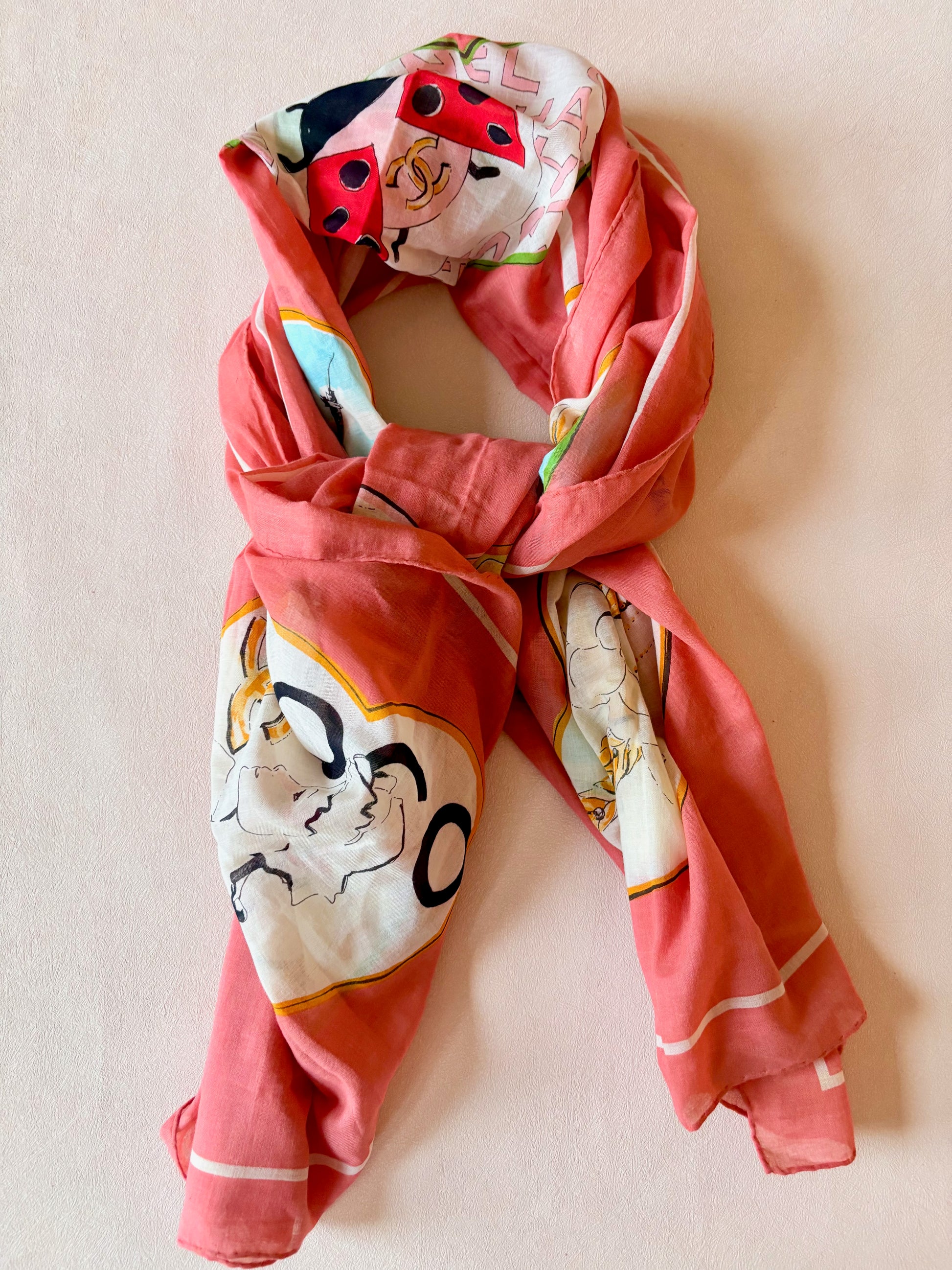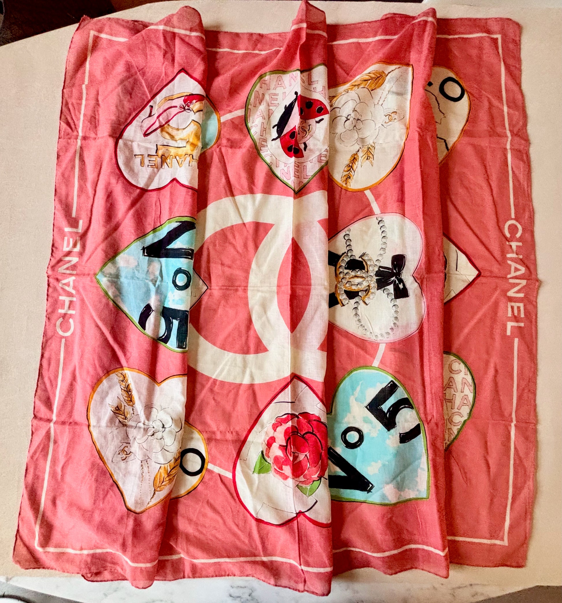 * Grande étole/paréo CHANEL en coton couleur vieux rose