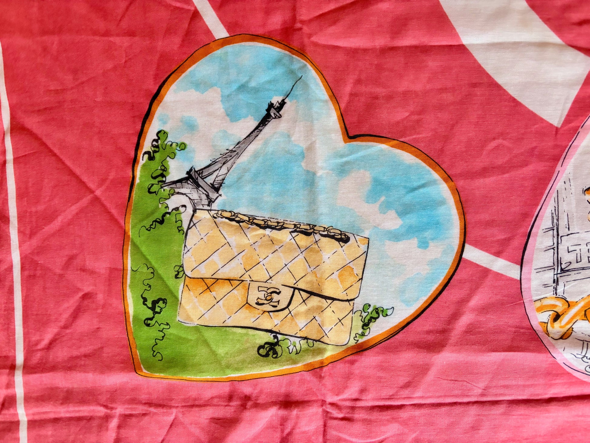 * Maxi logo central CC contrastant ; motifs coeurs décorés des symboles emblématiques de la marque