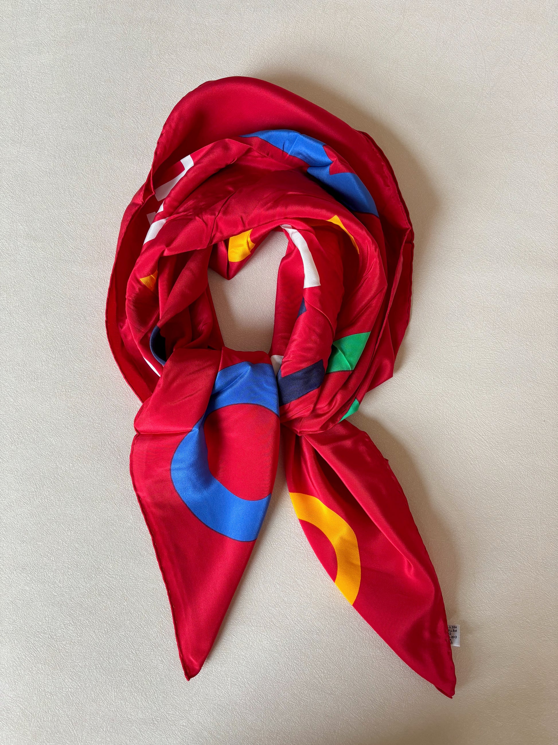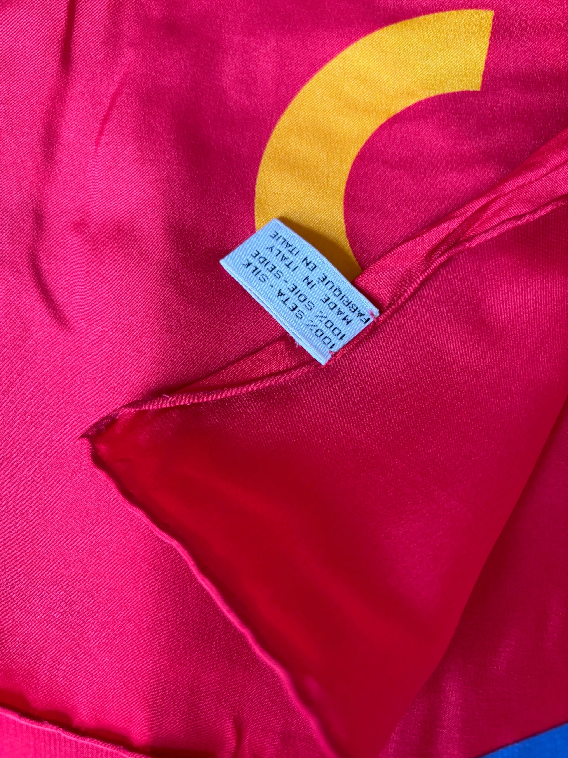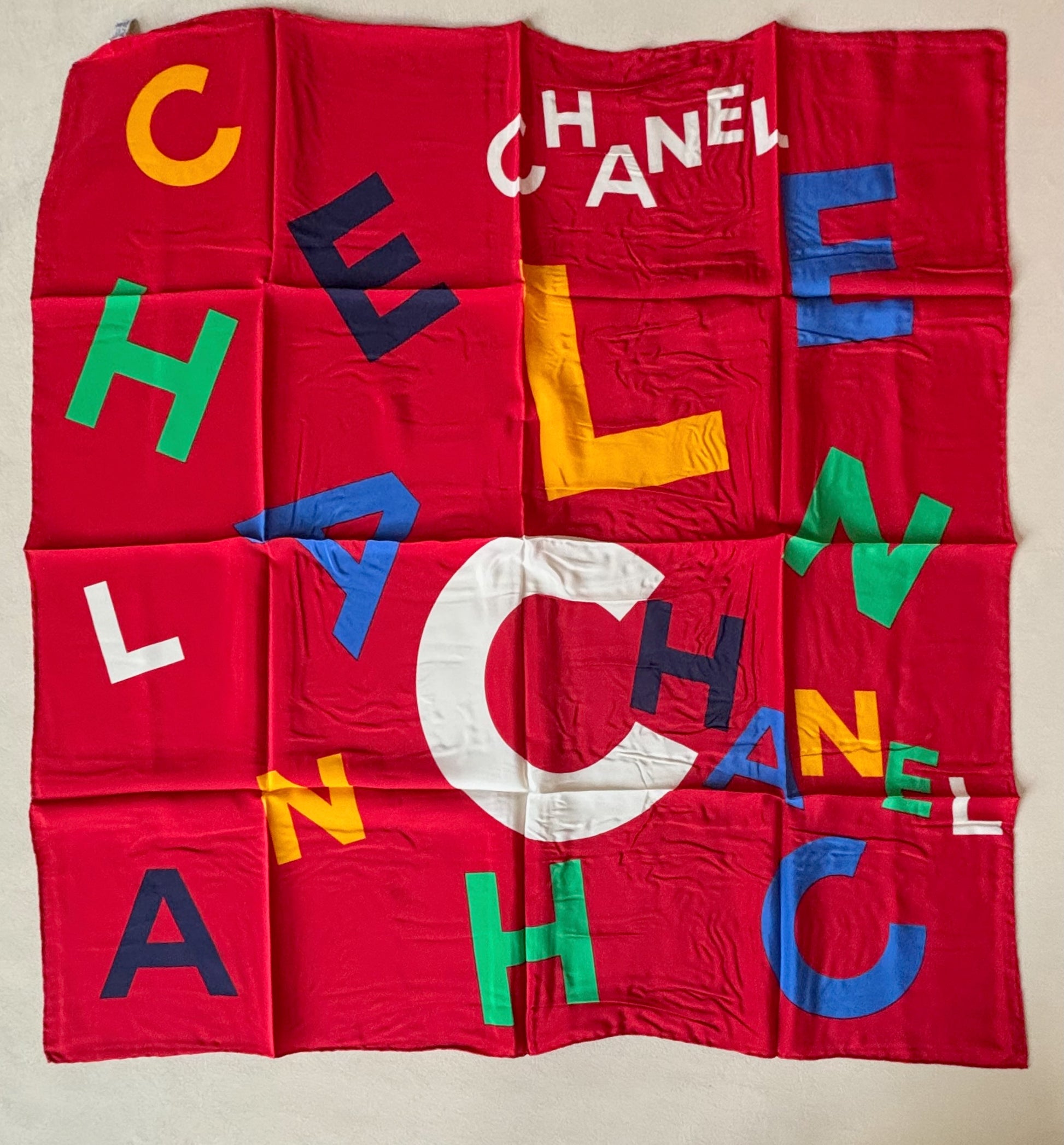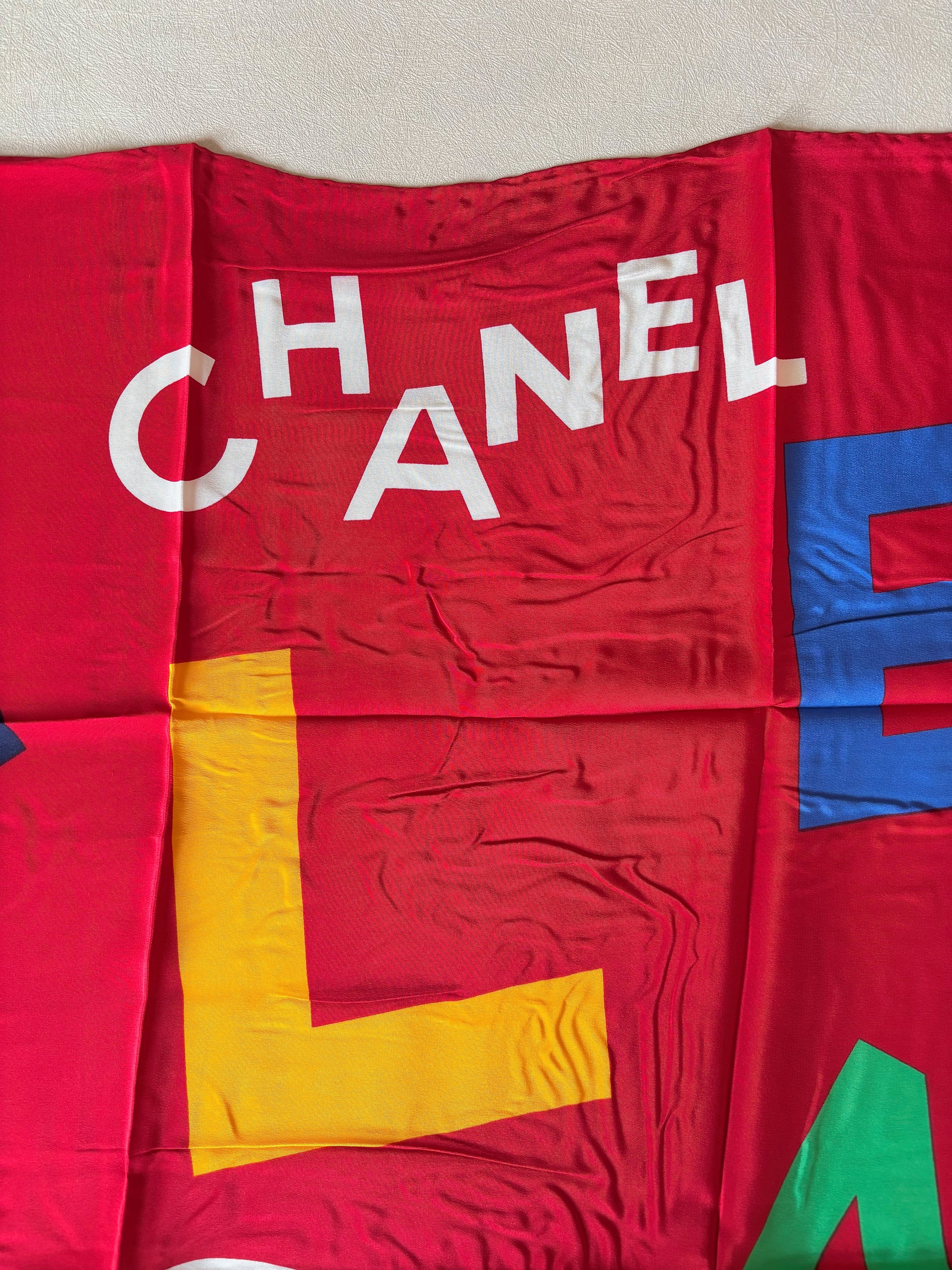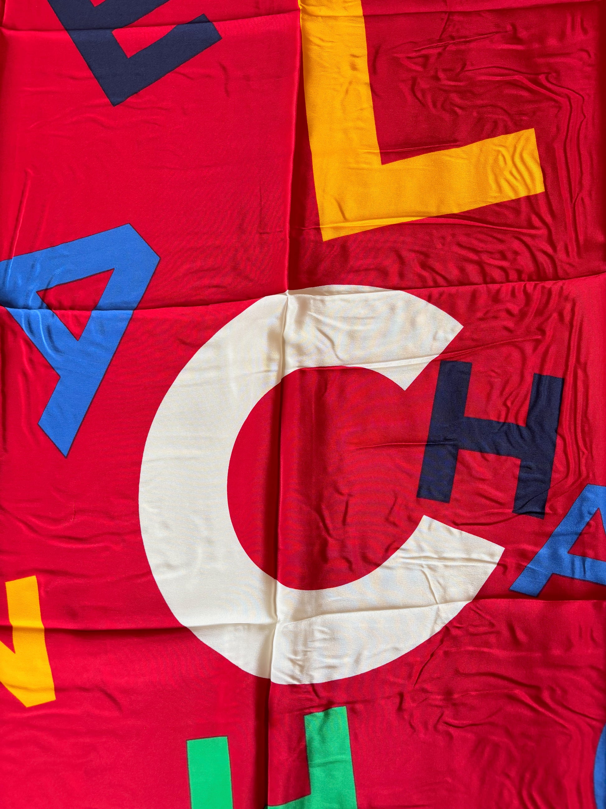 * Motifs logo CC Chanel multicolores contrastants sur fond rouge