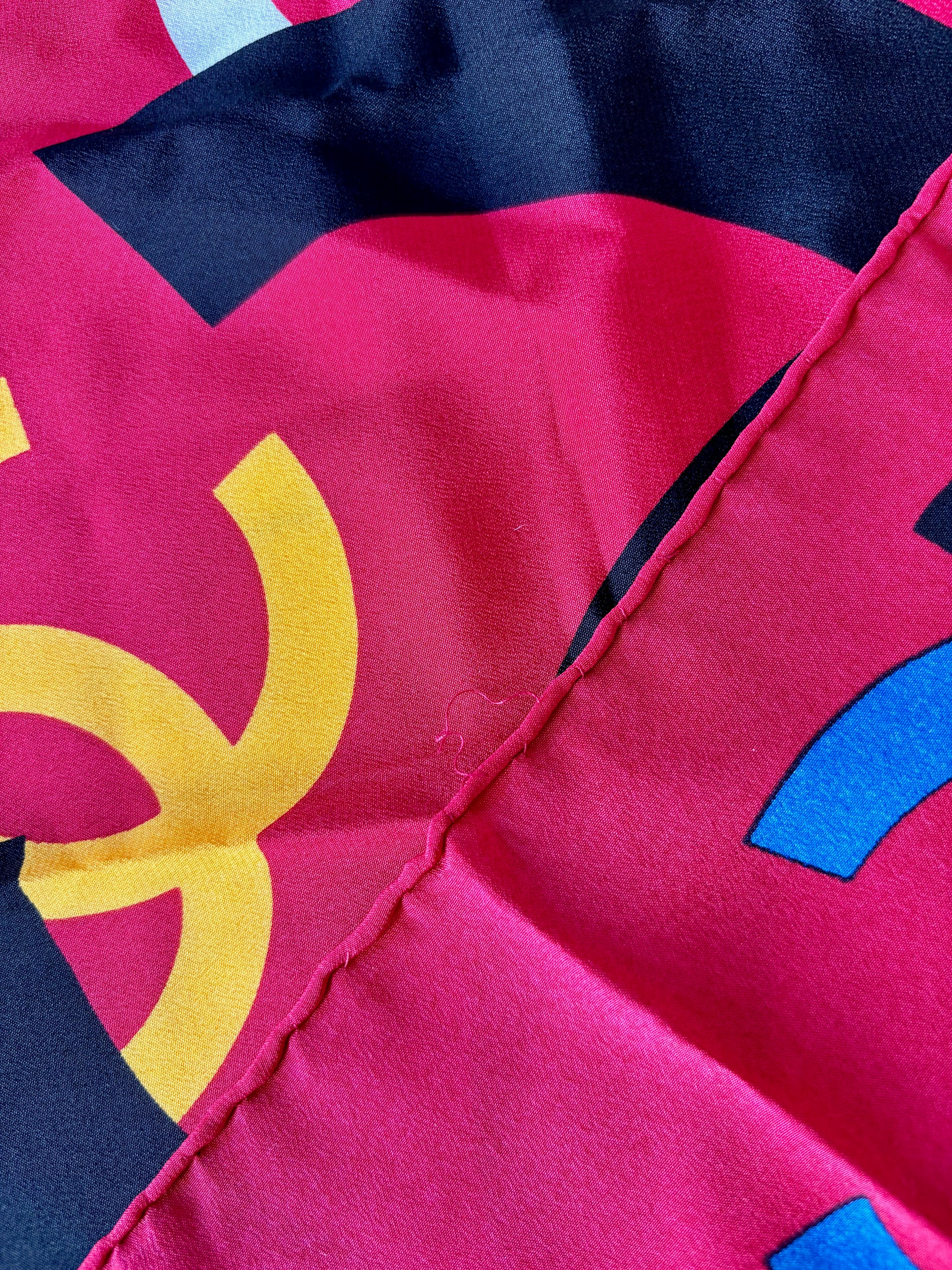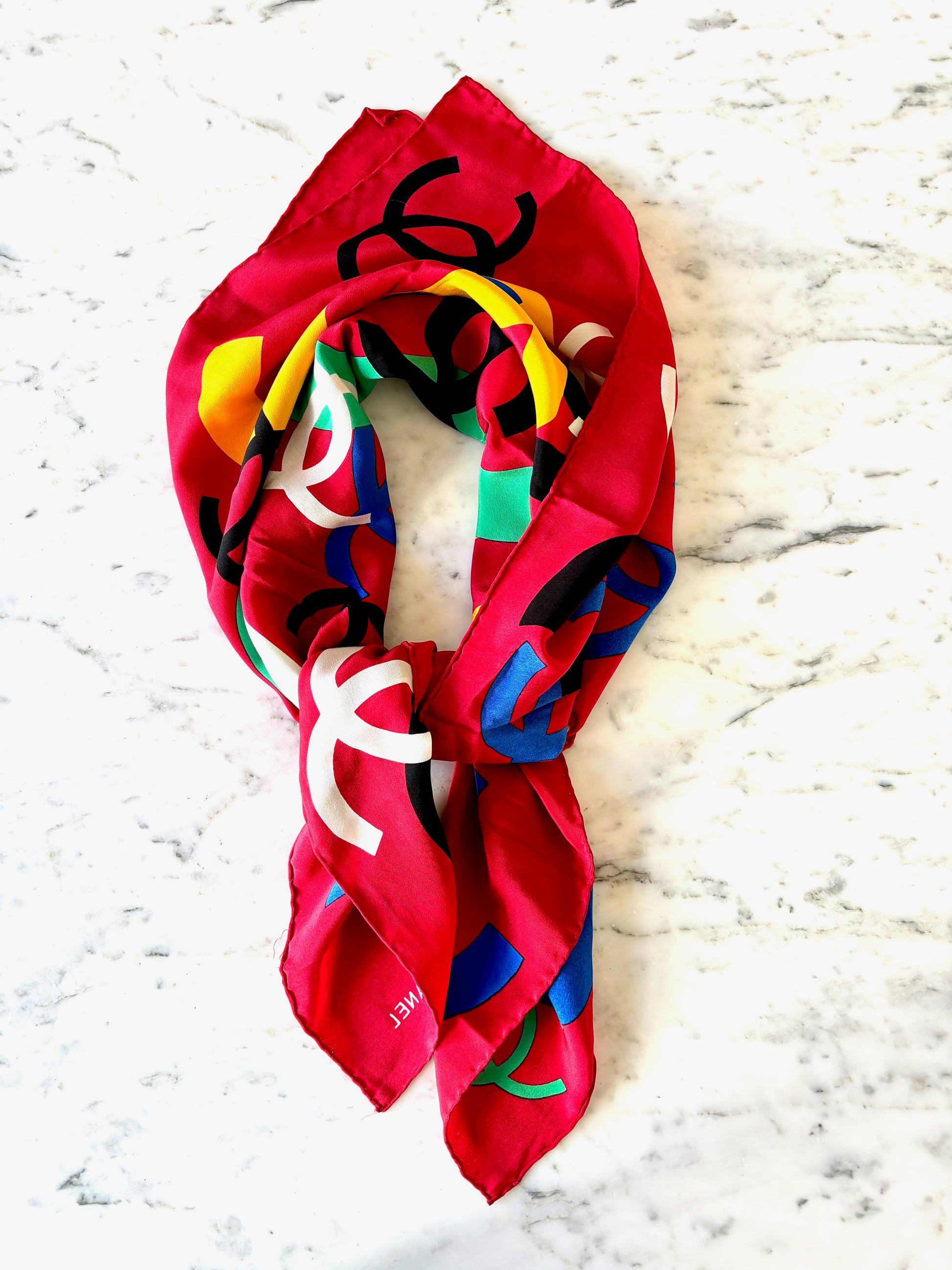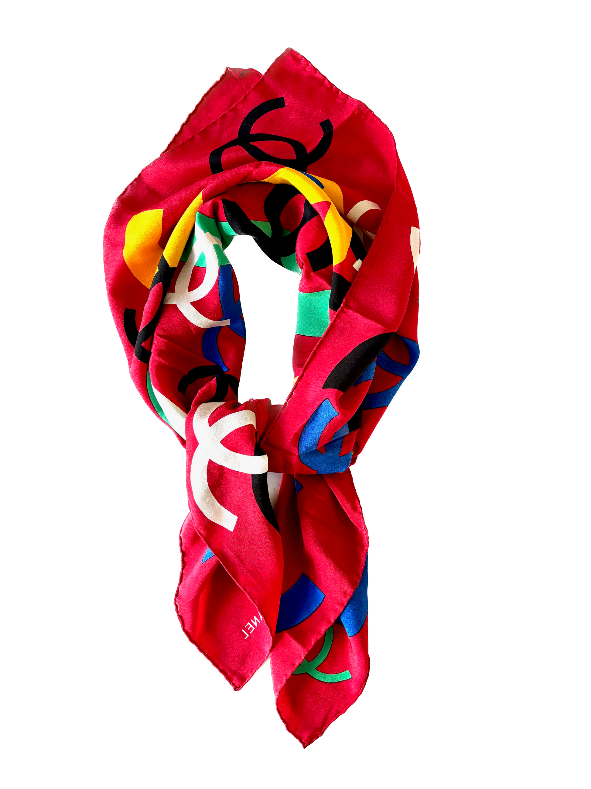 * Motifs logo CC Chanel multicolores contrastants sur fond rouge