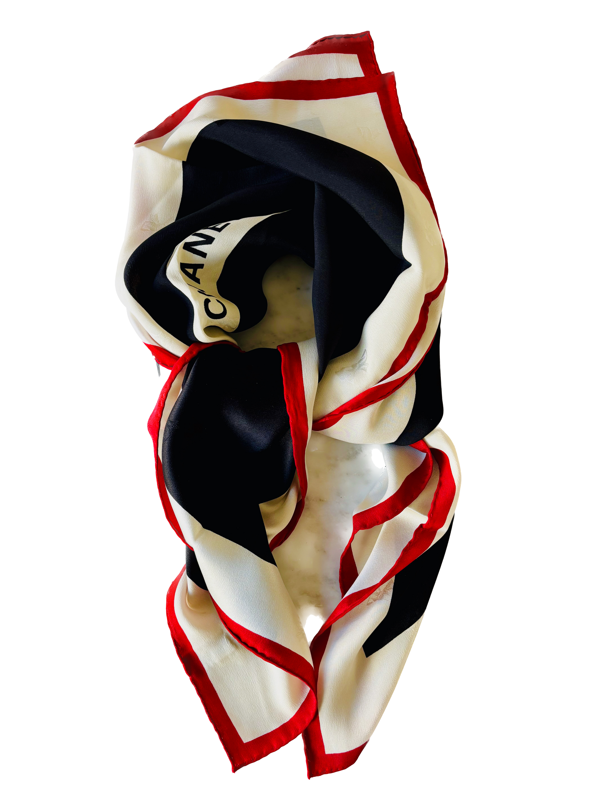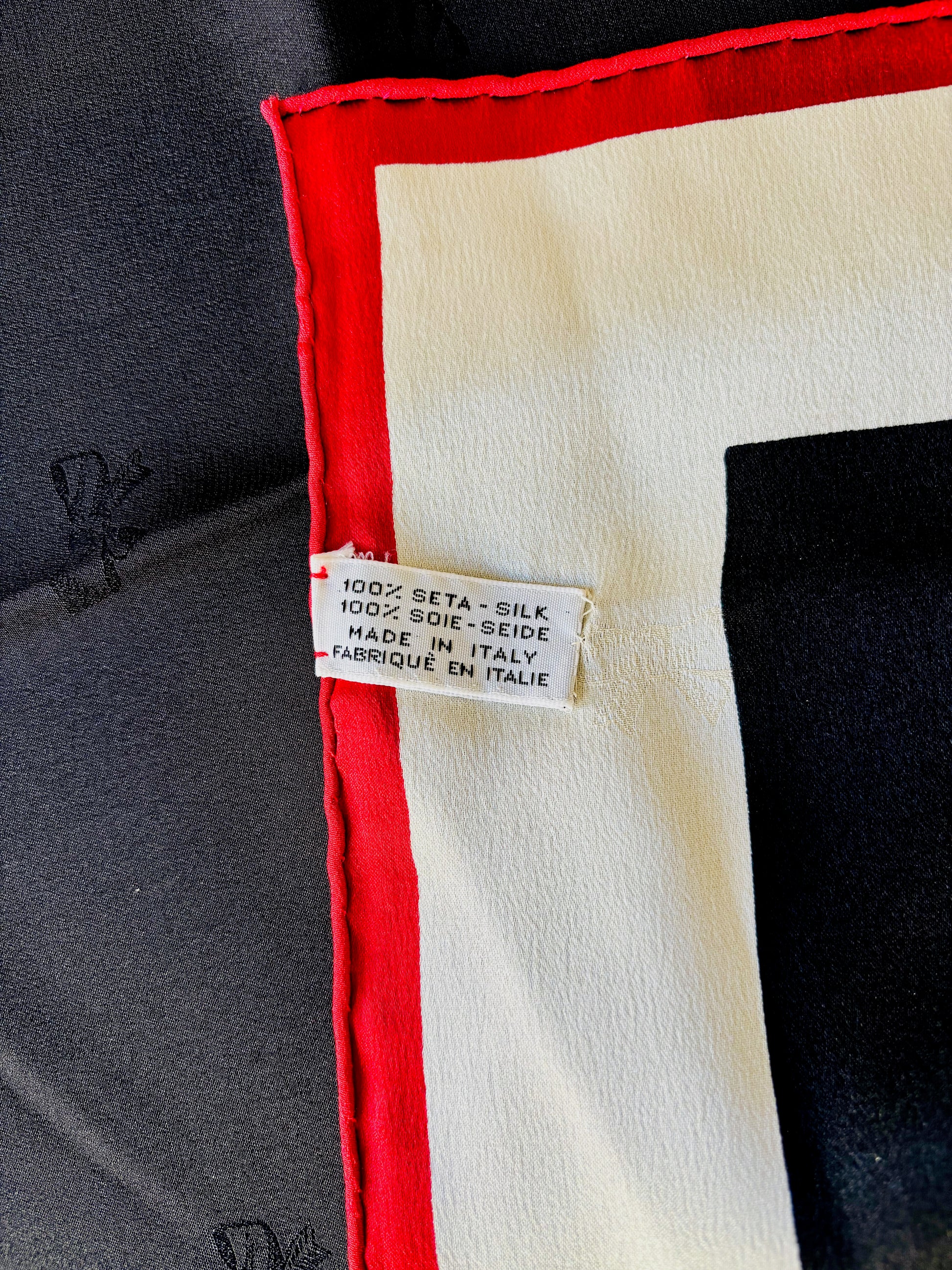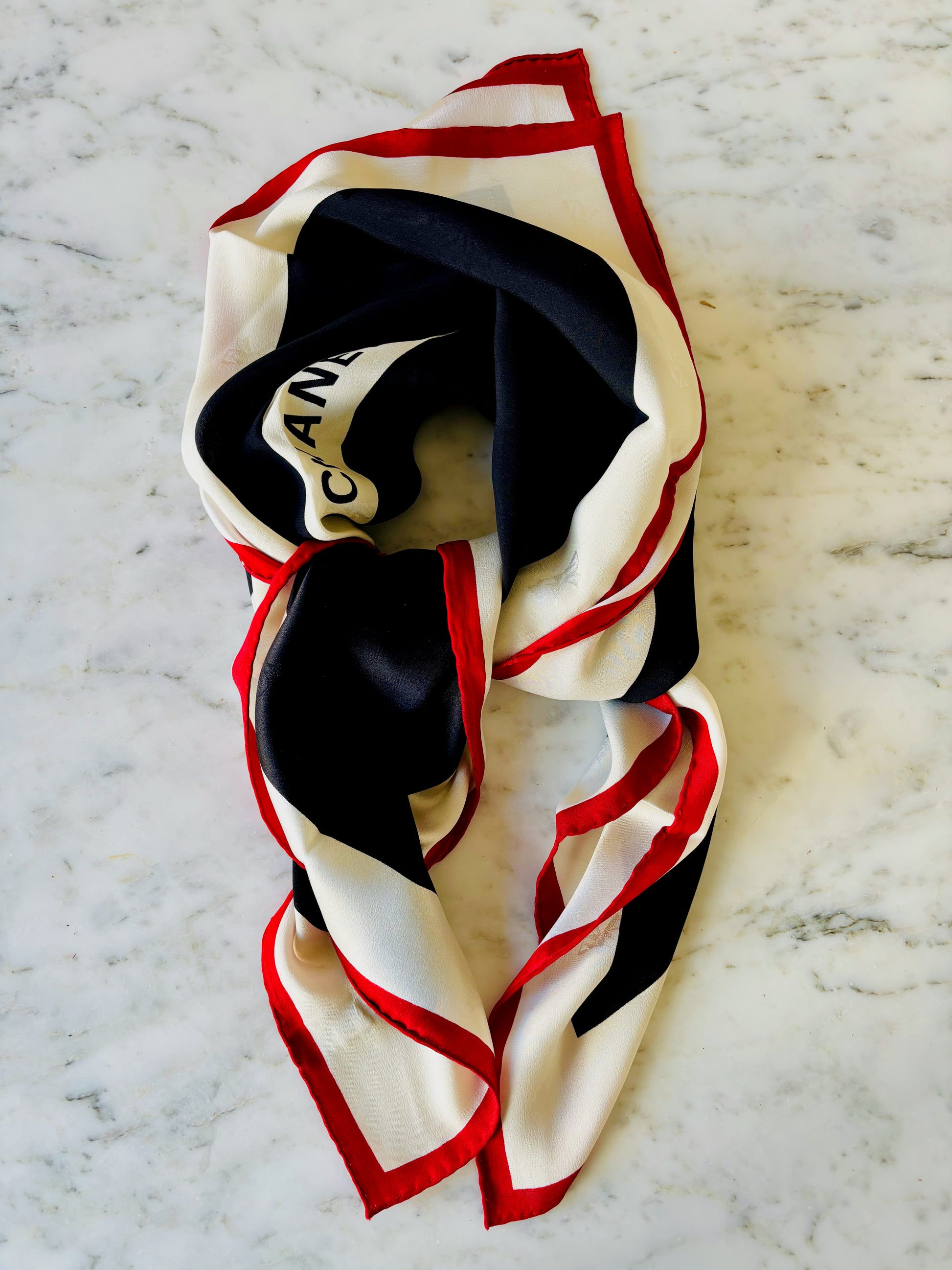 * Motif nœud central blanc, contrastant sur fond noir, bordure blanche et rouge