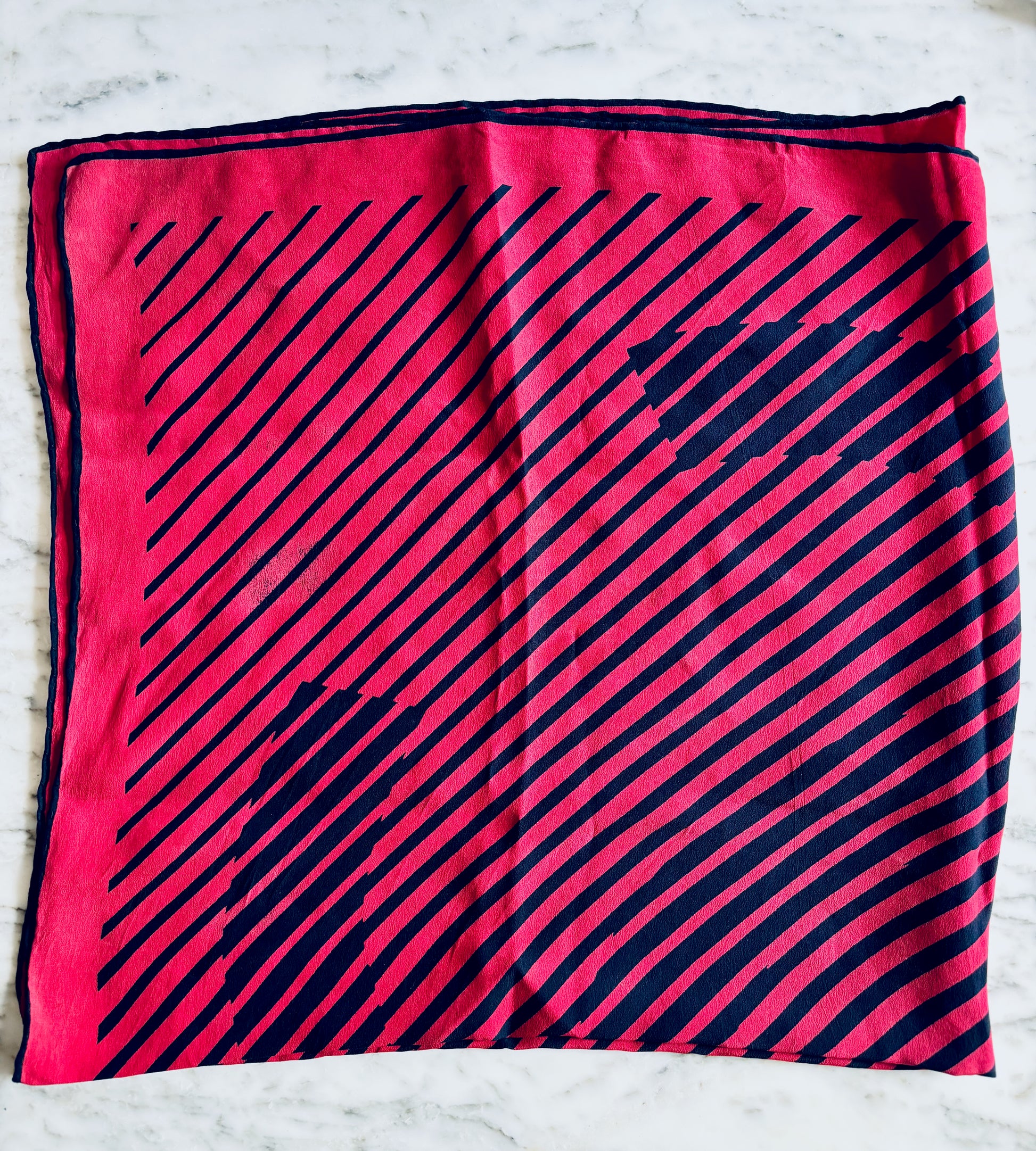 * Très bon état ; à noter une petite trace comme si une étiquette avait été collée et retirée, froissant légèrement la soie.