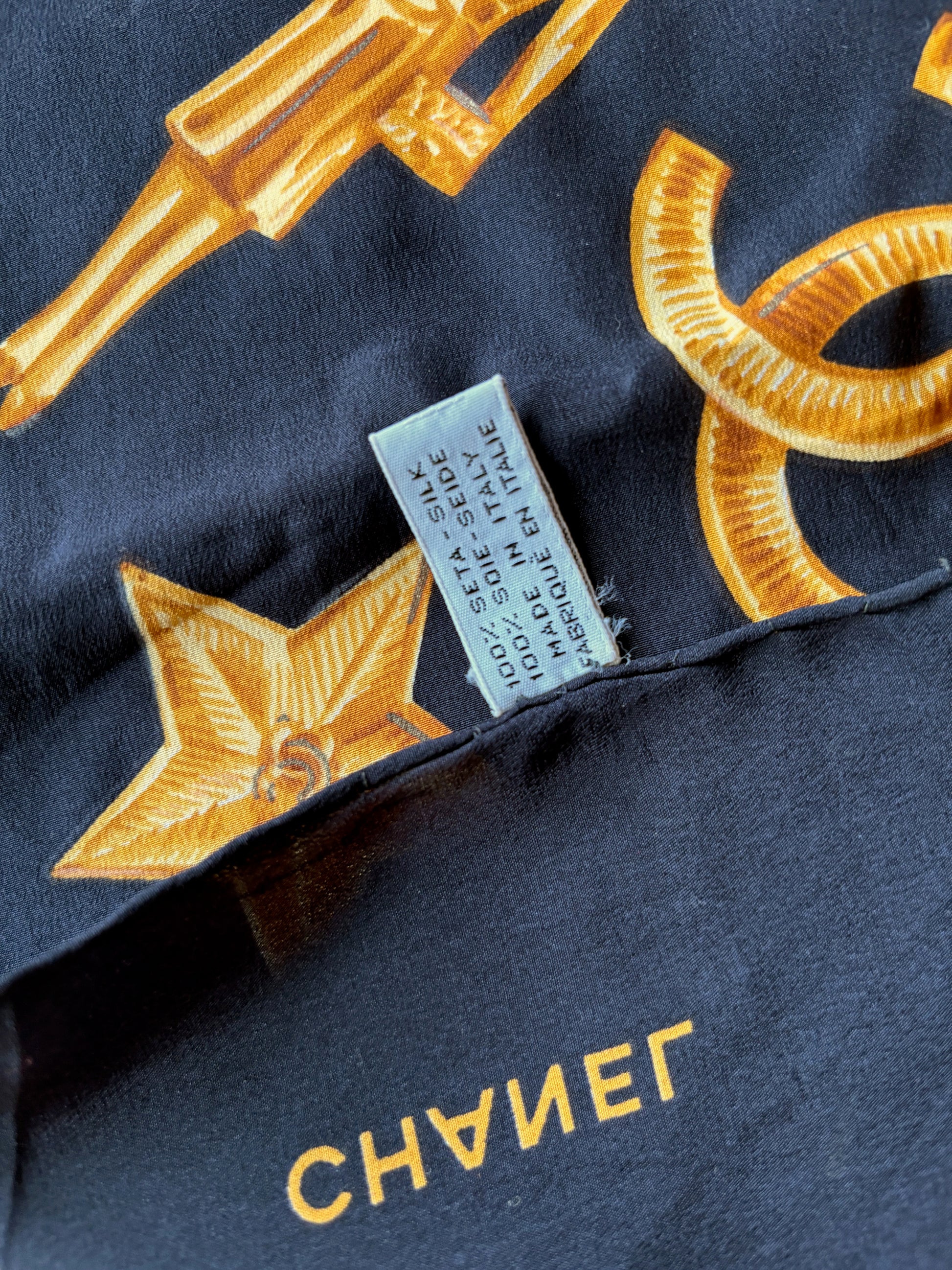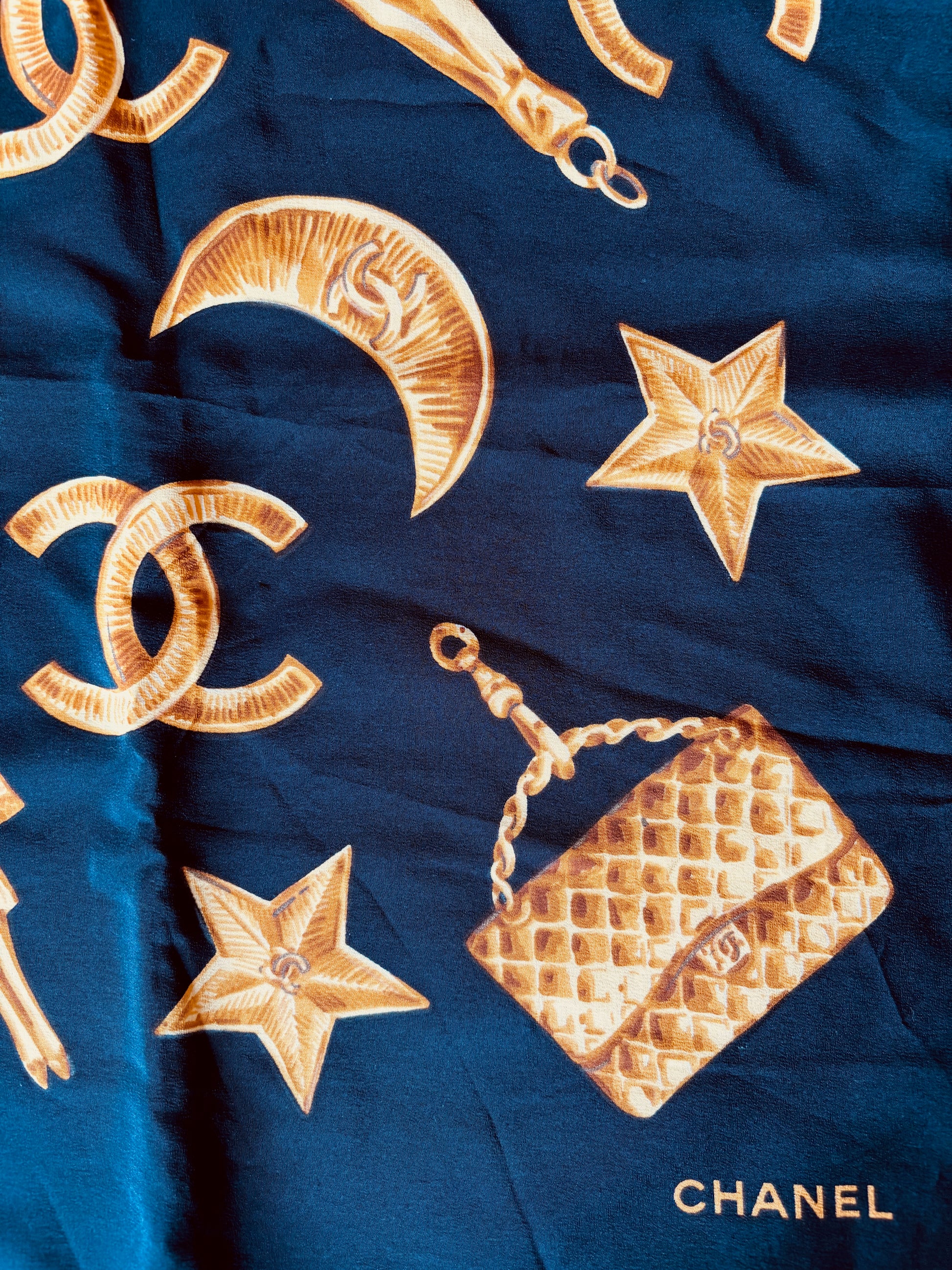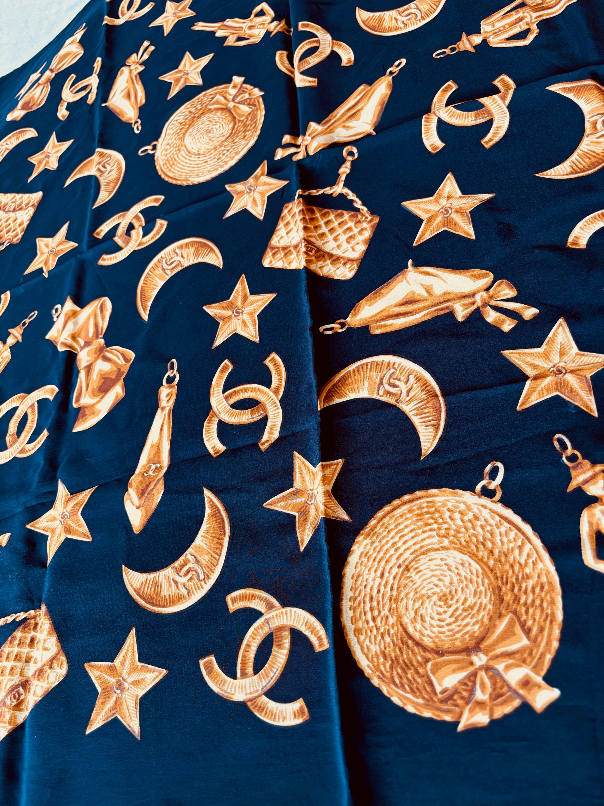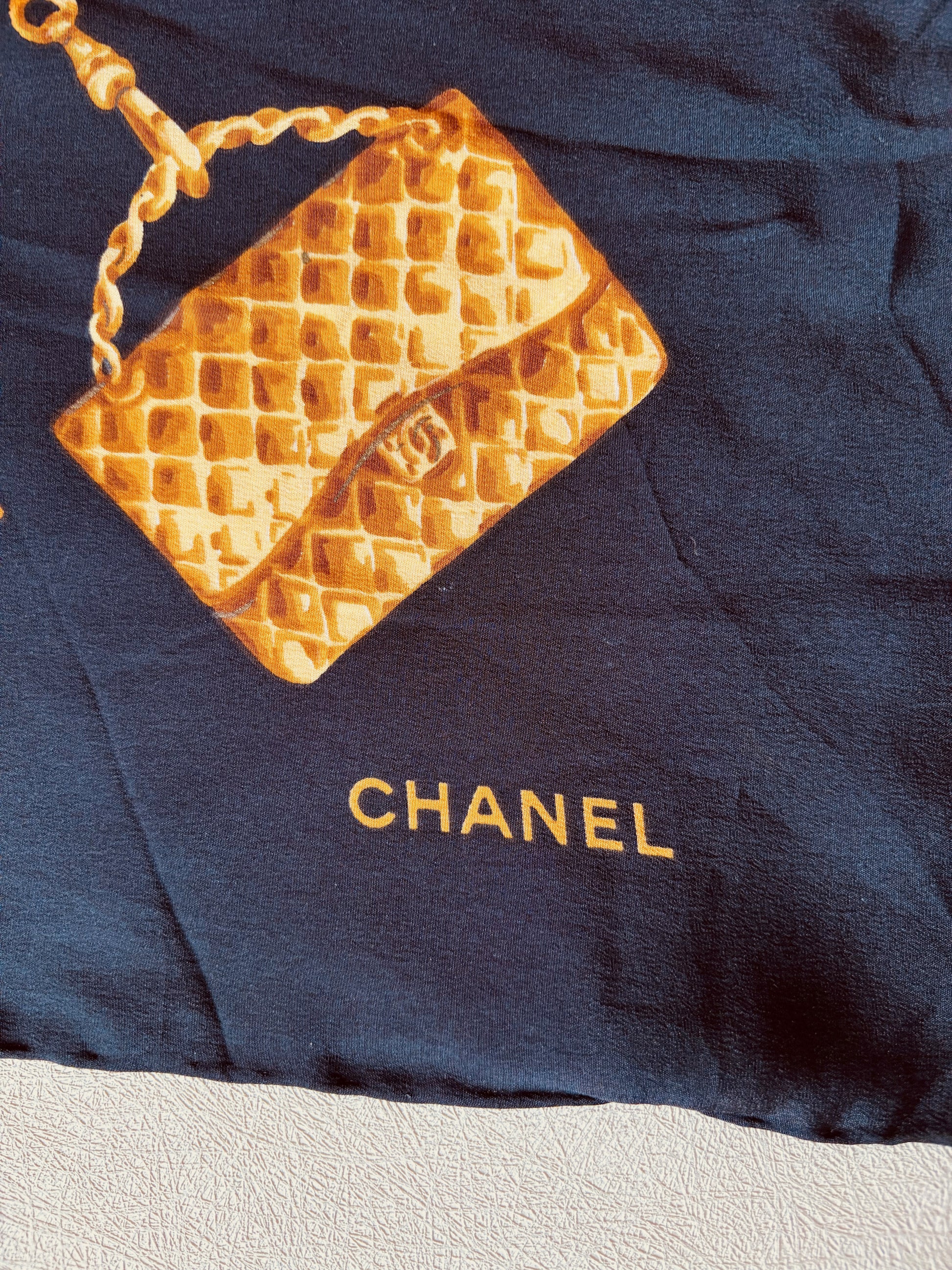 * Motifs dorés emblématiques de la marque (sac Timeless, logo CC...) sur fond noir