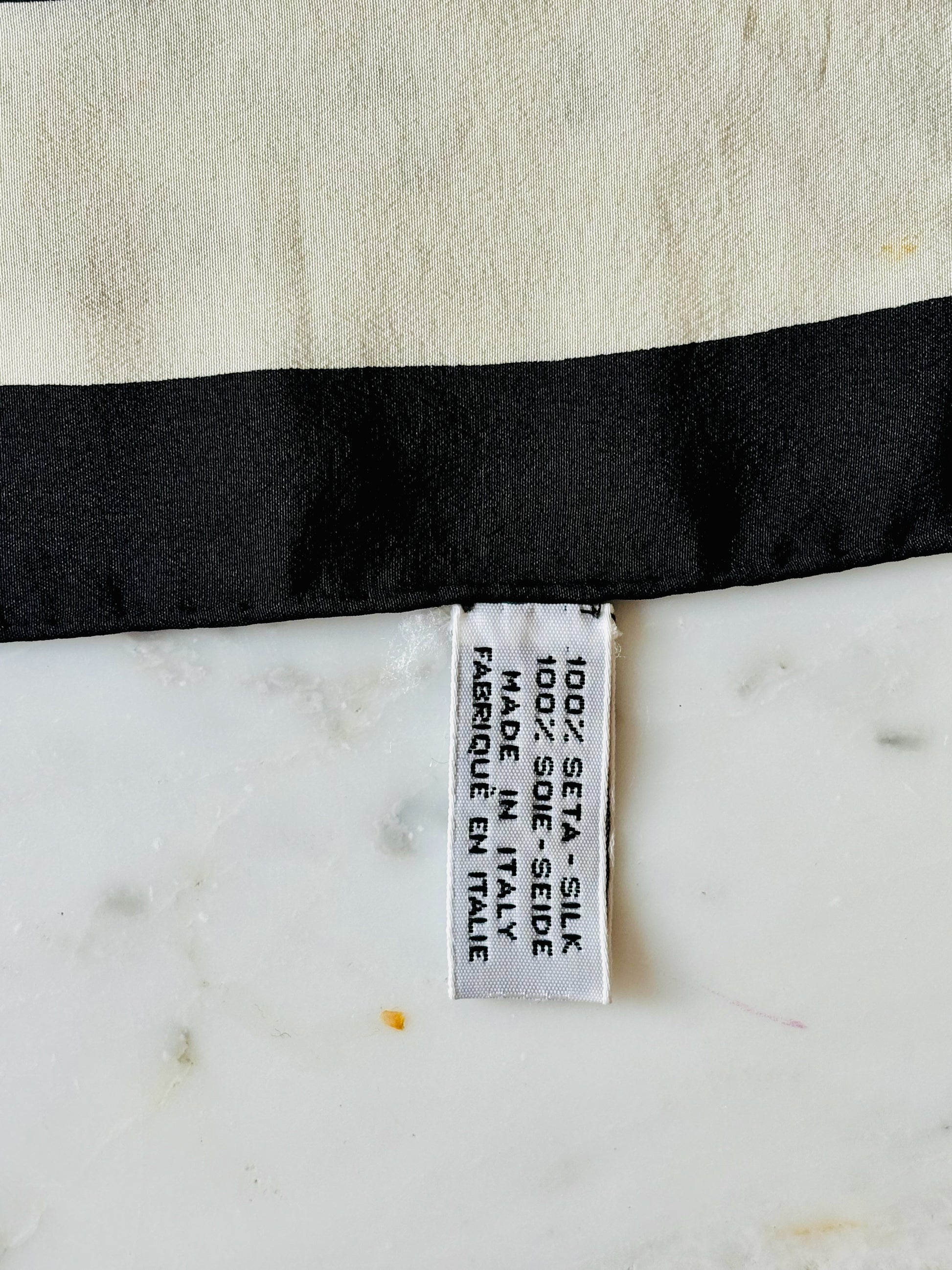 * Tout en soie couleur dans les tons écru et noir fidèles à la marque