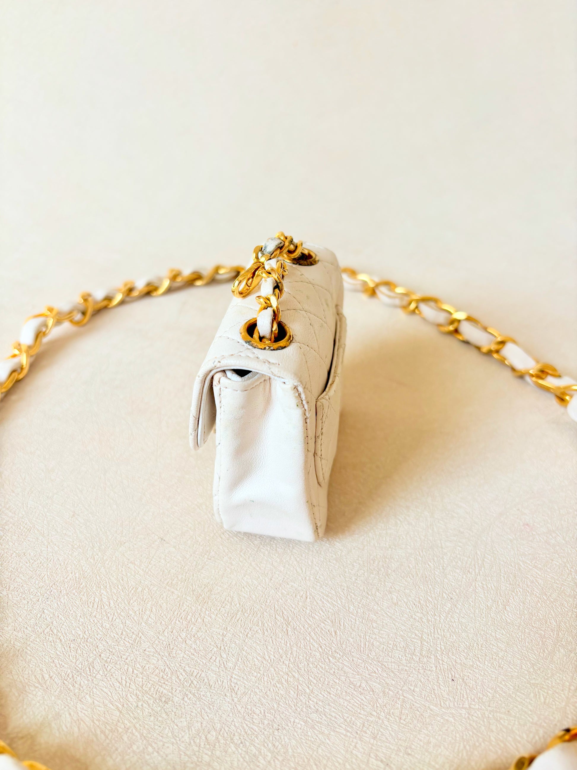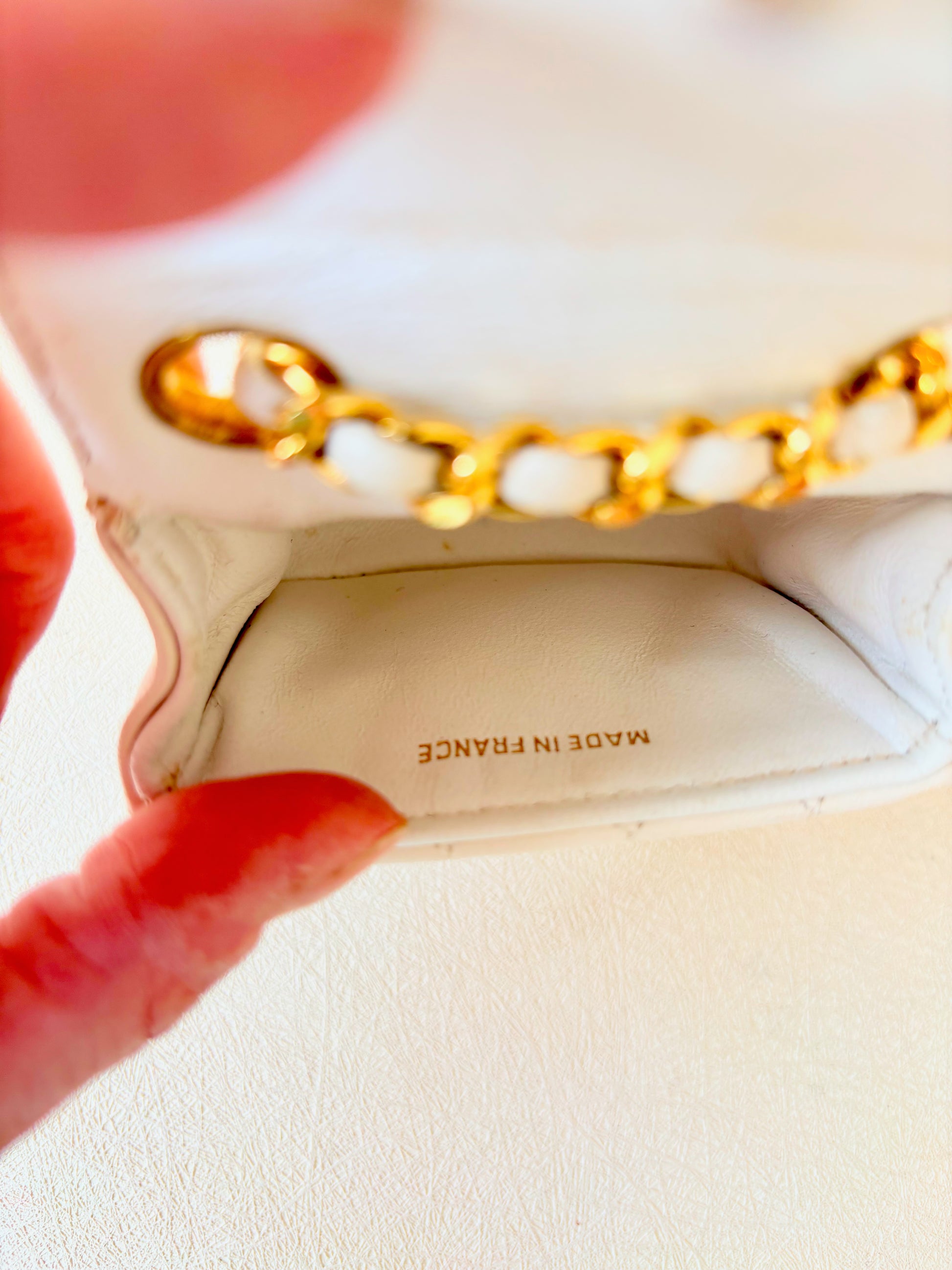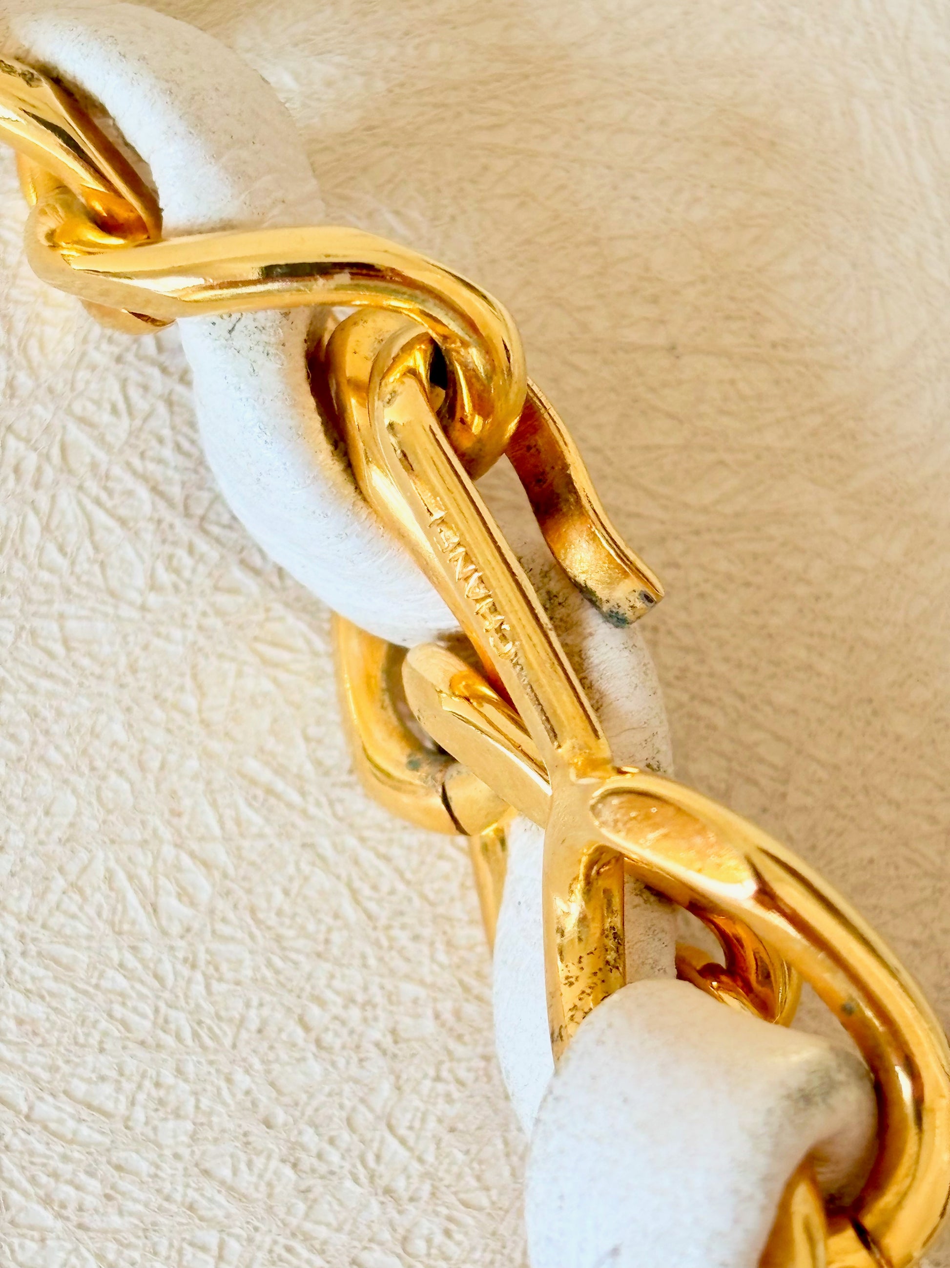 * En cuir blanc, maillons en métal doré