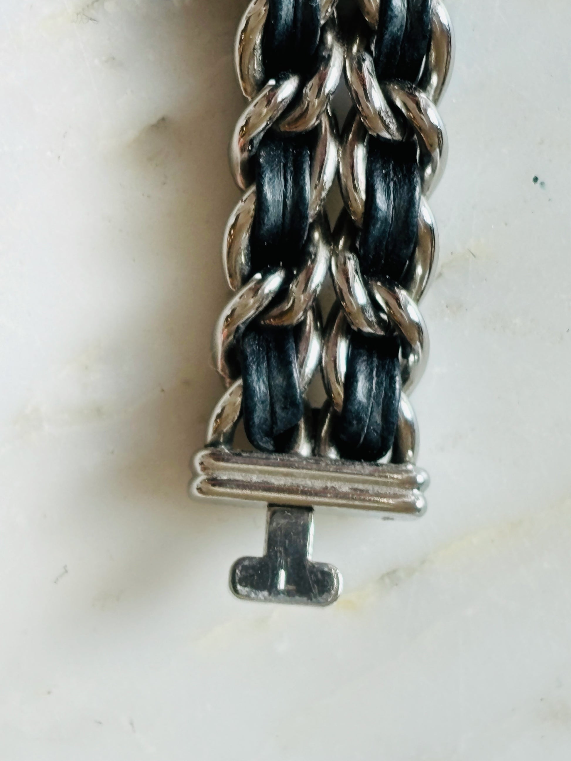 * Bracelet en chaine maillons en acier et cuir d’agneau