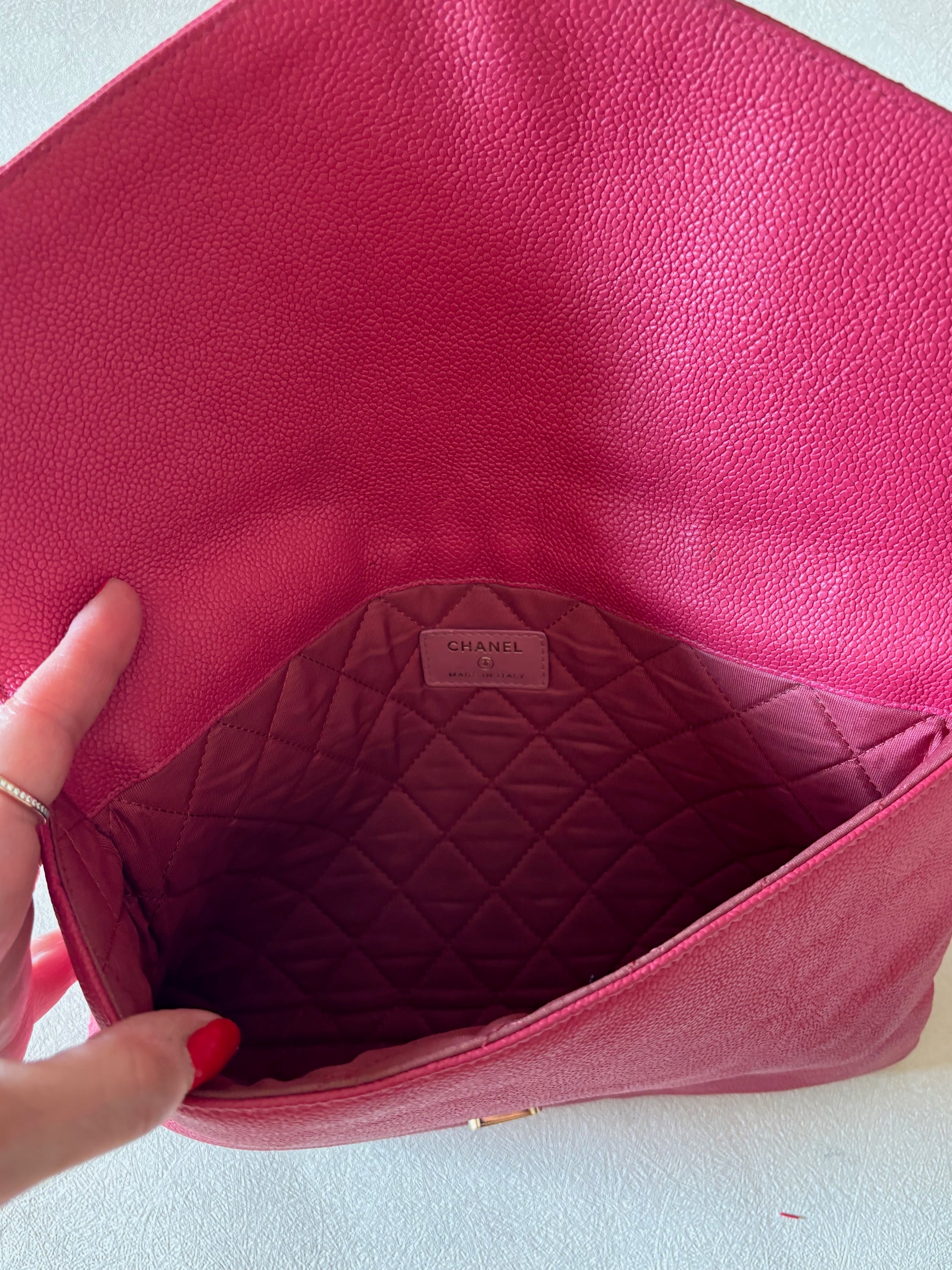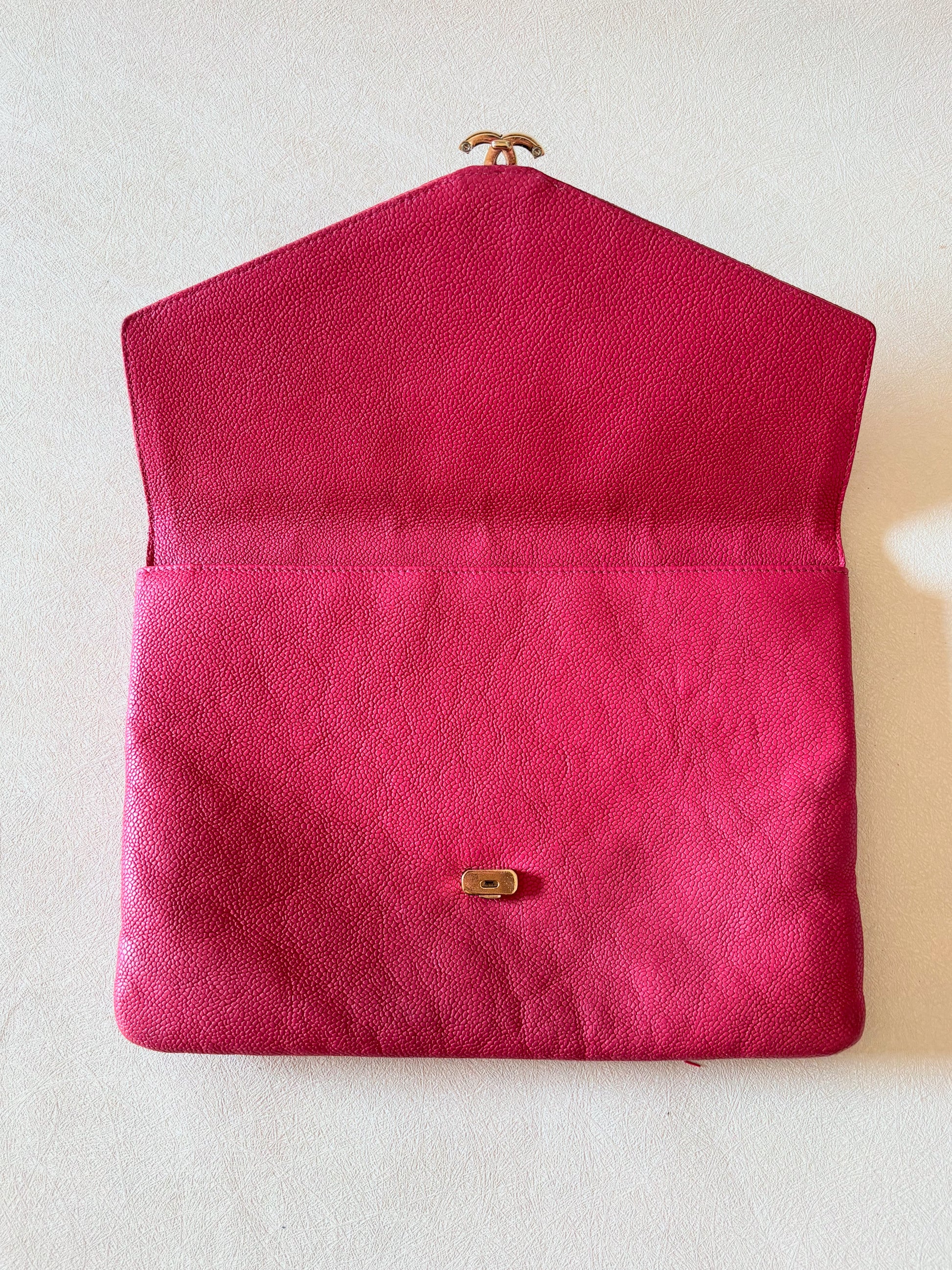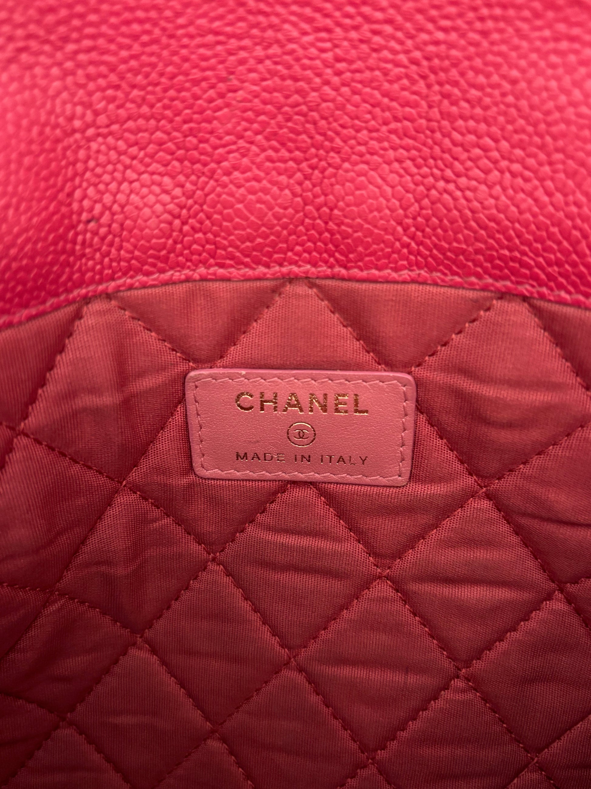 * En cuir caviar matelassé sur sa partie haute, couleur rose framboise